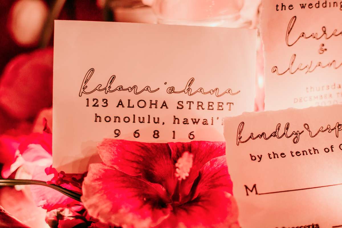 “We hope this shoot inspires couples when planning a wedding in Hawai’i, you don’t have to gravitate just to a wedding on the beach. I have had the pleasure of working with a number of venues on island that you wouldn’t believe are in Hawai’i. Sometimes going for the obvious wedding hall or venue isn’t the best option. Instead we have found that finding a location that maybe doesn’t seem ‘wedding material’ and making it your own, has the biggest impact. I hope it inspires couples to think outside the box and be creative with their wedding day.”