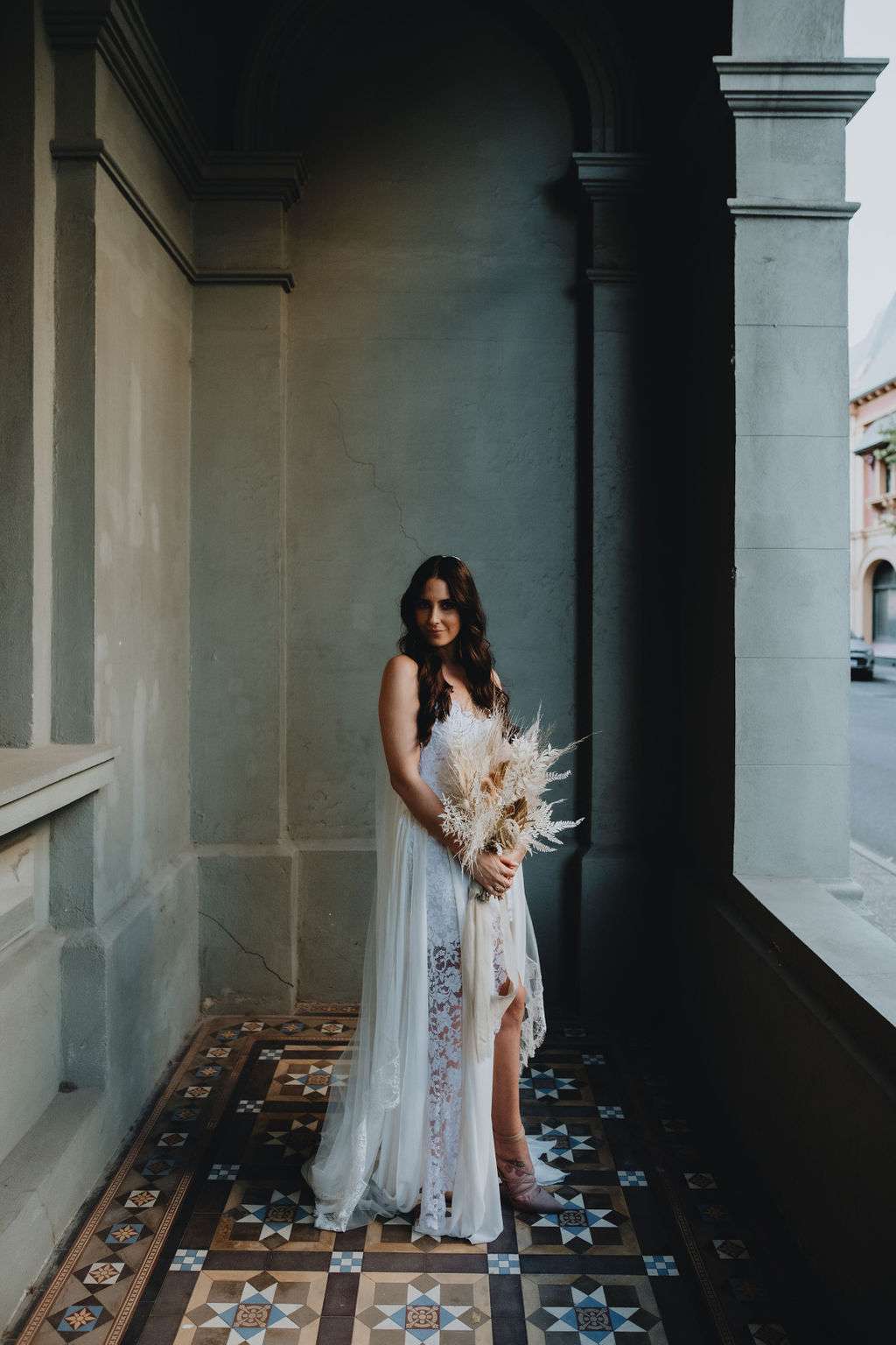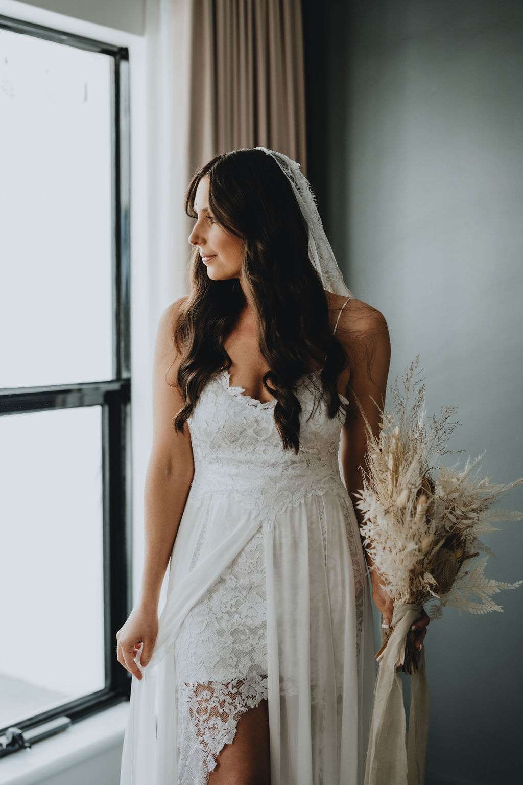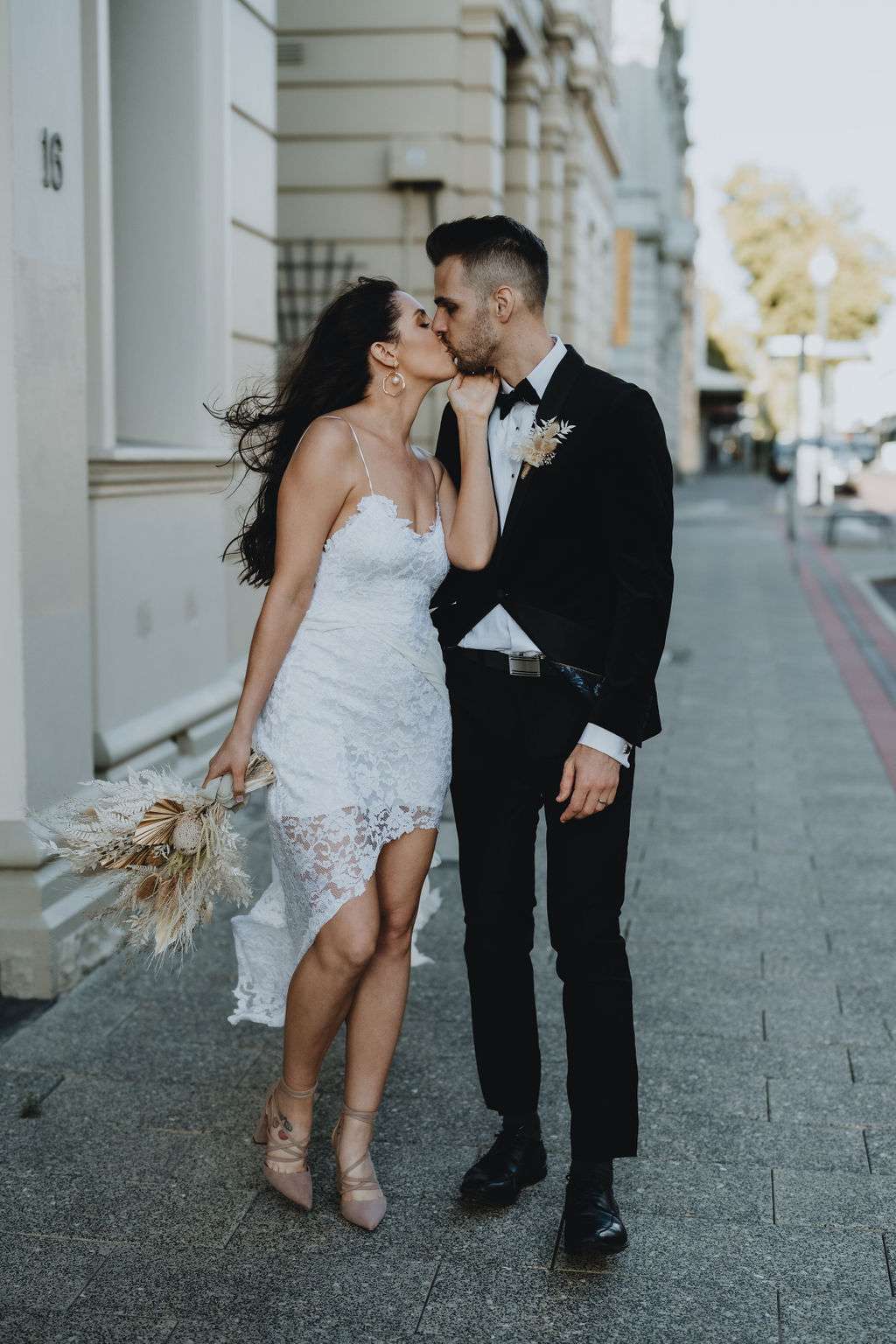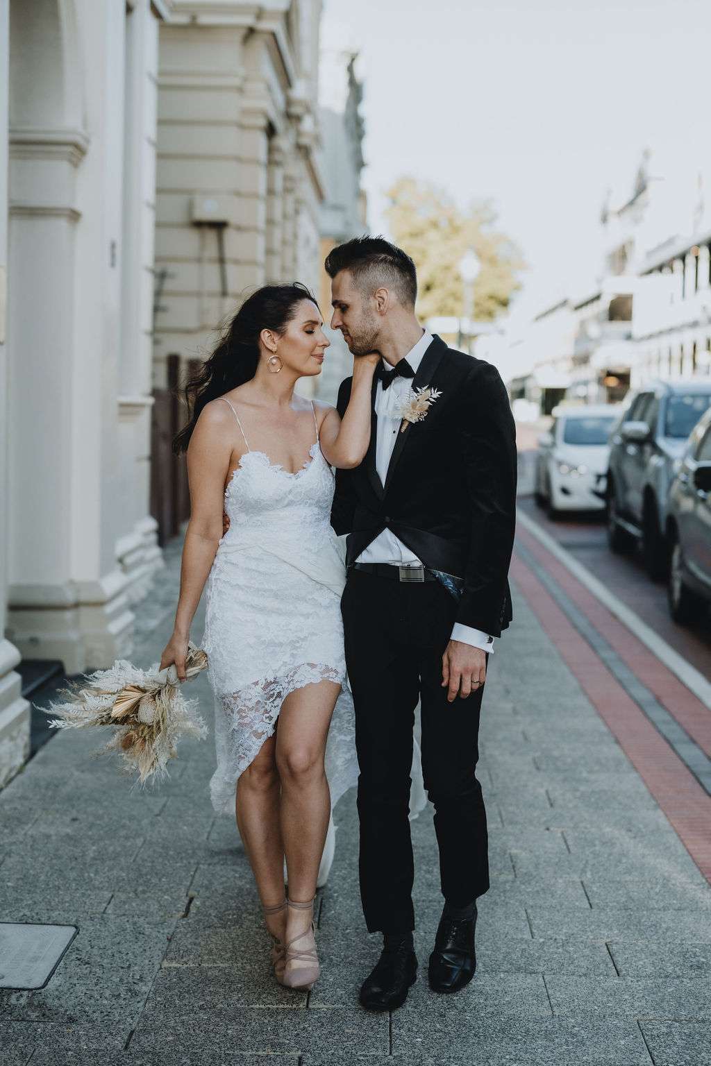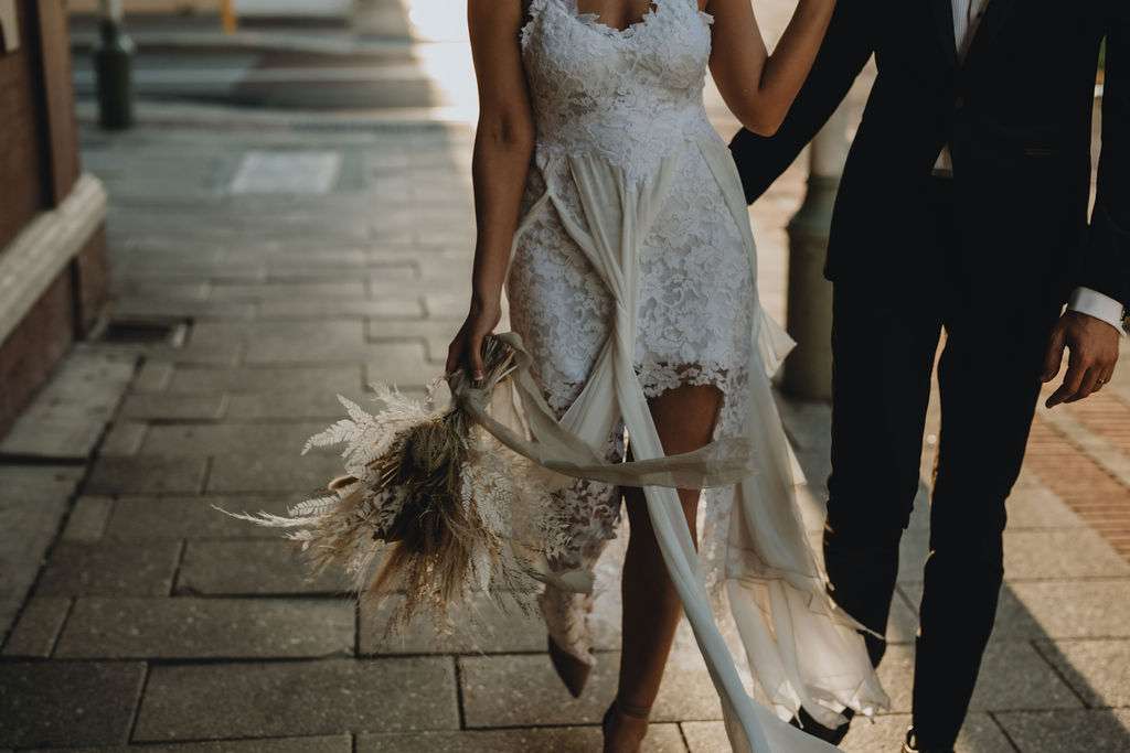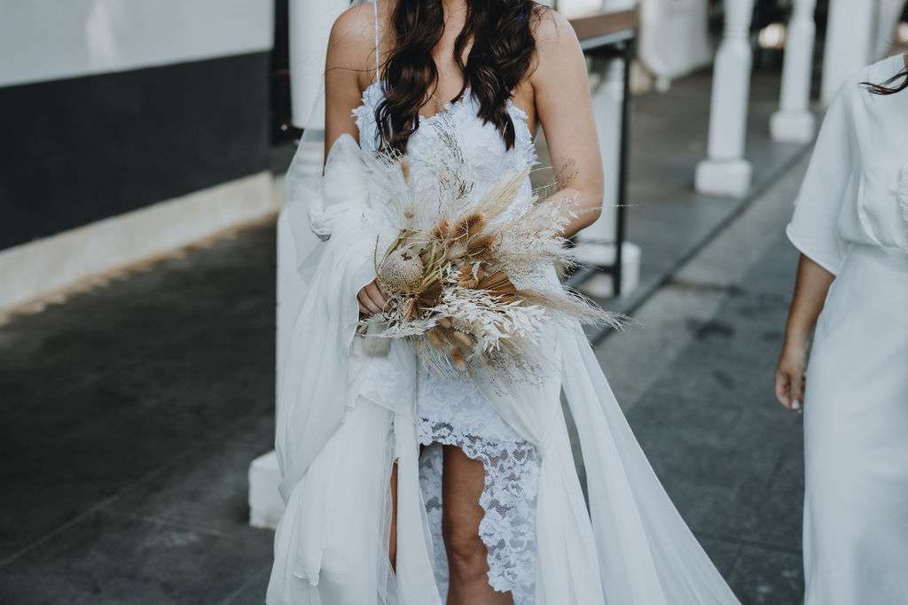 Kirsty had such a vision for the day and wanted to theme the day around her Grace Loves Lace dress which she actually bought before they were even engaged because she loved it so much! To compliment this she opted for natural tones and dried flowers. Luckily, this idea worked perfectly in their venue, Moore and Moore Café, in Fremantle.