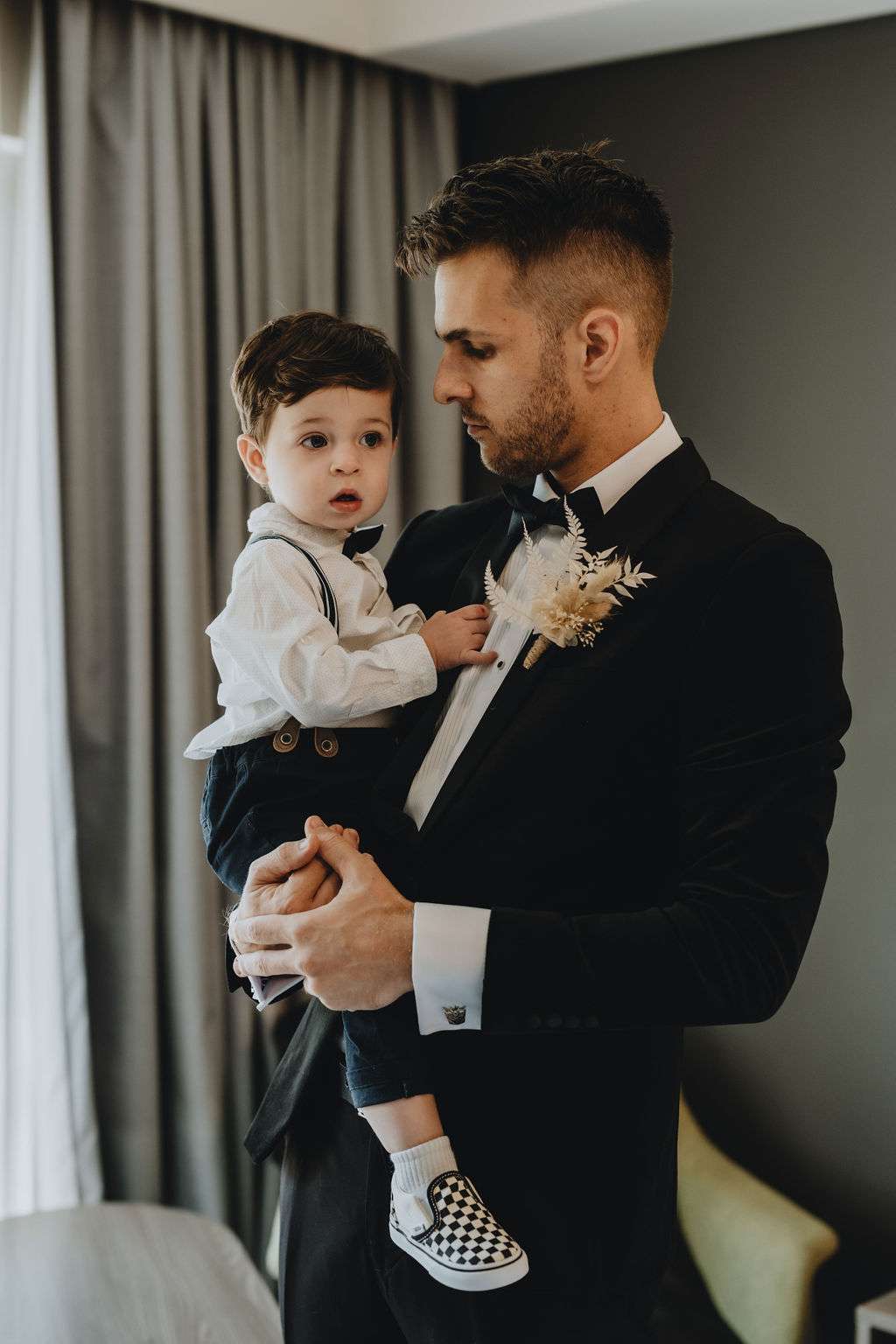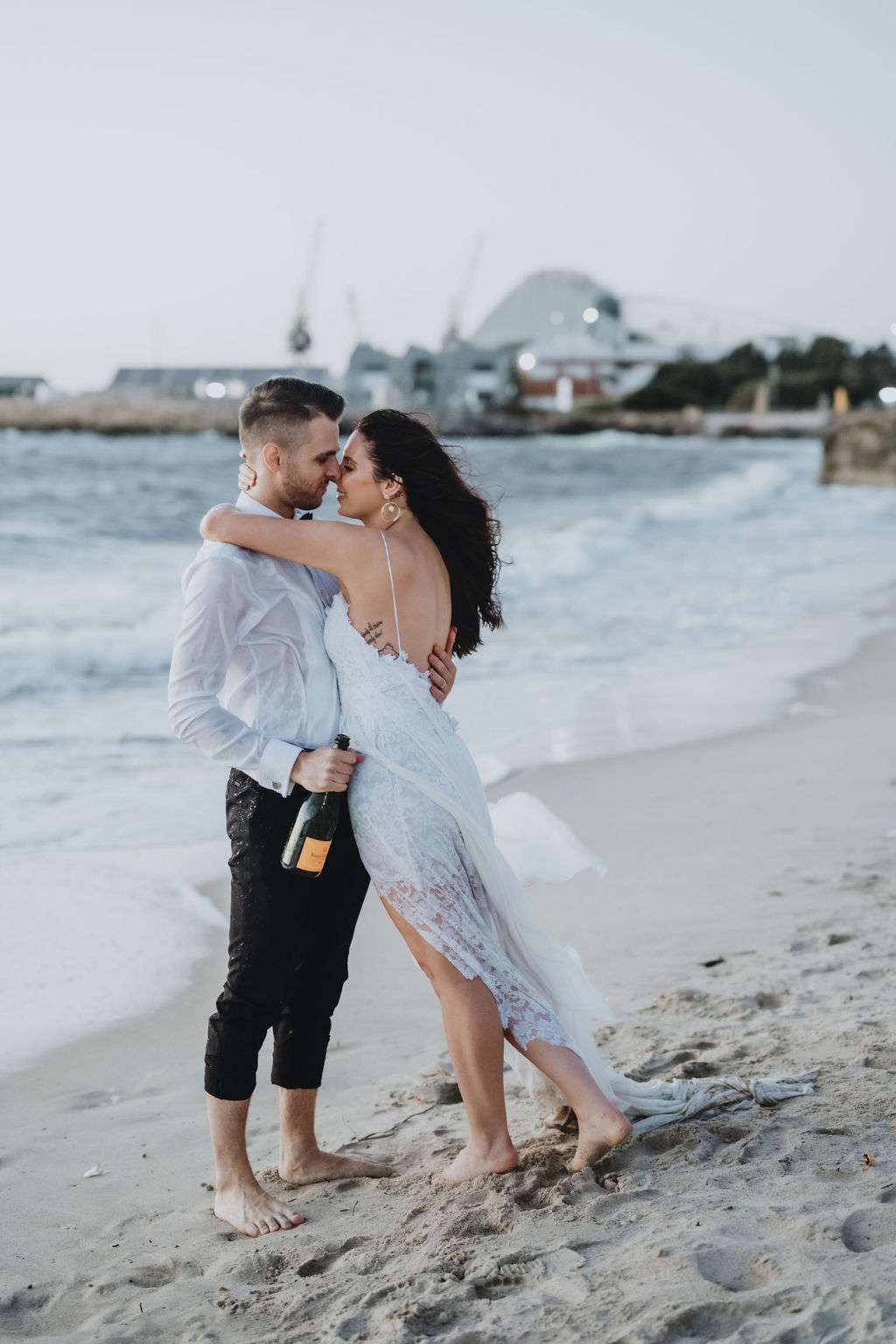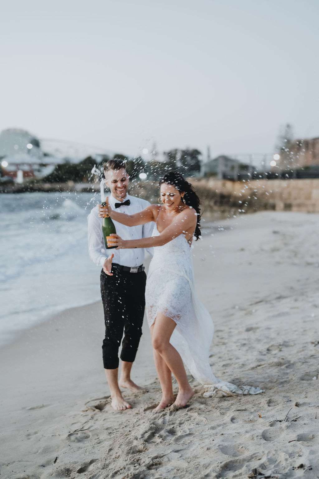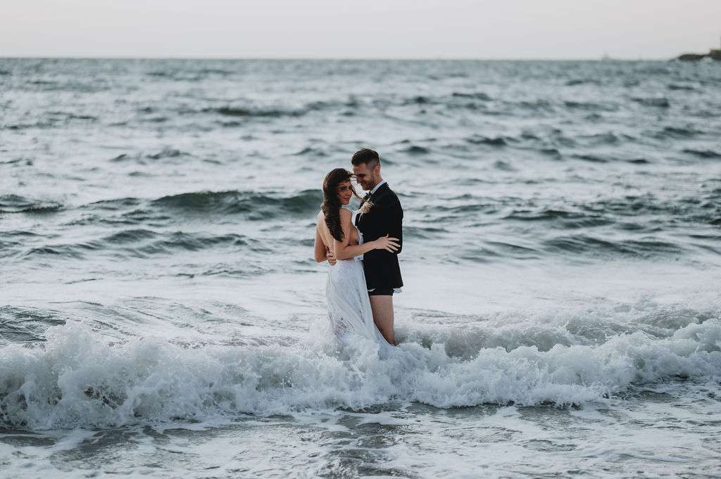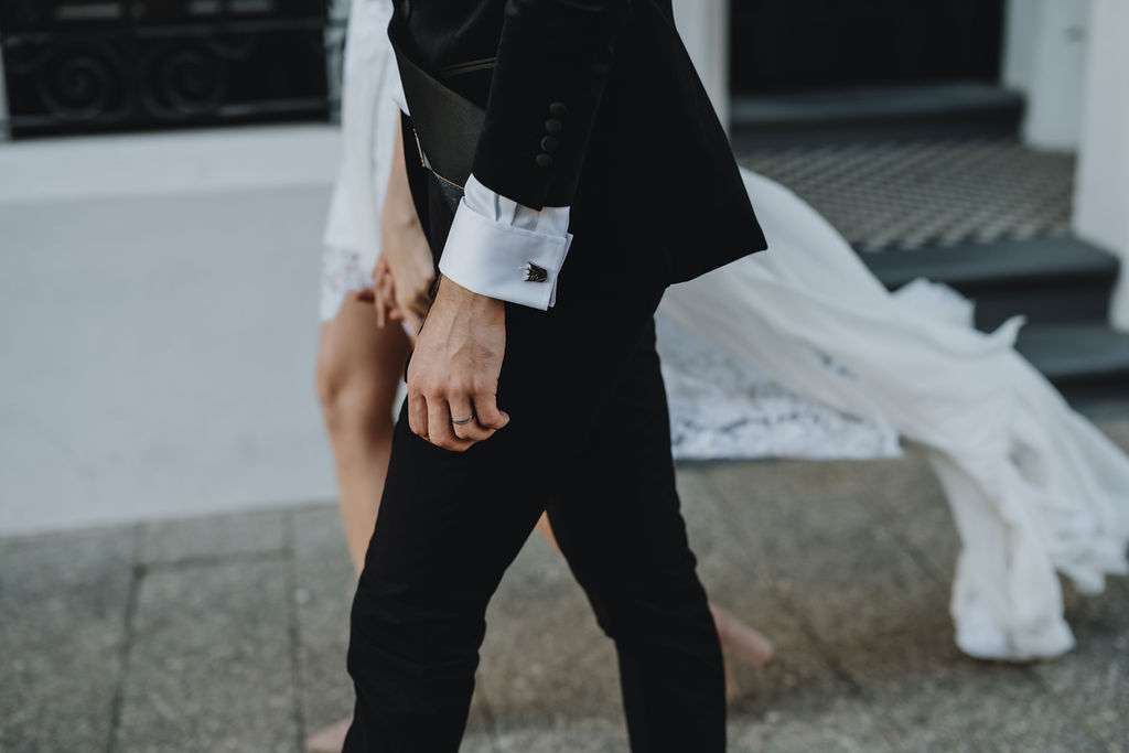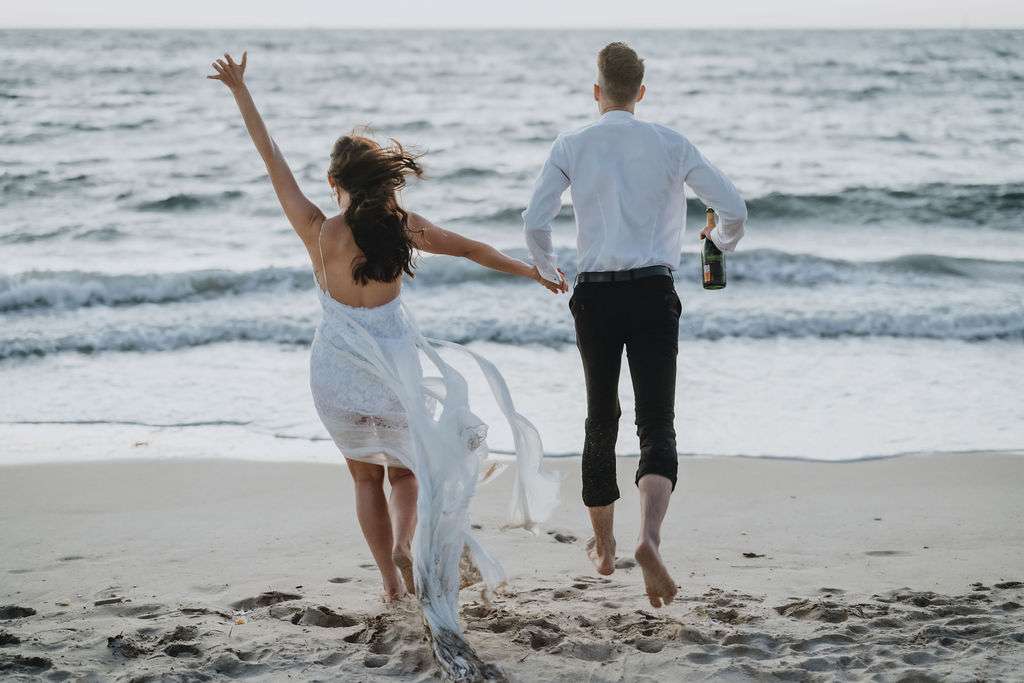 “We chose to marry with only a small amount of immediate family present. We wanted the day to be about us, with minimal fanfare and no stress, plus it made for a great surprise announcing the news to our friends afterwards. I love the ocean, so at the end of the day we decided to run into the water together with a bottle of champagne to celebrate our first night of being husband and wife.”