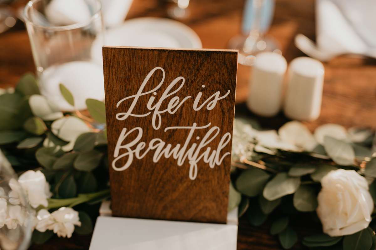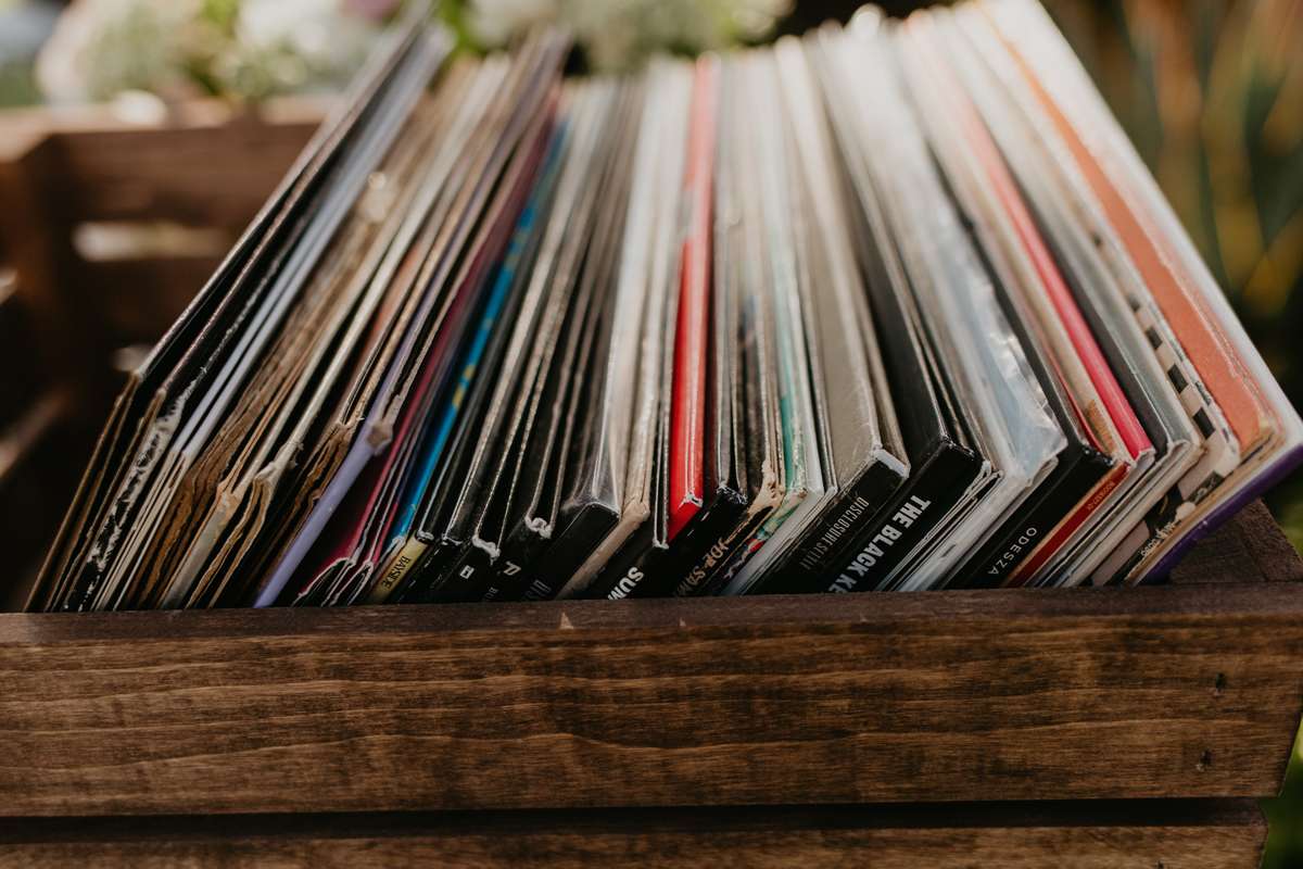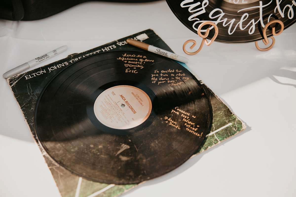 They met in college but fell in love by going to concerts and enjoying live music together. They really wanted their wedding décor to emulate their relationship and journey together so they tables were all named after venues they had seen shows at and their guestbook was made up of vinyls.