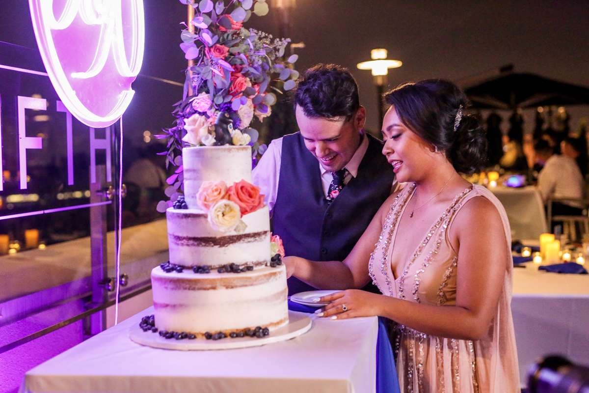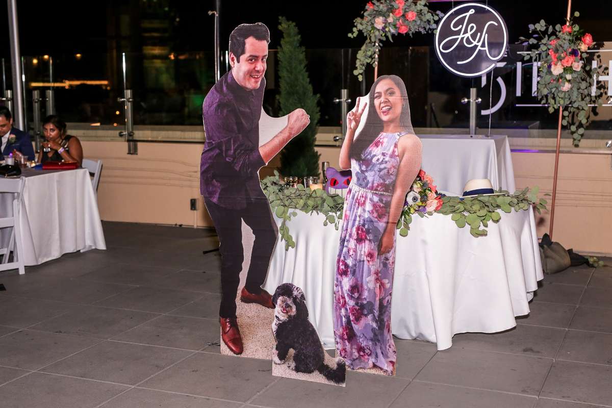For safety during COVID, they gave each guest colour coded wristbands to indicate their comfort level with being close others (we love this idea!) and as favours they had personalised hand sanitisers. Instead of a traditional money dance, they had carboard cut-outs of themselves made which their guests could attach money to.