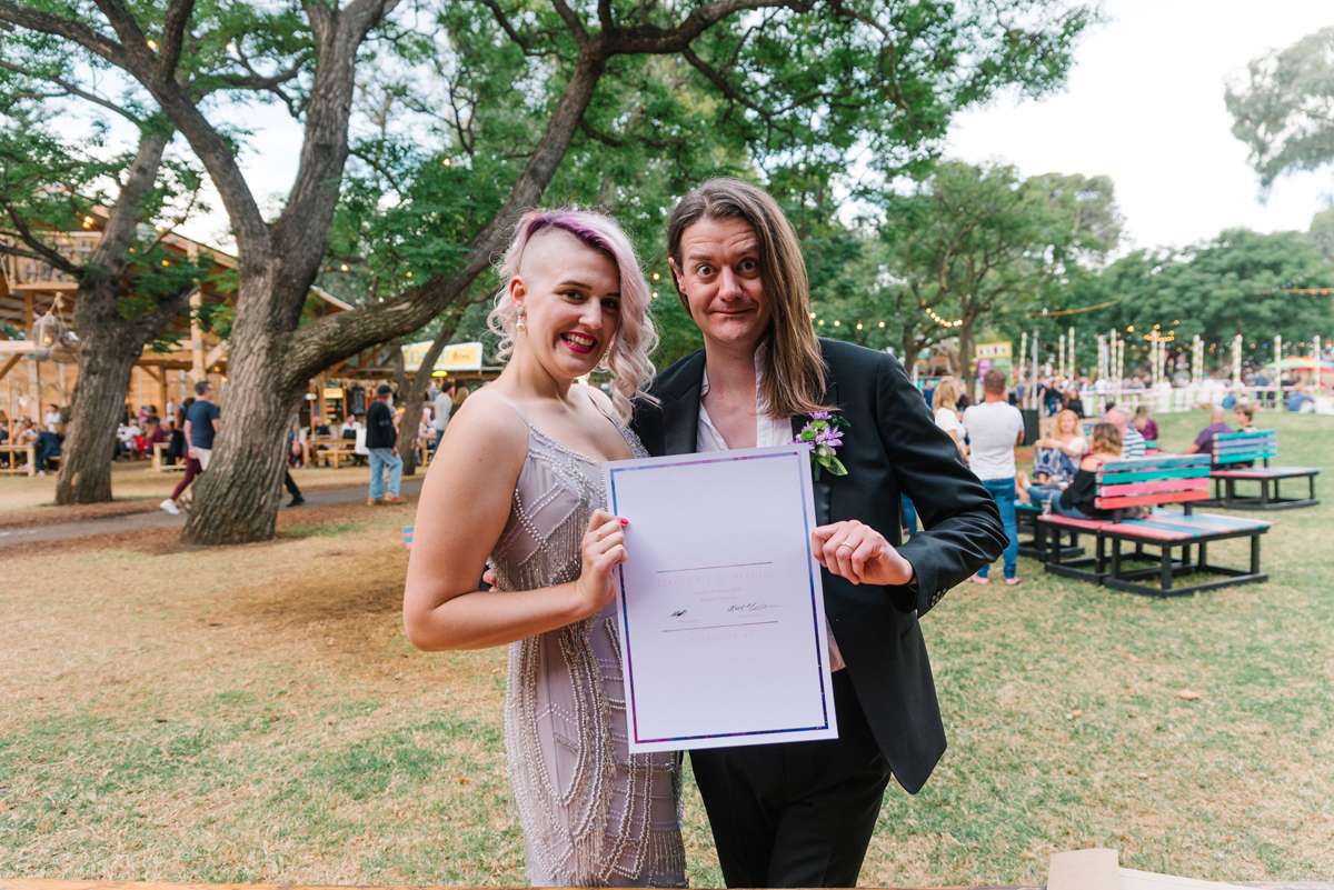 Two years later they married, and of course they had to do in a way fitting for their love story, so they chose to do it at Adelaide Fringe Festival, specifically in the Corona Theatre in The Garden of Unearthly Delights area.