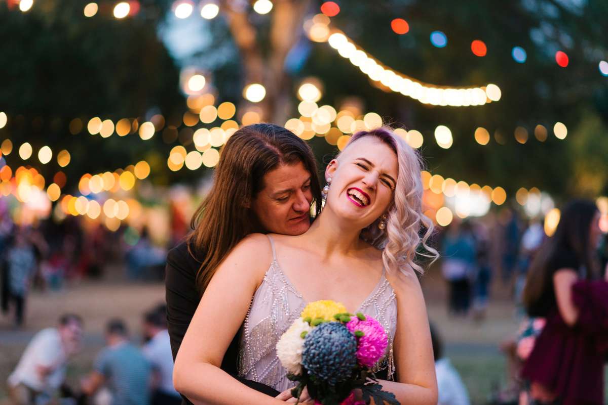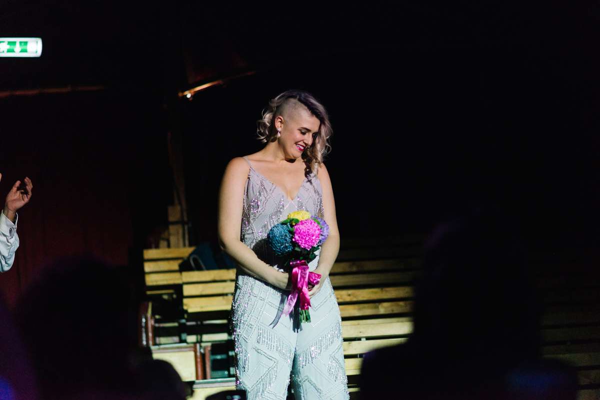 “So many people told us it was the best wedding they’d ever been too”, Kate continued. “It was really relaxed and had a great community feel as so many members of our colourful Fringe family came together to help out. Our ceremony venue was a theatre/tent set up for live performance, and between ceremony and reception our guests could go and wander around the amazing Garden of Unearthly Delights and even see a Fringe show if they wanted. Several of our guests were performers themselves who came and went at different times around their shows. The dress code was ‘wear whatever you want, especially that outfit you’ve been looking for an excuse to wear!'”