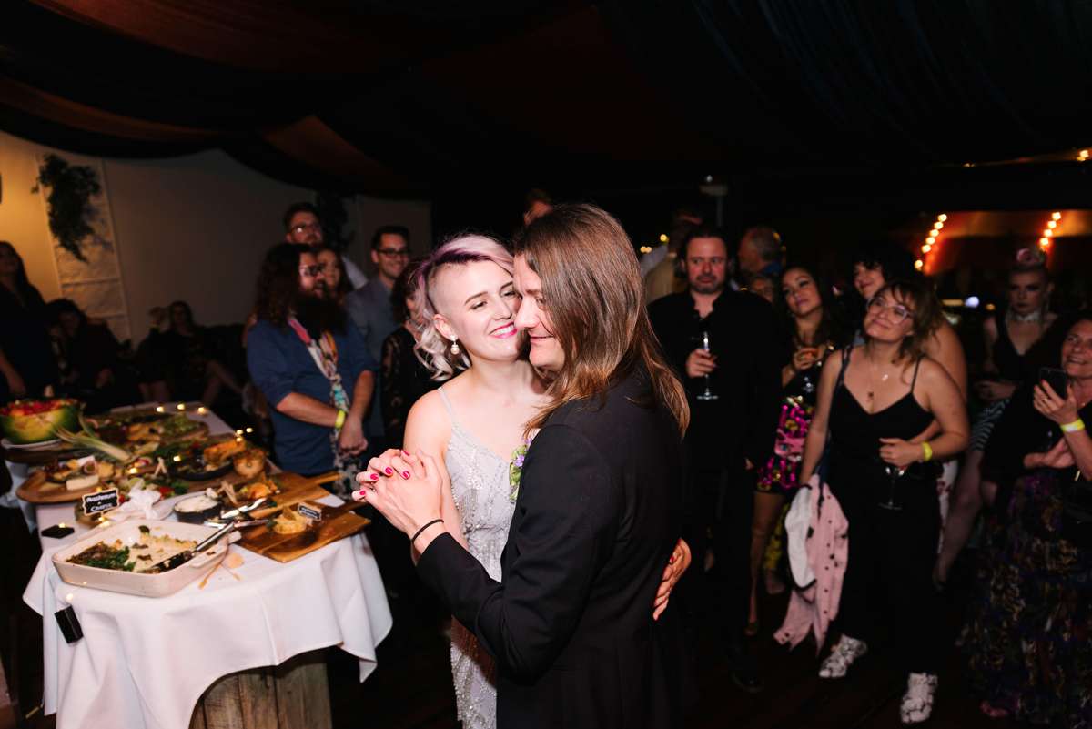 One thing the couple did realise, is that even though they wanted to avoid most tradition at all costs, some of it actually ended up being a real benefit to their day, particularly when it came to having bridesmaids and groomsmen. “It was really nice to have my best friends there to get ready with in the morning, I didn’t want to be alone in an Airbnb on the morning of the wedding with nobody to help me! Ethan had the whole band to keep him company, so I invited a few close friends over. It also became obvious that one of my friends should be my maid of honour even if it was unofficial! She accompanied me to the ceremony and it was perfect.”