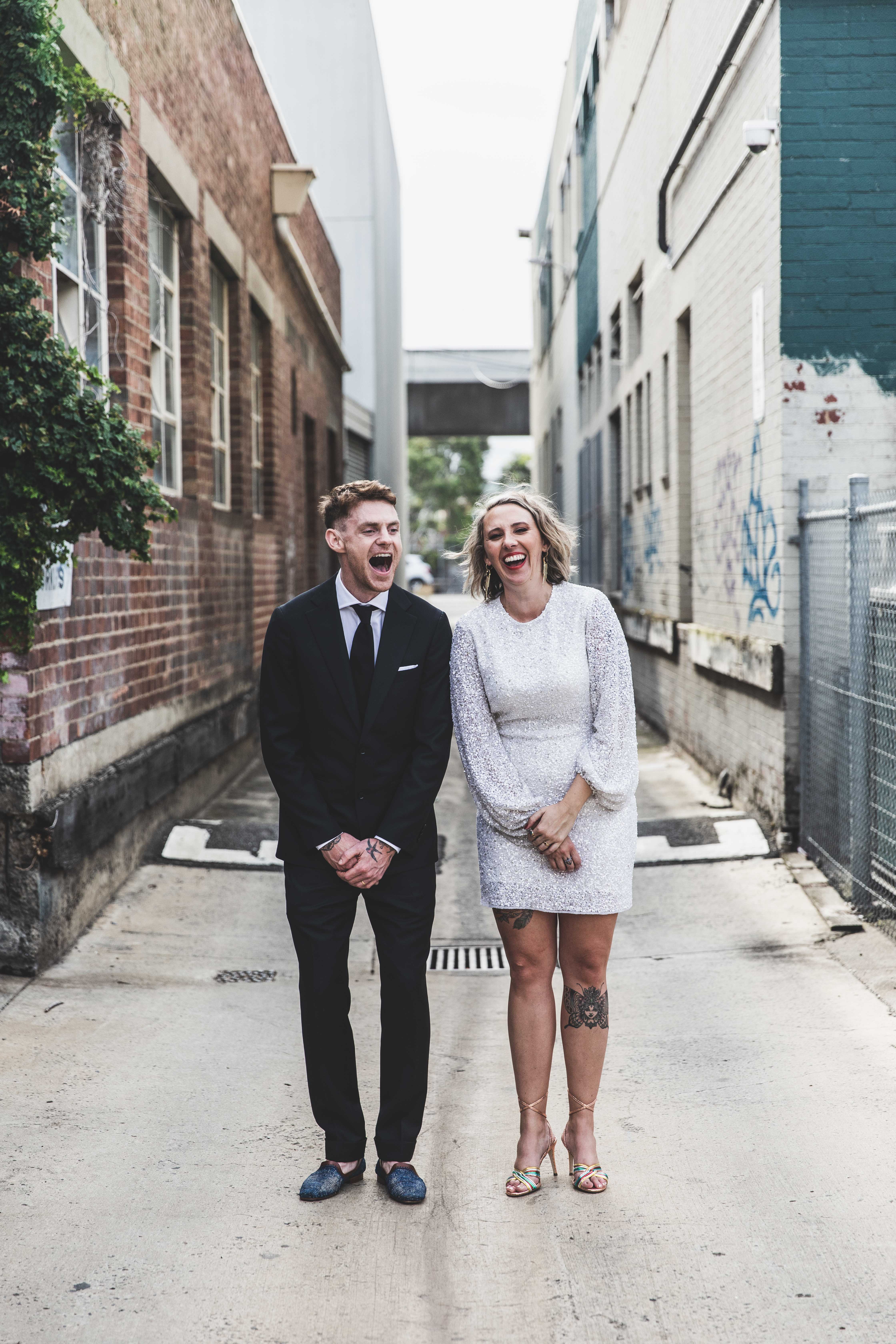 Two Ton Max in North Melbourne was the perfect blank canvas for our friends at Good Day Club to unleash all the festival party vibes for Becky and Gearóid’s wedding day! The couple met at a music festival, but instead of the usual tipi and field theme for their day, they chose beautiful relaxed sunset vibes moving into a dark, neon-filled party night.