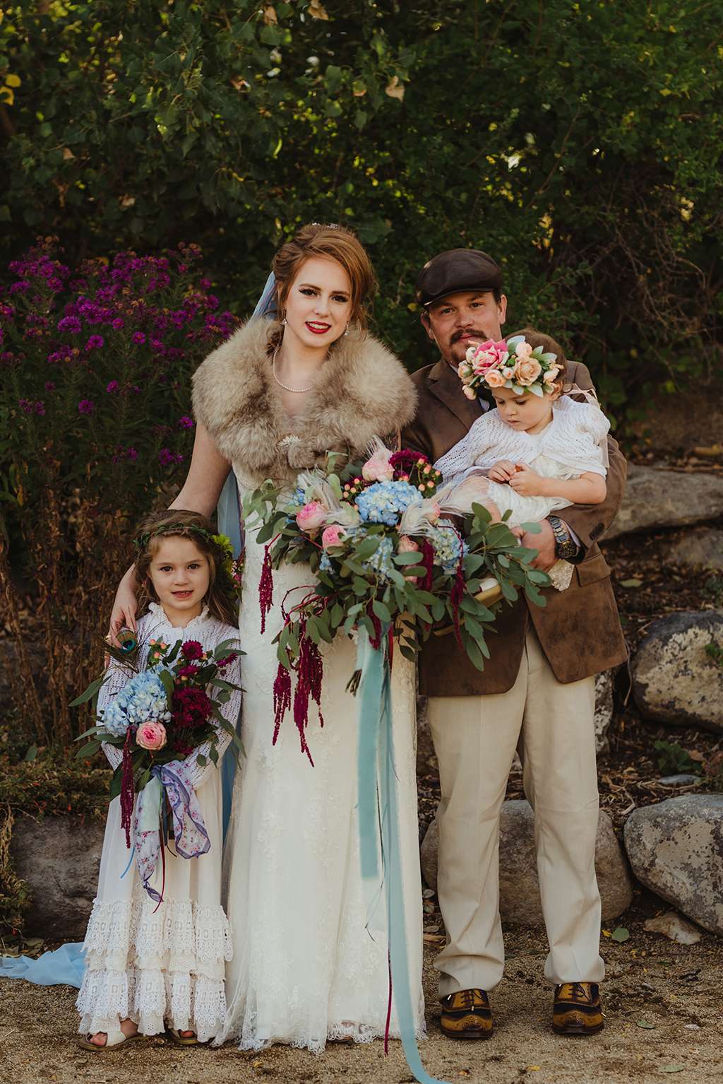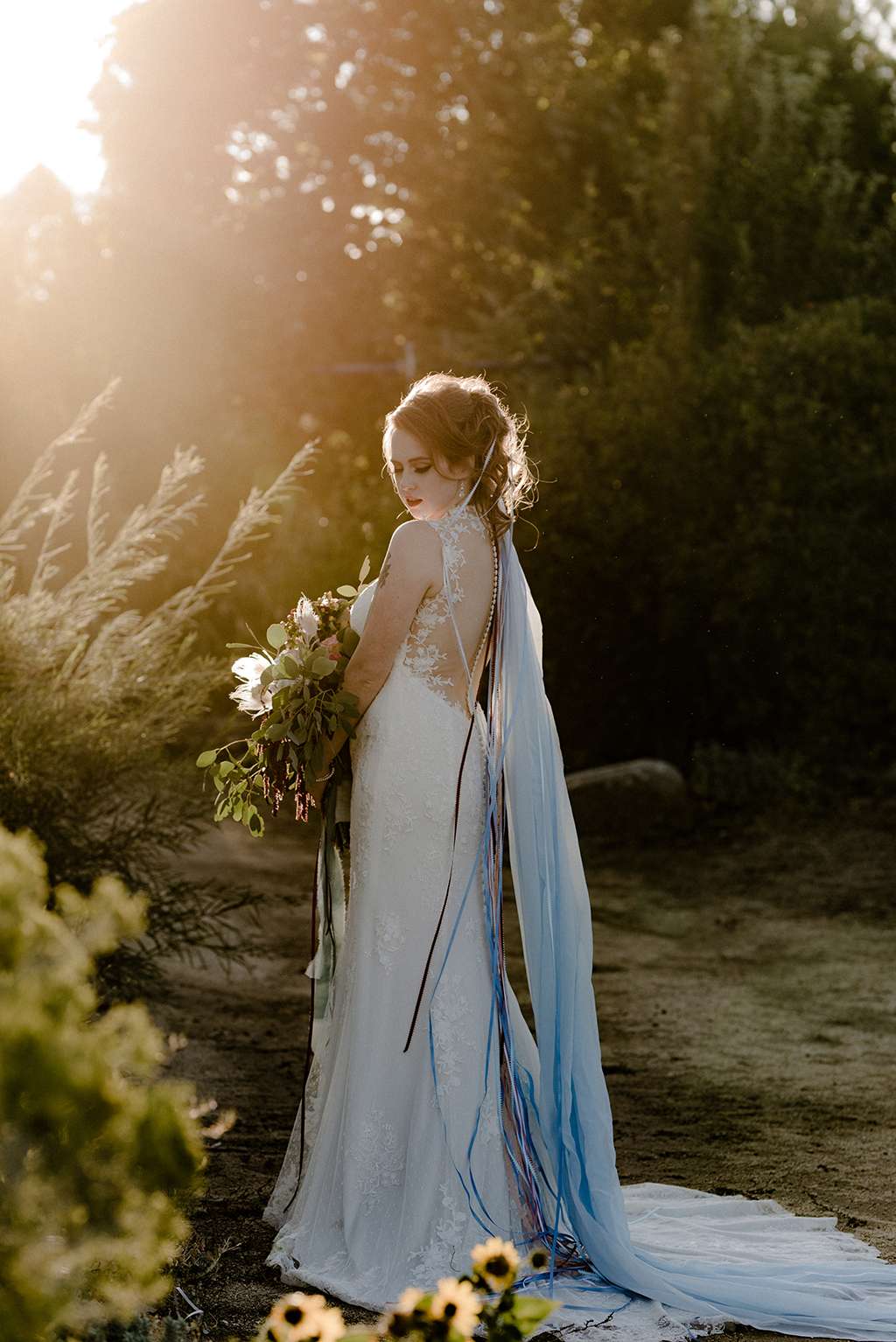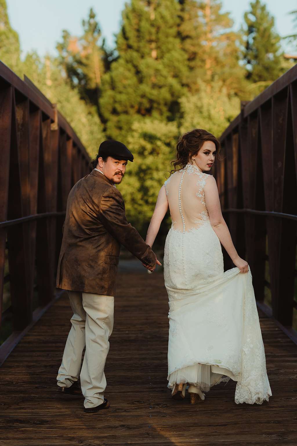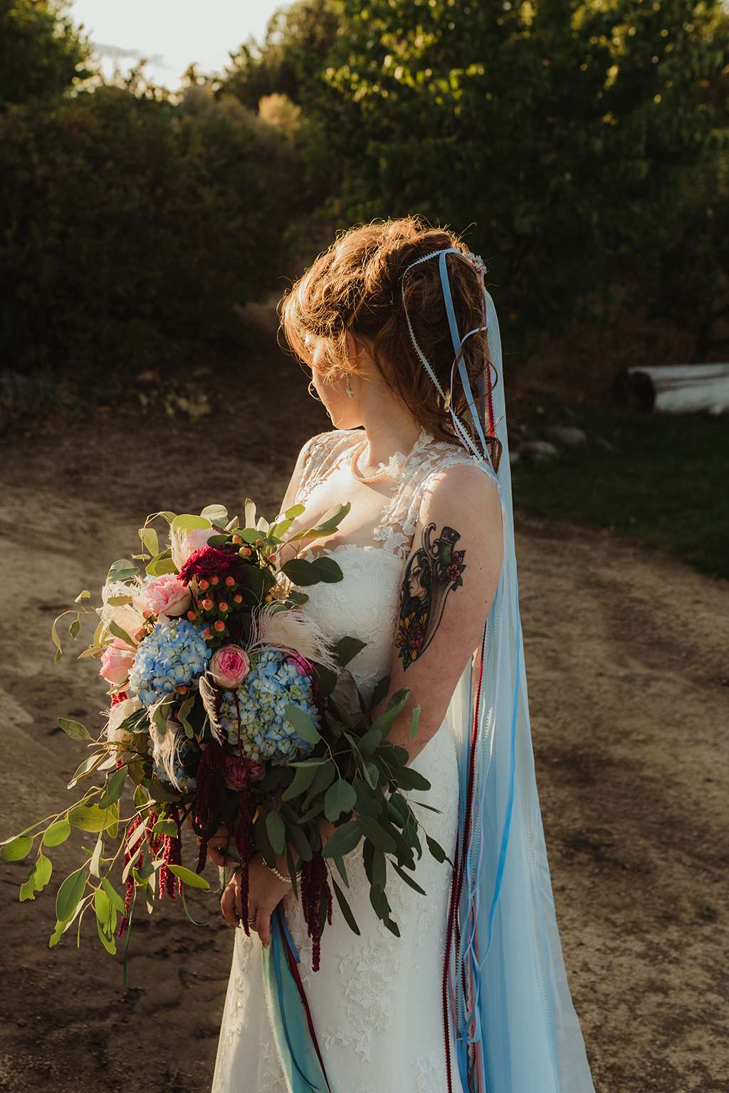 Amber and Ben’s eclectic and romantic September wedding was held at River School Farm in Reno, Nevada – a self-sustaining co-home community that was one of the most magical venues they were able to find. As a studio and tattoo artist, Amber was keen to put her own stamp on their day and also liked the idea of only having decor that could then be used in their new home, or items that could be used a piece of art.