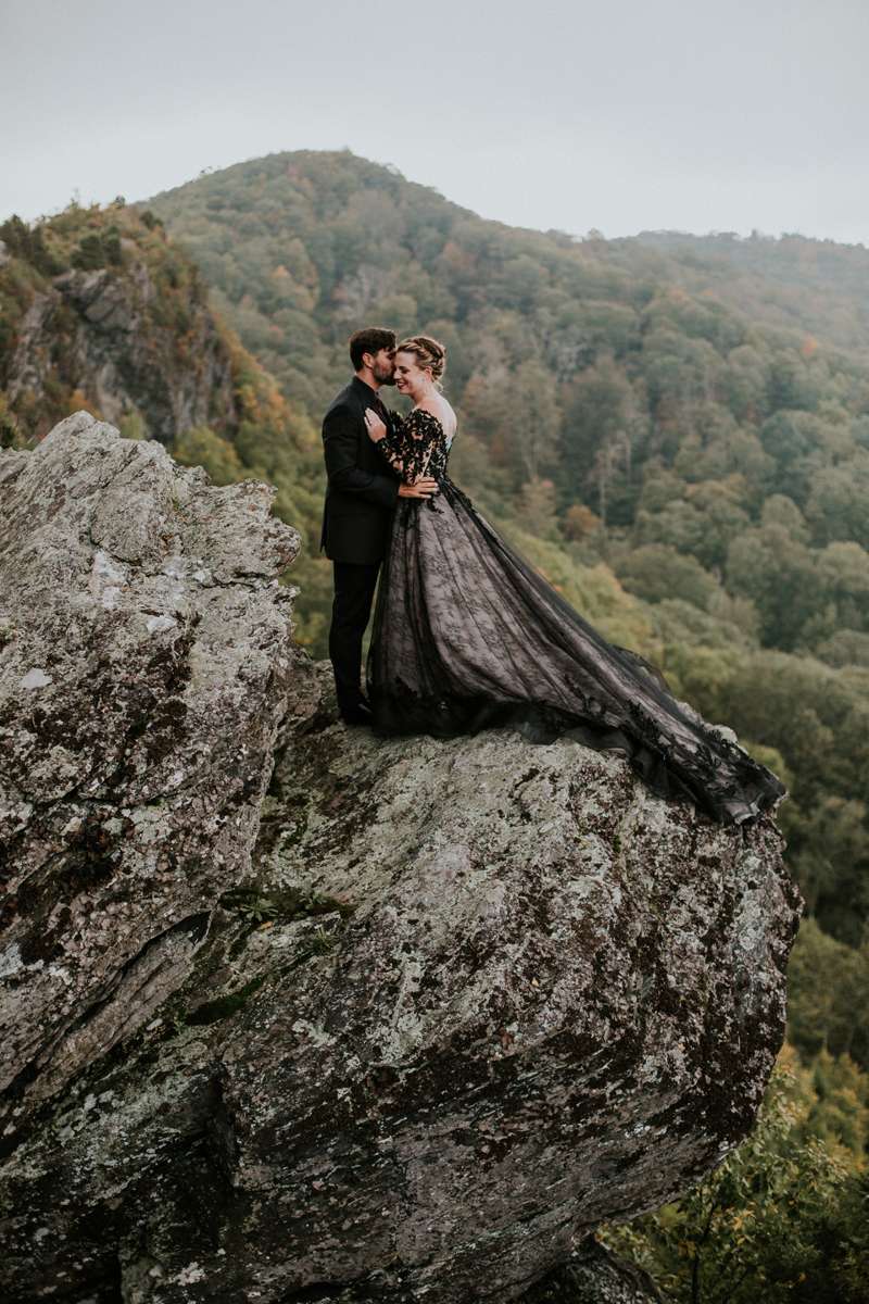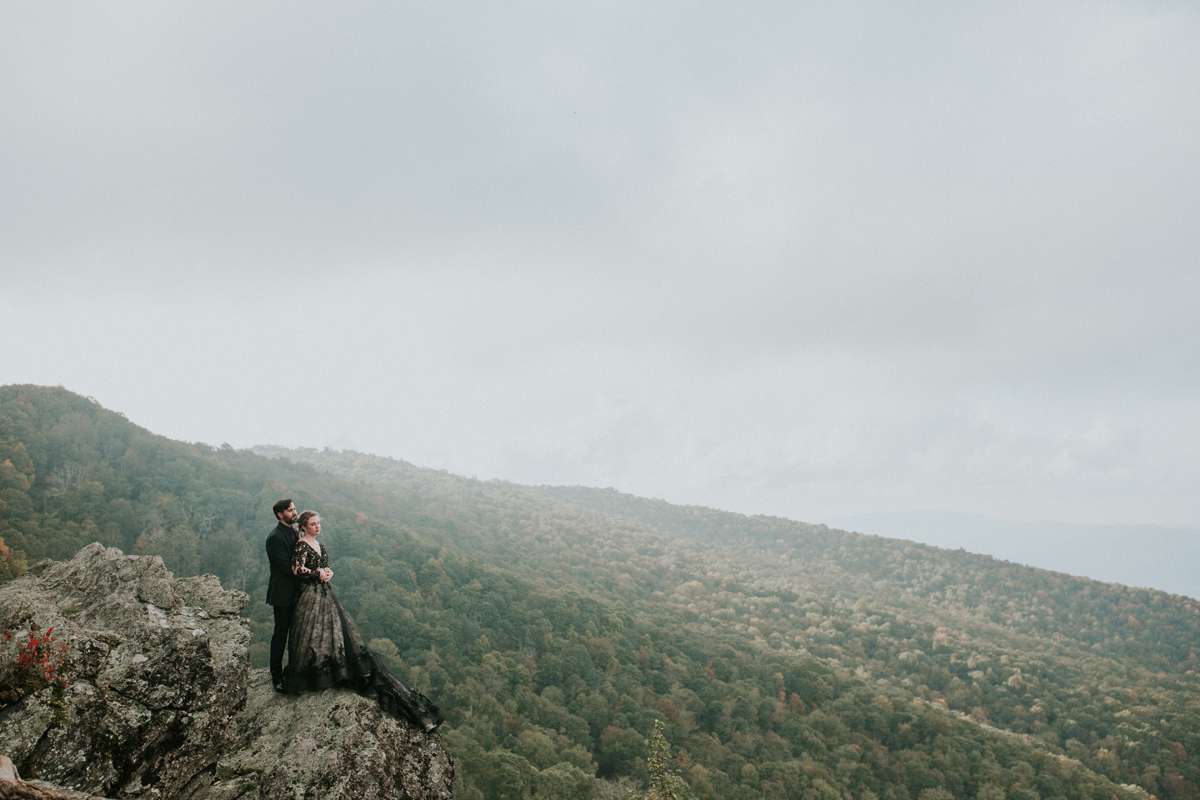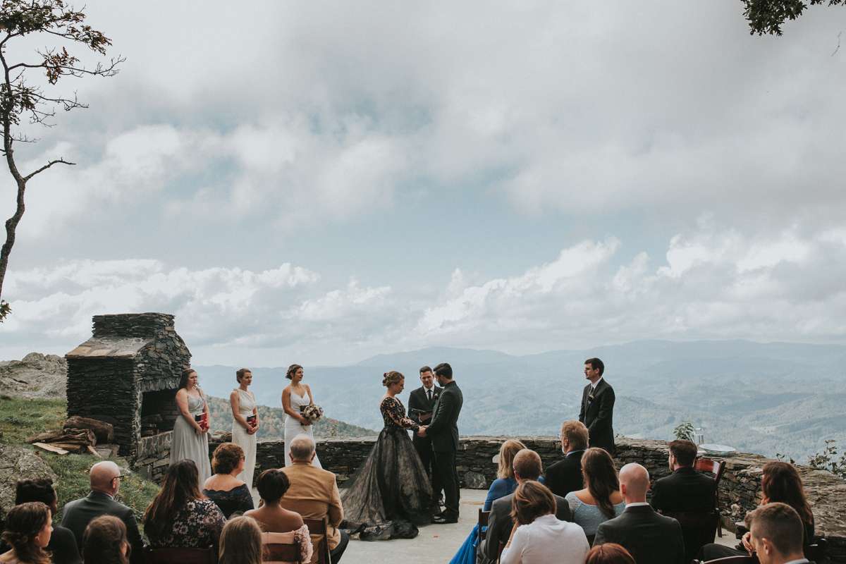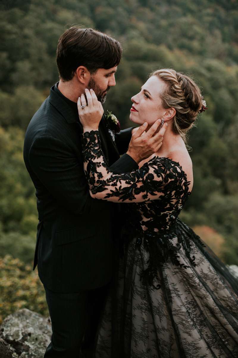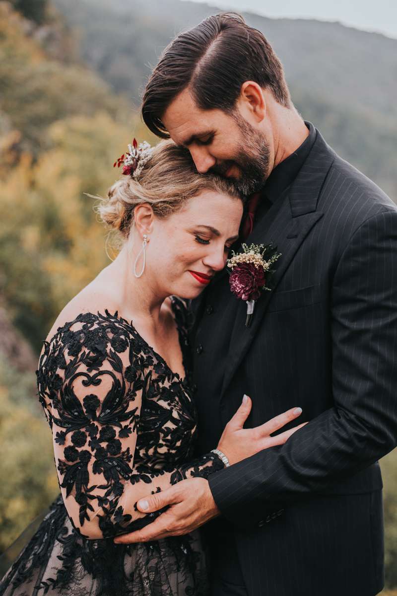 Shannon and Jerry both serve in the US Navy and met through their work. They wanted to keep their September wedding as quintessentially them as possible, even if aspects of the themes didn’t seem like they’d work together on paper. They included nods to their love of reading with the books as centrepieces and in lieu of bridesmaid bouquets, and the gothic/ autumnal element came through in Shannon’s choice of a black dress.