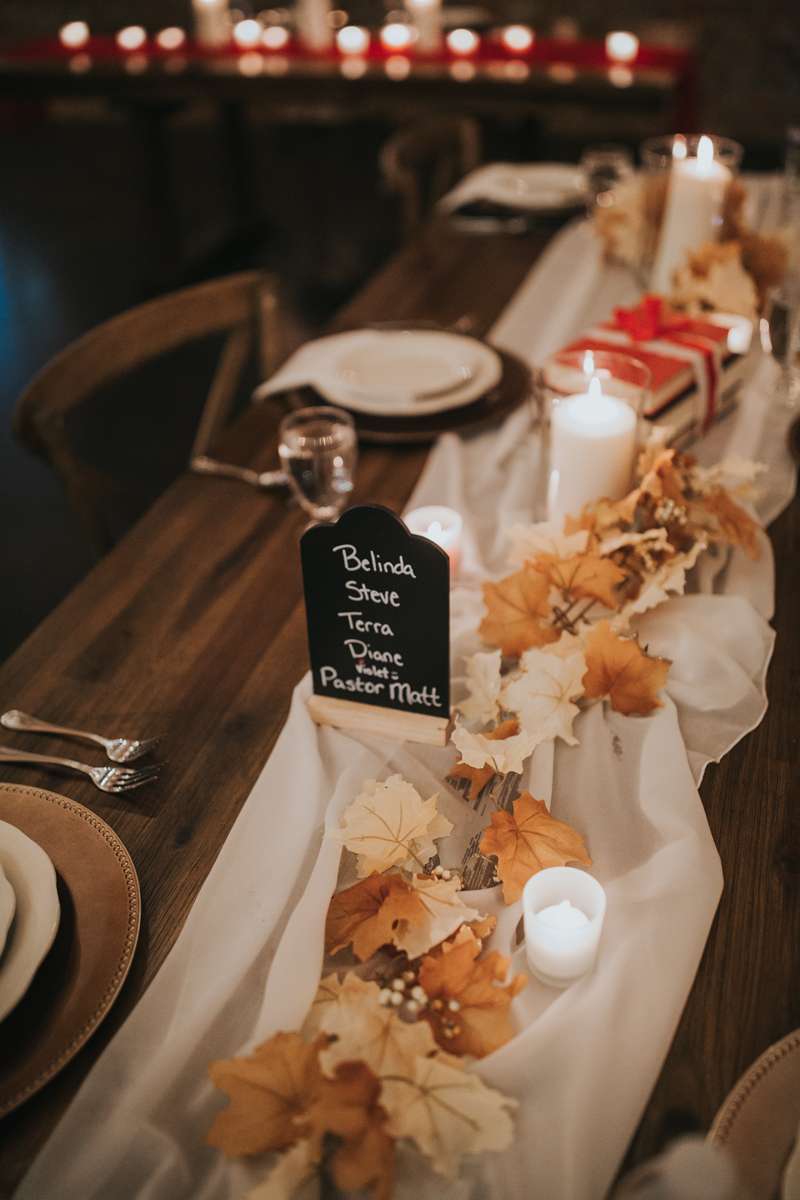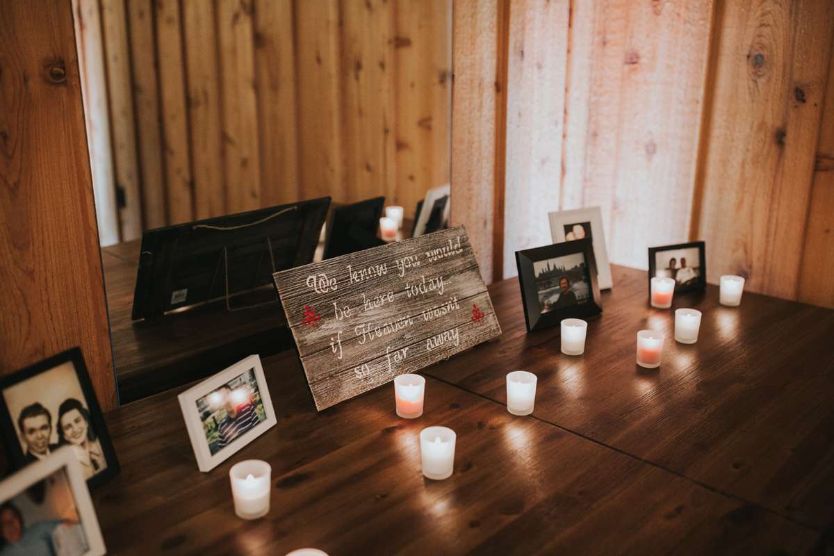 Most of the wedding was do-it-yourself too, from the couple bringing in their own alcohol, to the chalkboard signs for the drink menu and ceremony information. They bought and decided on all the reception decorations together based off their own style and ideas that Shannon saw on Pinterest.