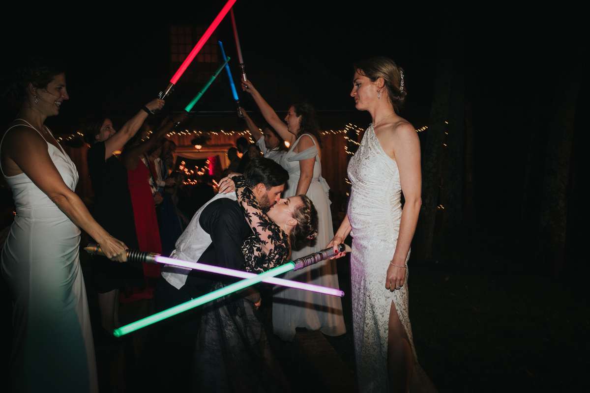 Their first dance was a Viennese waltz to Metallica’s Nothing Else Matters, which was a great way to combine their love for each other and their music taste. Instead of doing a sparkler exit at the end of the night, they combined their military history their nerdiness and had a traditional military sword arch, but with lightsabers!