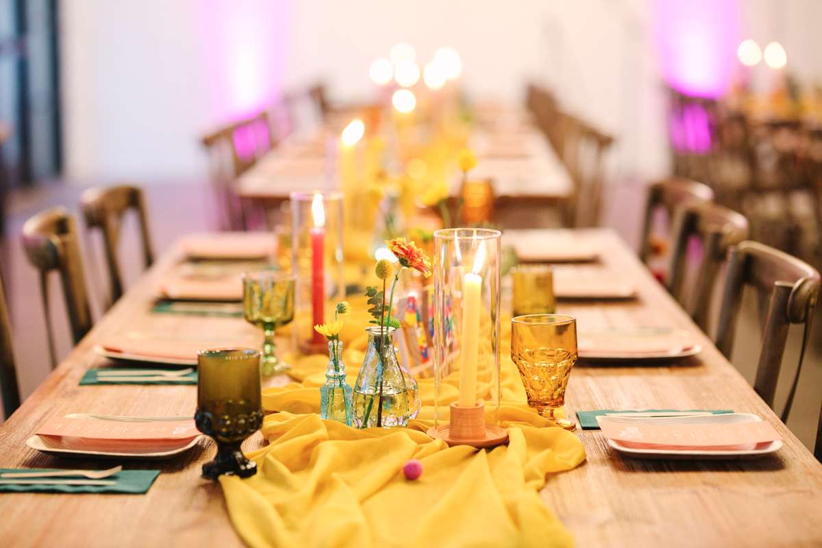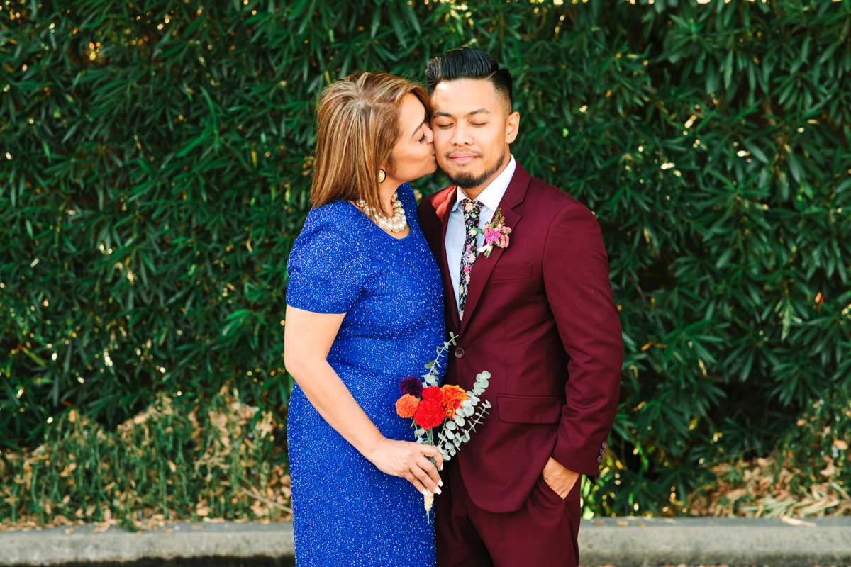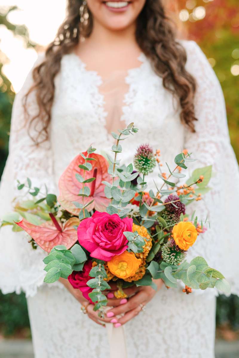 “I ordered a bouquet for me but the bridesmaids and the table settings were from SF Flower market and Costco. We had a food truck for dinner, so we wanted the table settings to be fun, but casual. We ordered bamboo plates and dinnerware off Amazon.”