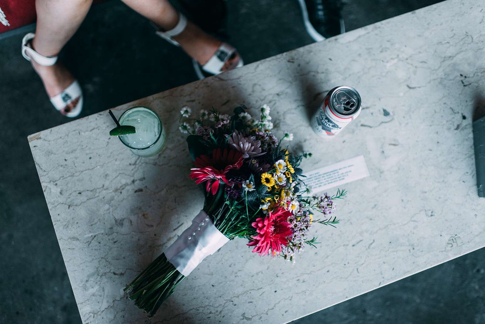 “It was almost a visual hot mess” she laughed. “Other than the few Star Wars details that I really wanted, we were each on our own to come up with our own looks. I had my dress and shoes picked out super early and I knew I wanted a wildflower bouquet. Bryan went back and forth about the look he wanted. He looked at different shades of blue and red suit and right before he actually ordered one, I was asking advice from a friend about which shade of blue she liked and it was her that asked what our flowers looked like! That’s when I realized not everything would magically match together.