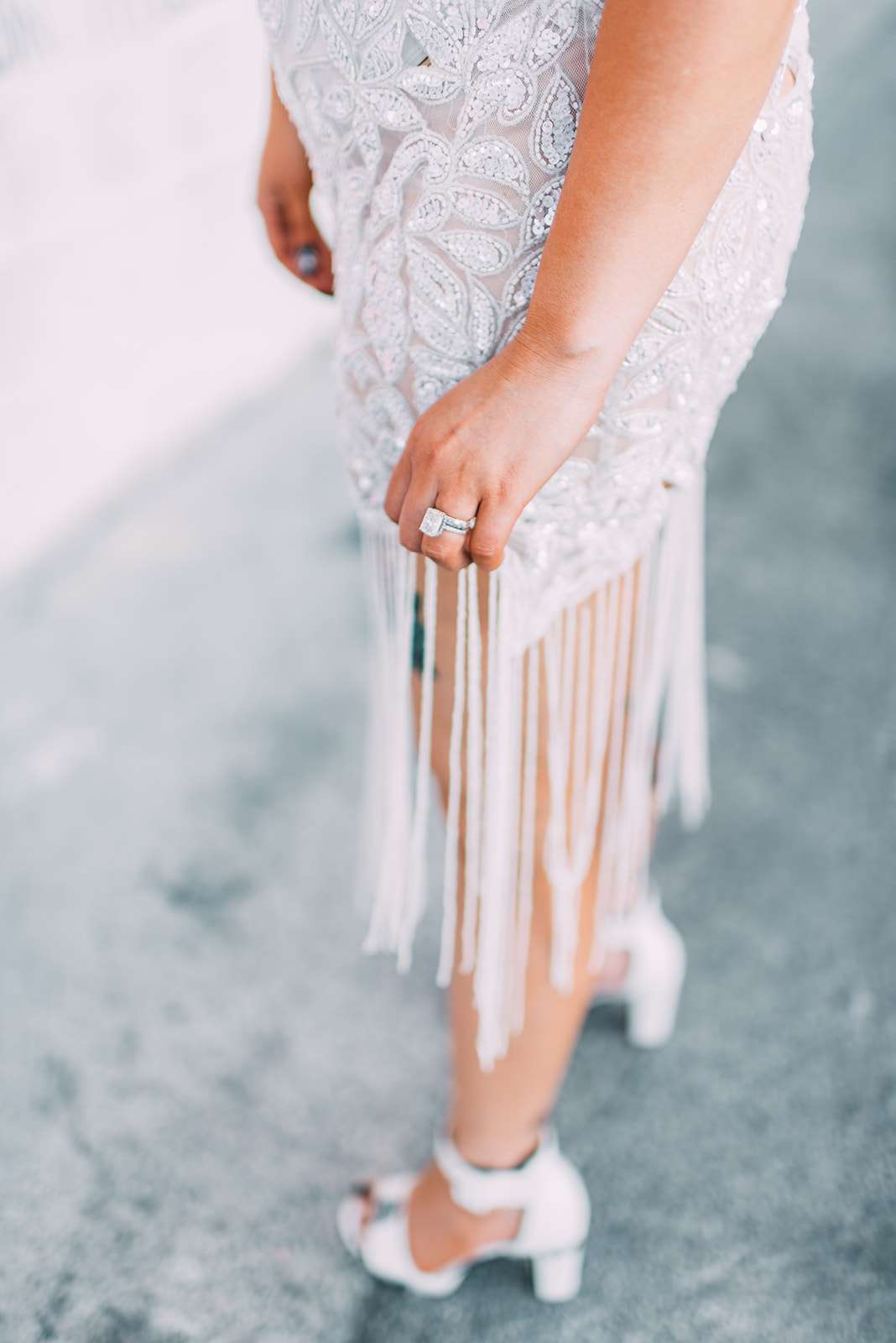They chose A Little White Wedding Chapel as their ceremony spot, and were married by Elvis (who else!?). “It was the funniest seven minutes of my life!” she continued. “We got stuck in traffic on the way to the chapel, so when we got there we literally ran in hoping we didn’t miss our time slot. Once we were checking in, the front desk asked us which Elvis songs we would like to use for our ceremony. We both drew blanks and told them to surprise us. I walked down the aisle with Elvis singing A Little Less Conversation and we walked out of the chapel to Viva Las Vegas. Our ceremony was filled with dancing, singing and lots of laughs.”