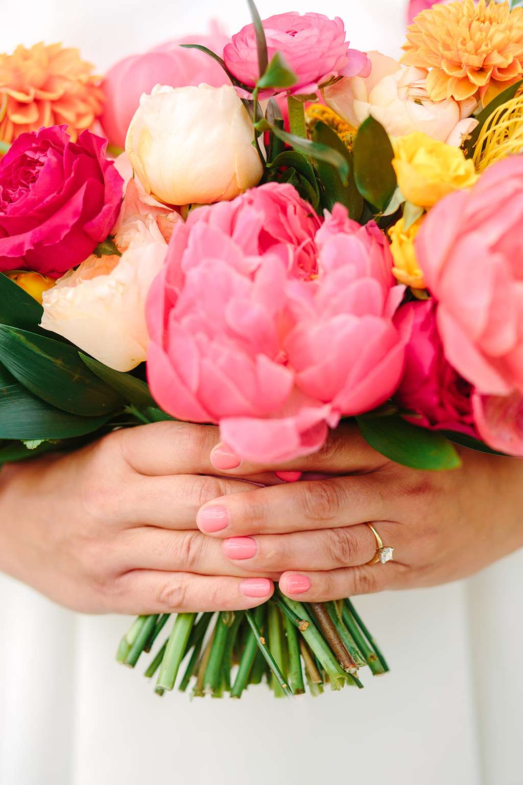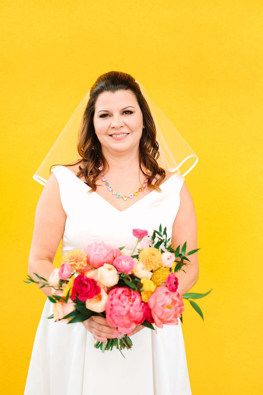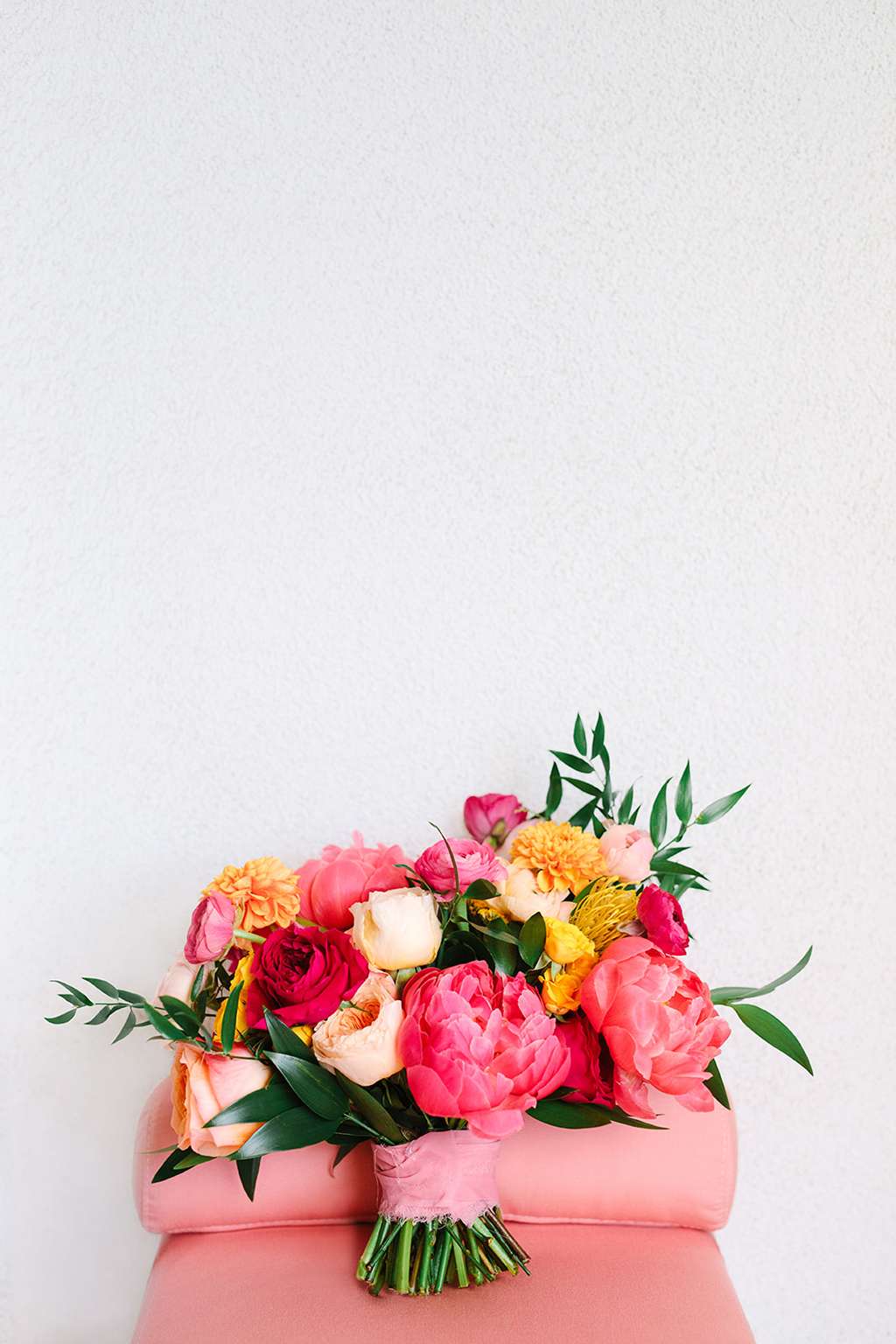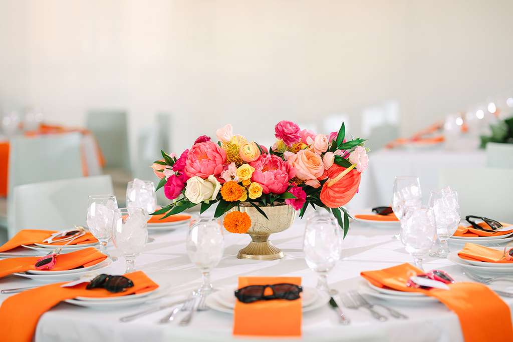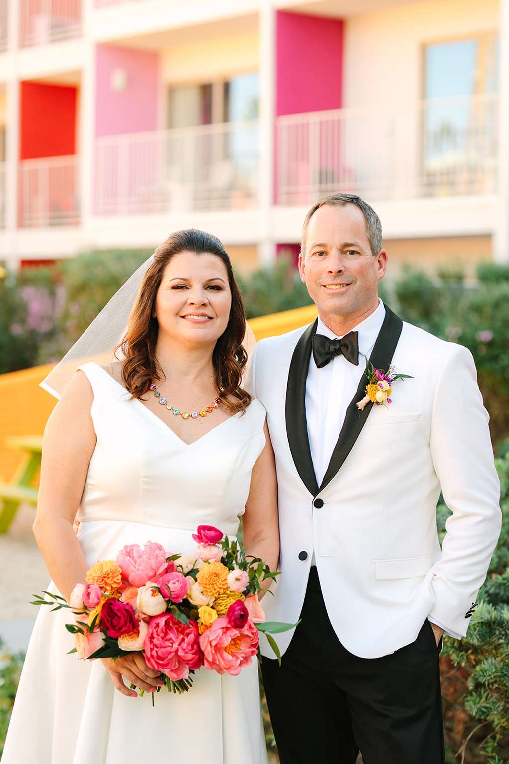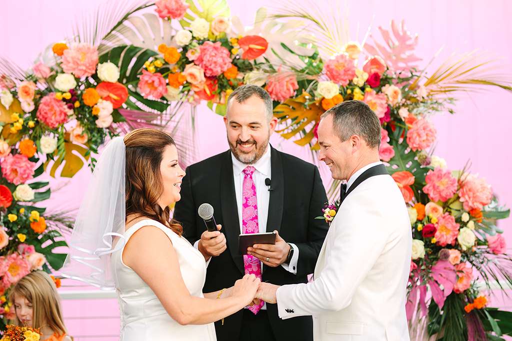 The couple went over budget on their florals, but felt they were worth every penny – and we agree! Joy of Bloom Florals brought all of the colour and all of the fun with their bouquets and arrangements. Aside from sunglasses as name cards for reception place names they were the only decor the couple pulled in – they let the ubiquitous decor at The Saguaro Hotel do the talking!