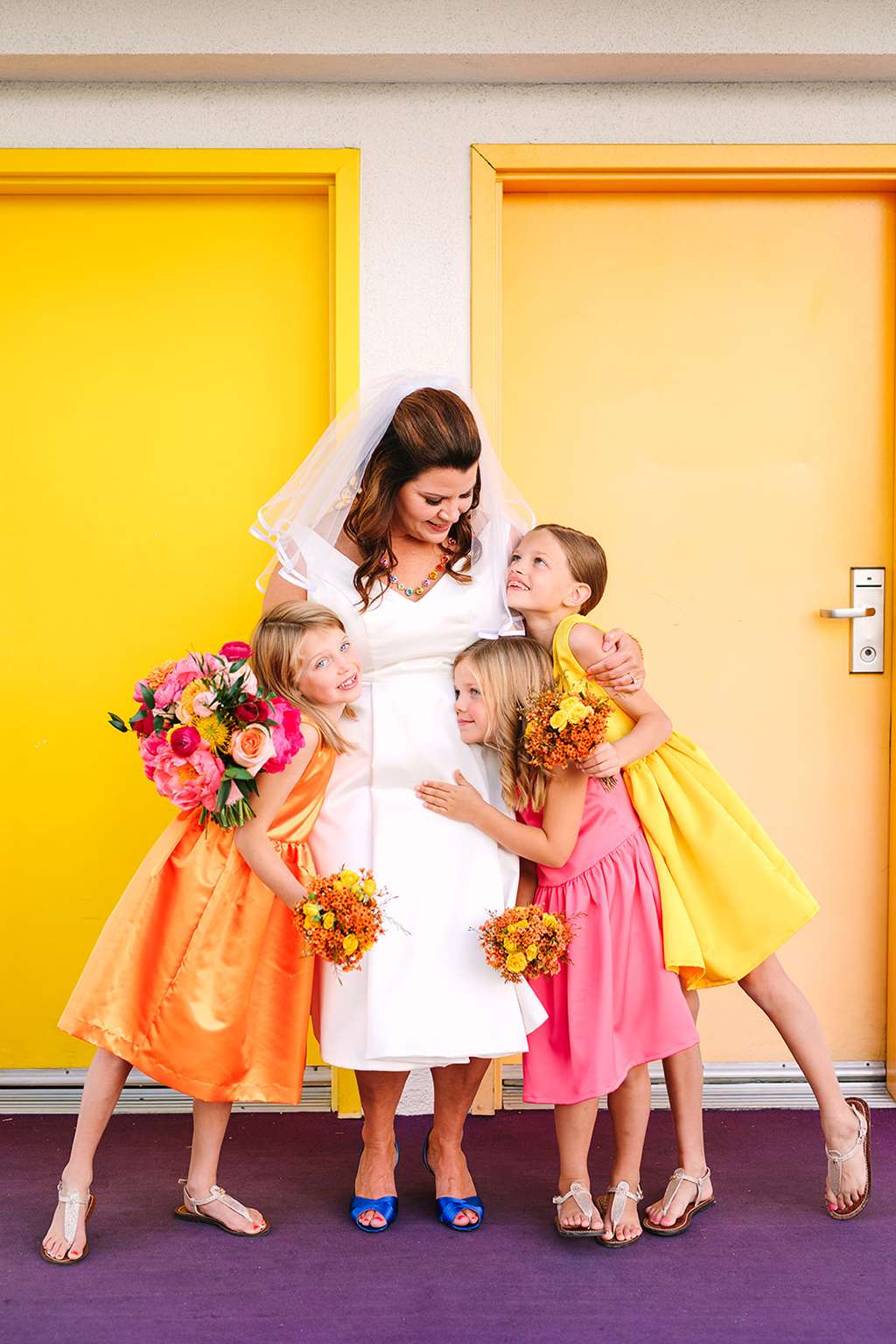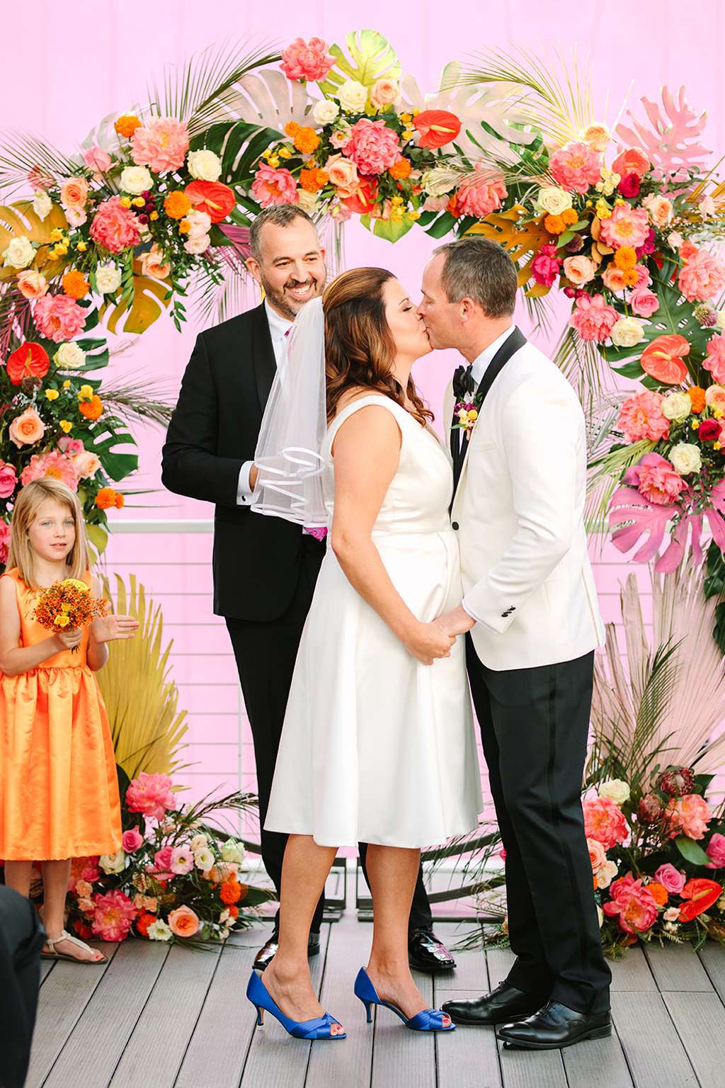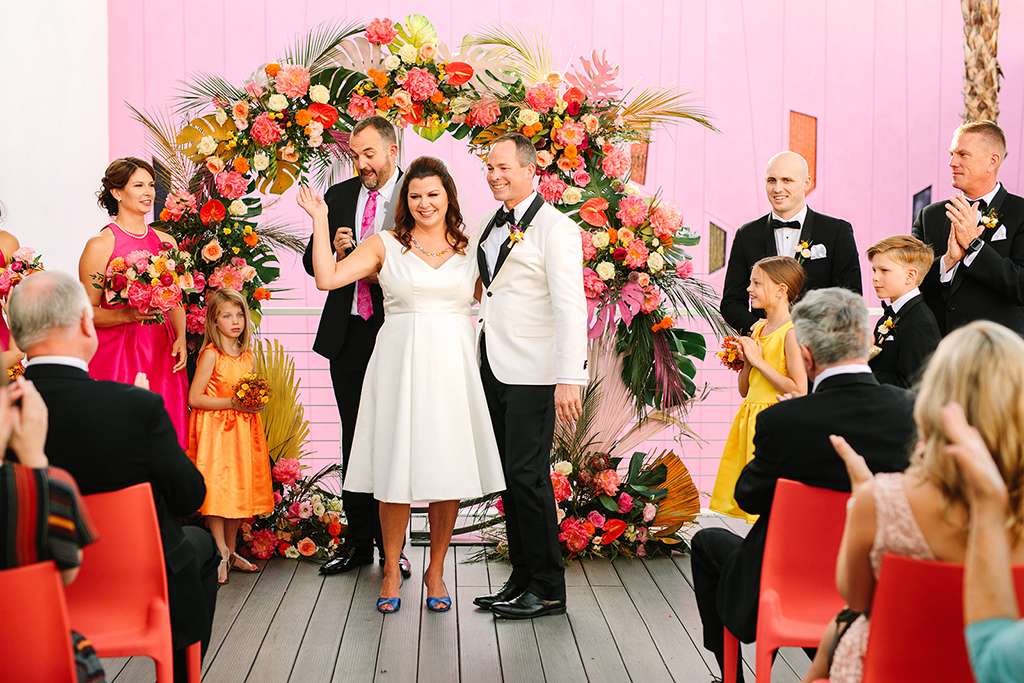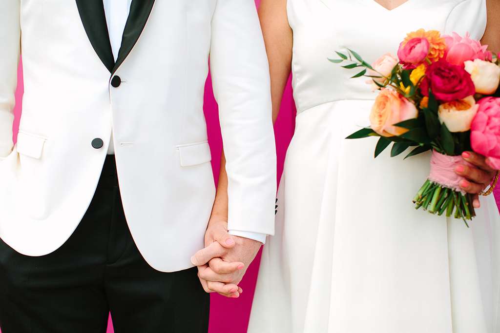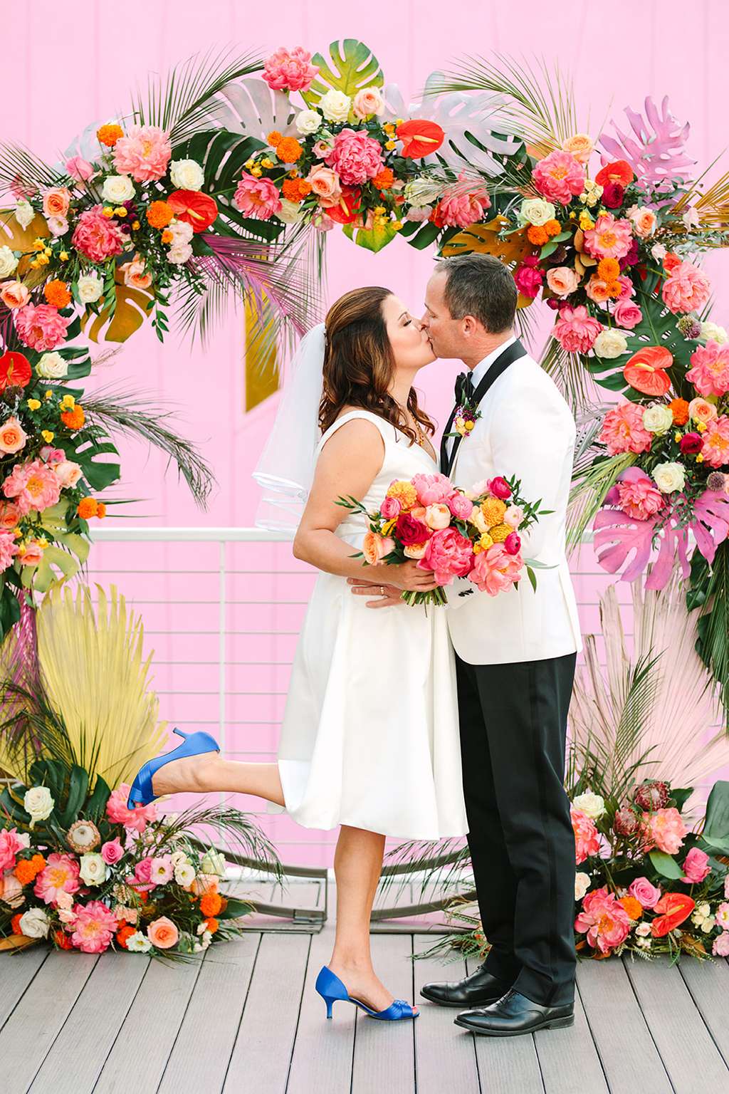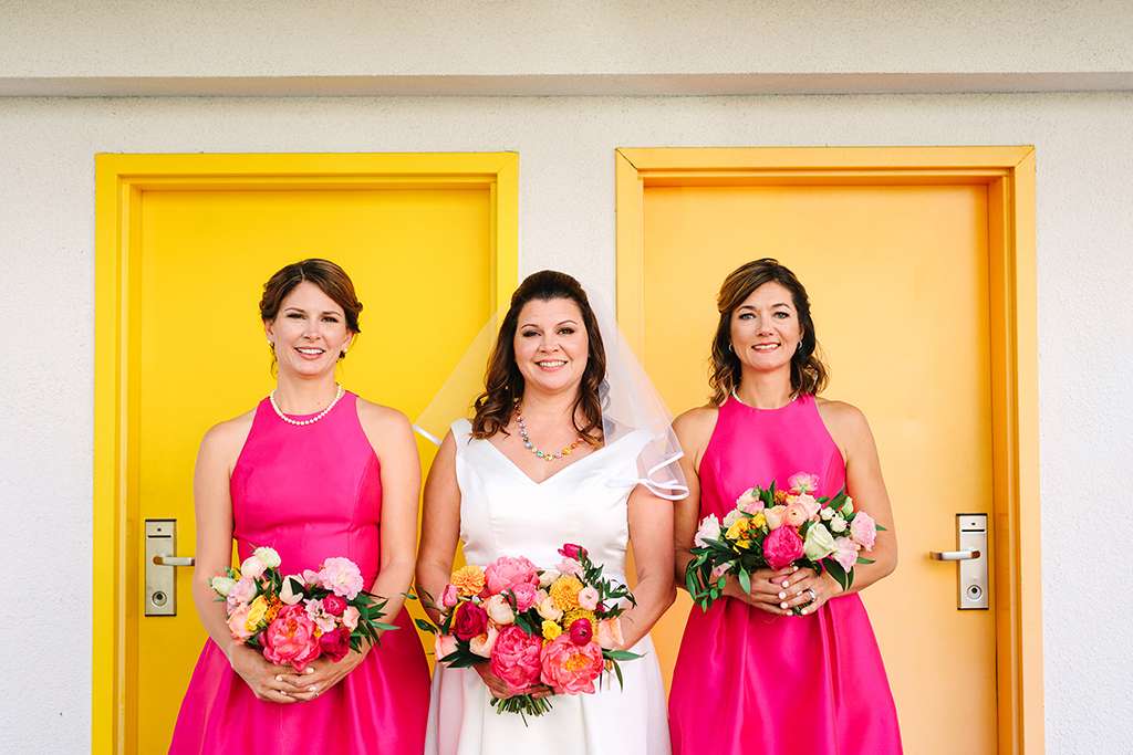 The couple went over budget on their florals, but felt they were worth every penny – and we agree! Joy of Bloom Florals brought all of the colour and all of the fun with their bouquets and arrangements. Aside from sunglasses as name cards for reception place names they were the only decor the couple pulled in – they let the ubiquitous decor at The Saguaro Hotel do the talking!