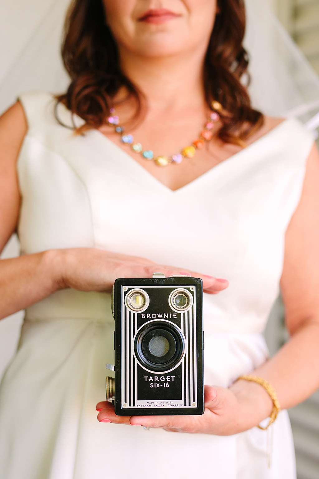 Amy struggled to find her dream dress, and actually stumbled across the one she chose while shopping for bridesmaid dresses. “Again, my veil was something I was struggling to find that matches my vision, so I ended up buying an $8 veil online and with the help of my sister and her glue gun we got just about we I wanted. It was the only DIY of the day!” Mike knew there was no way Amy couldn’t wear a little colour for their wedding day, and so gifted her a gorgeous rainbow Roxanna Assoulin necklace to wear on the day.