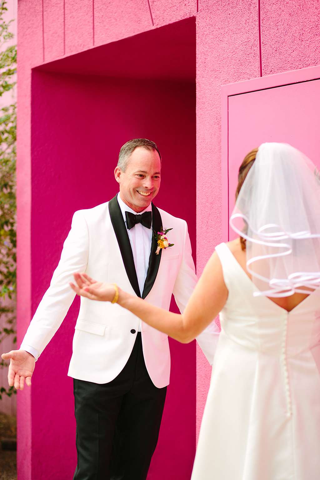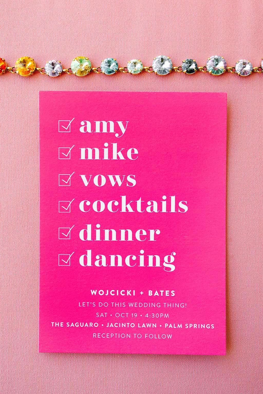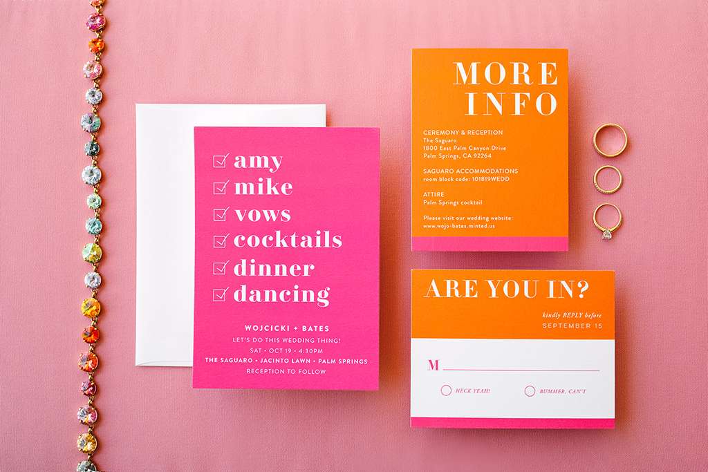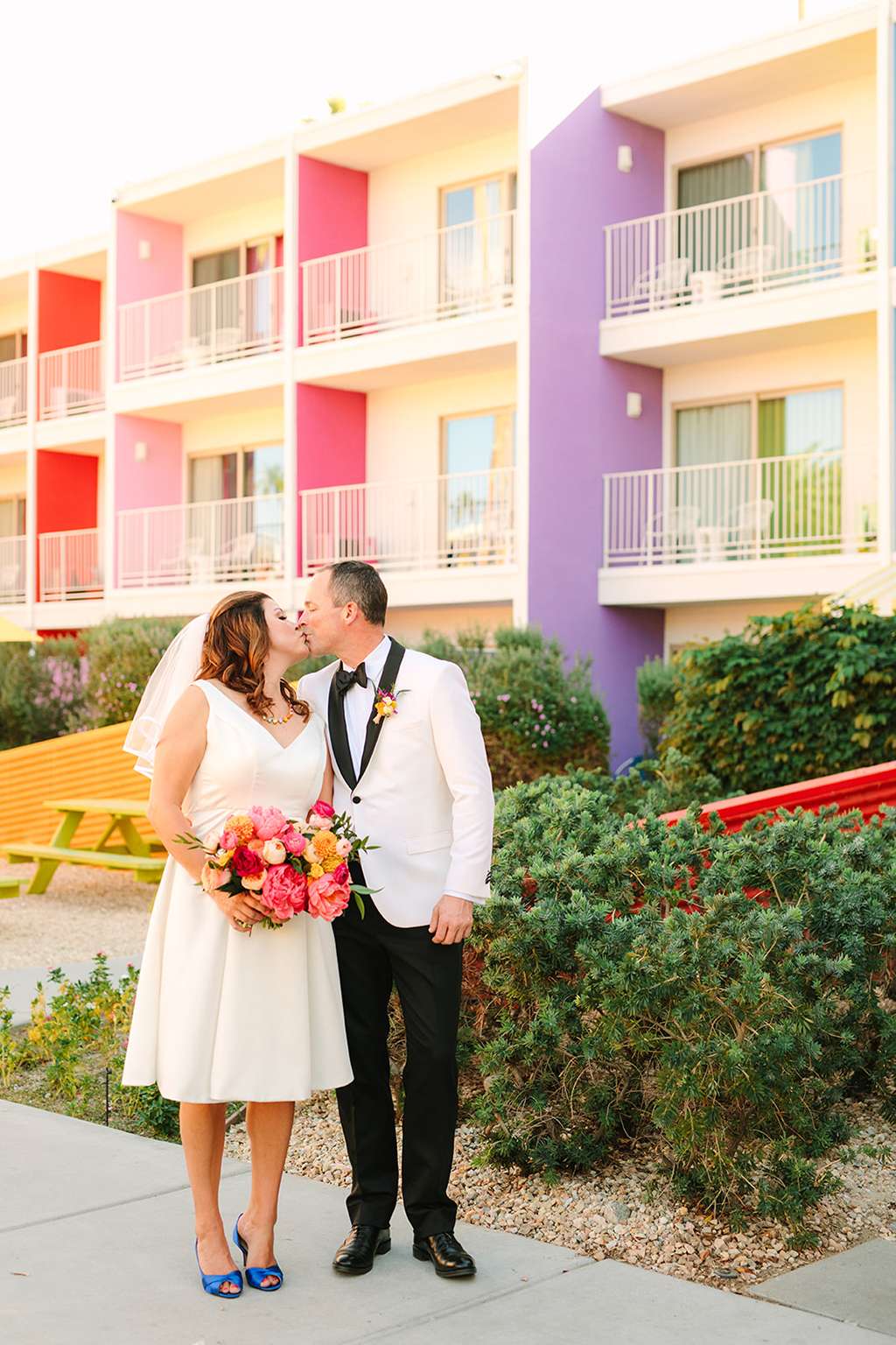 Mike and Amy made a trip to Palm Springs a few years before they got engaged, and fell in love with it the mid-century architecture, the colours and the heat. They were pretty certain that they wanted to get married there, so once they committed to that, they leaned on that style to guide them!