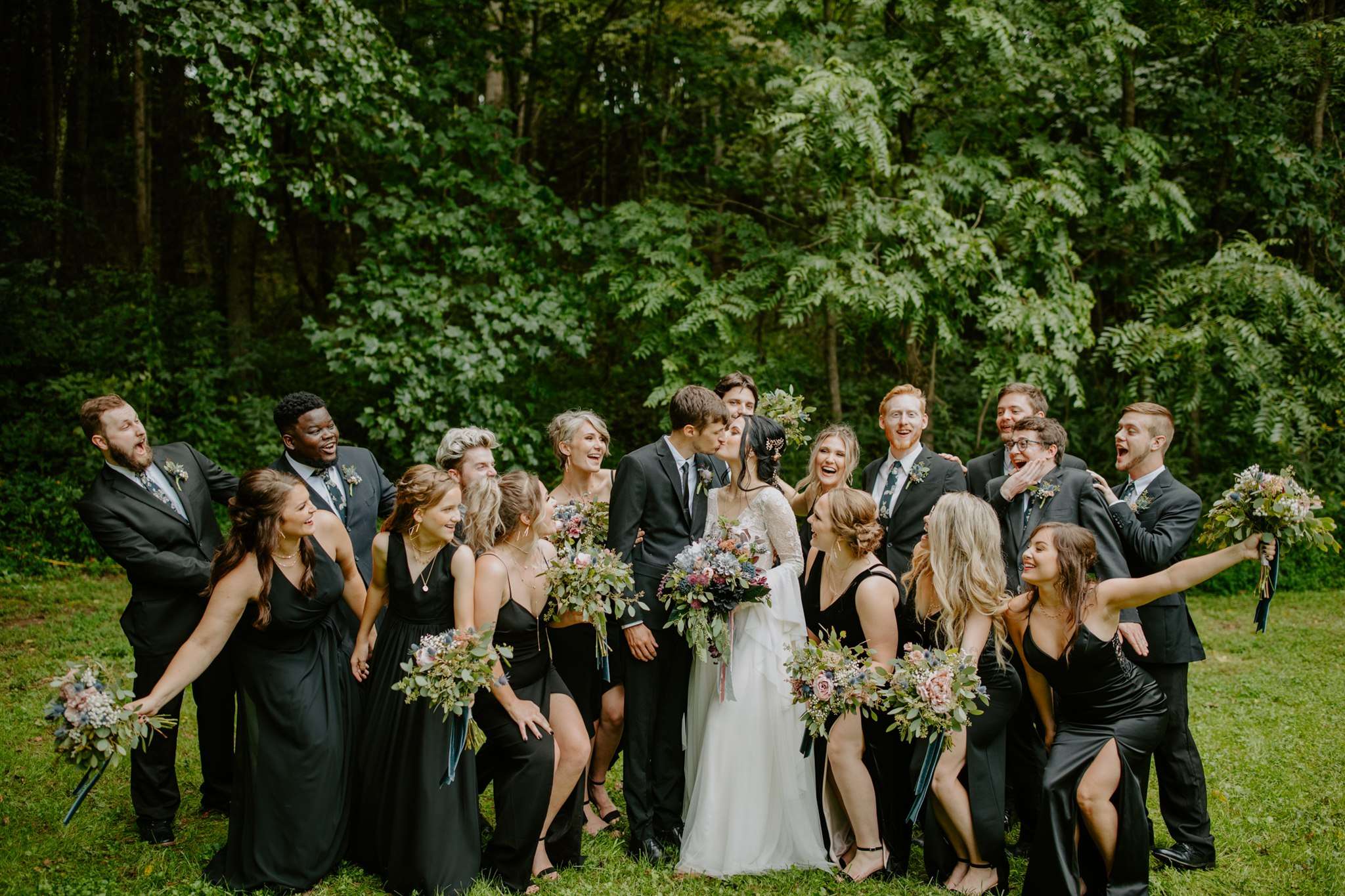 The day was held at The Side Porch in Gray Tennessee, which is owned by the bride’s family. The property is set on a picturesque 17-acres complete with streams, woodlands and fields and was ideal for their day. “The words I used constantly to describe how we wanted our wedding to look were dark, moody, woodsy and alternatively elegant”, the bride explained. “We got a lot of inspiration from Pinterest! We found our own personal style in the inspiration. Neither of us are very colourful people and we wanted this to be reflected in the wedding.”