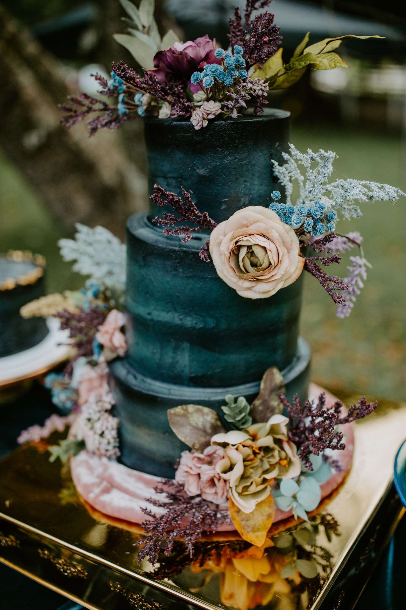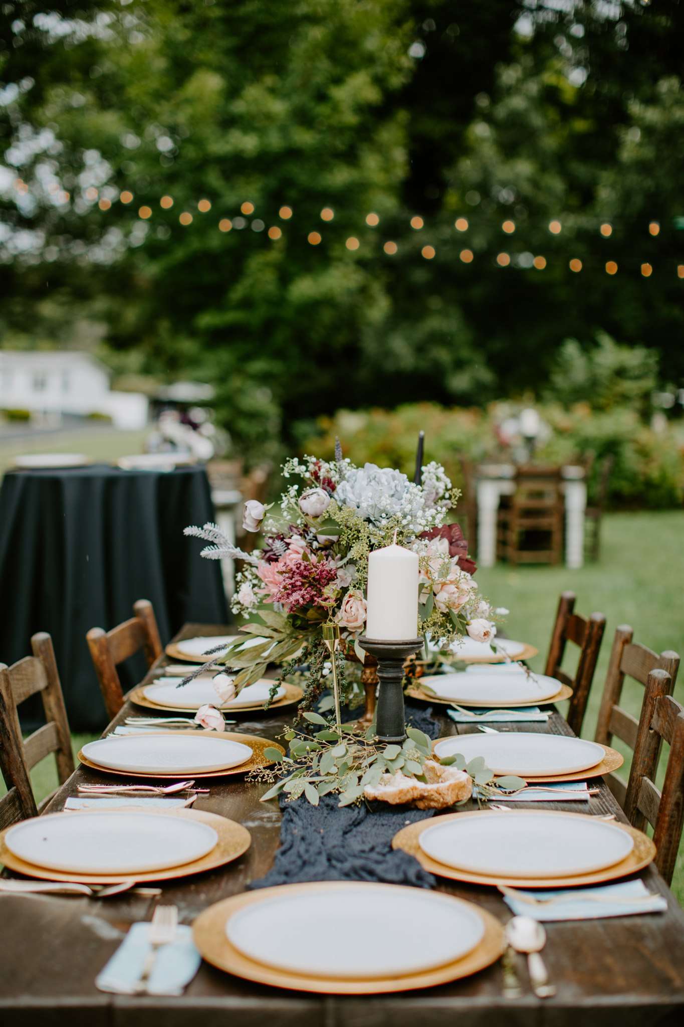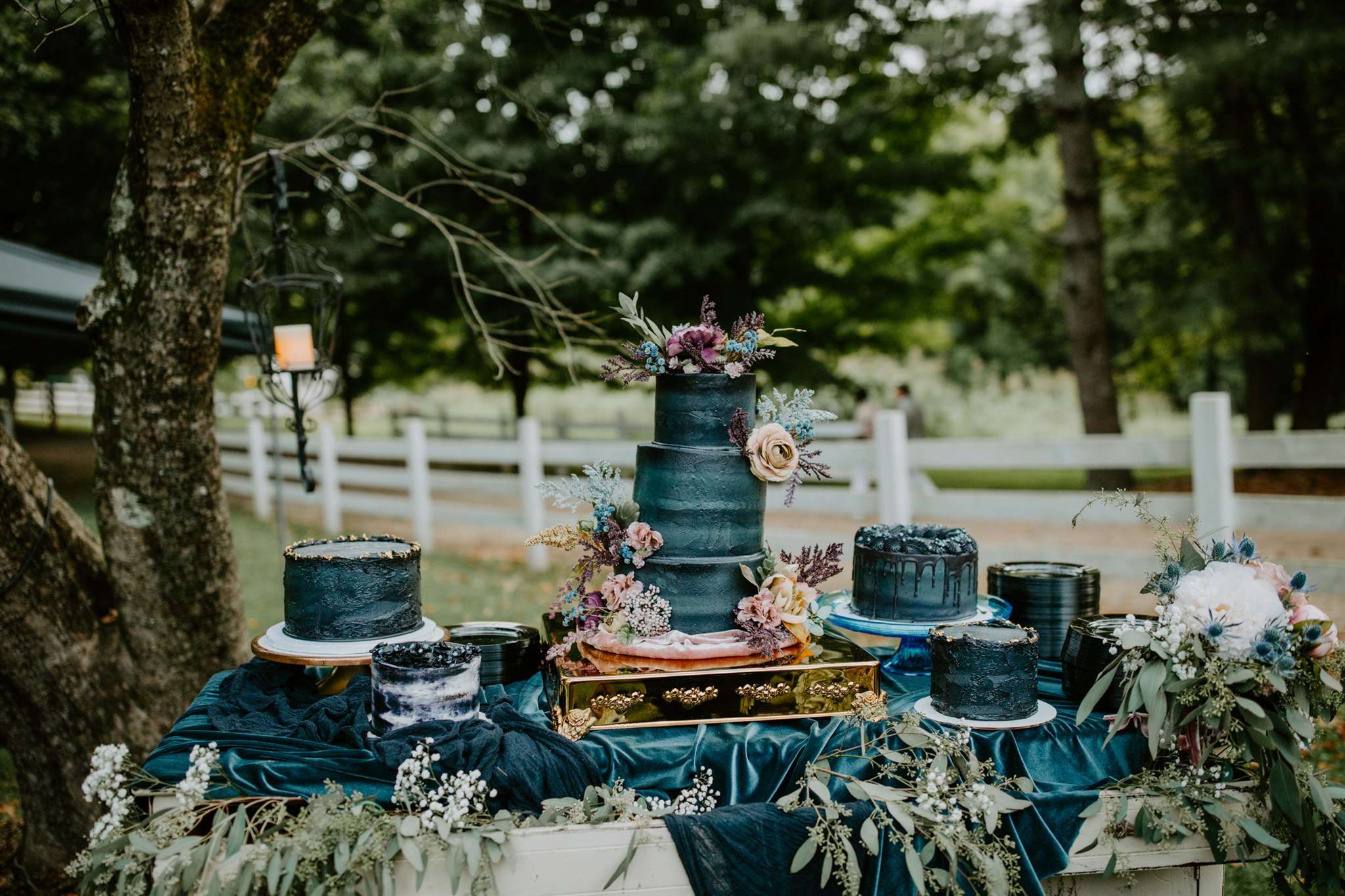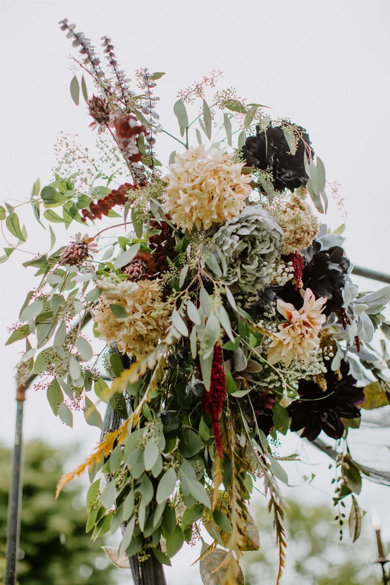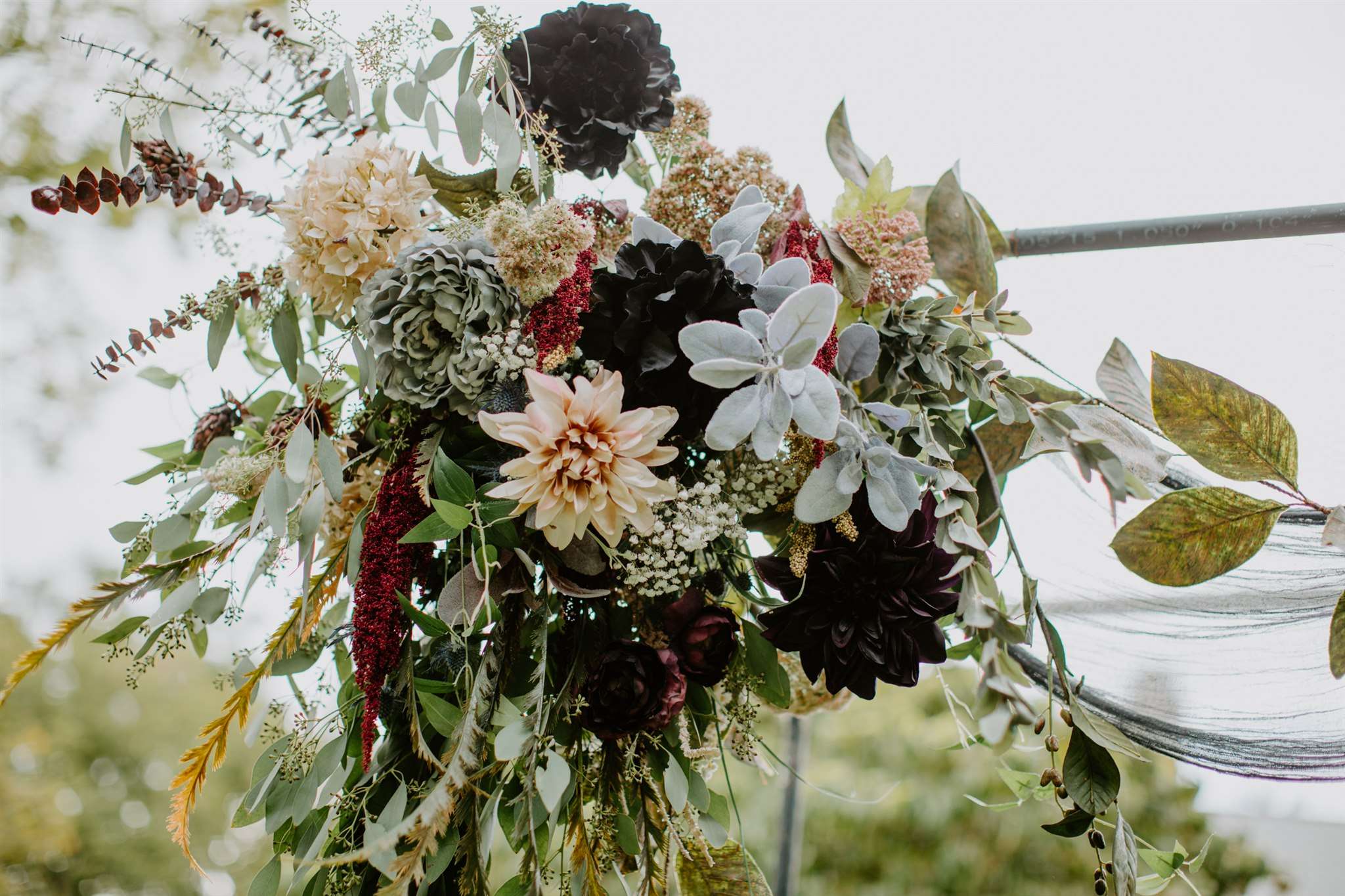 The décor they chose had a gothic boho vibe, two distinct themes that shouldn’t really work together but they totally do. Black plates, animal skulls and black candle sticks sat perfectly with flowing muted coloured floral displays, rustic wooden tables and gold silverware.