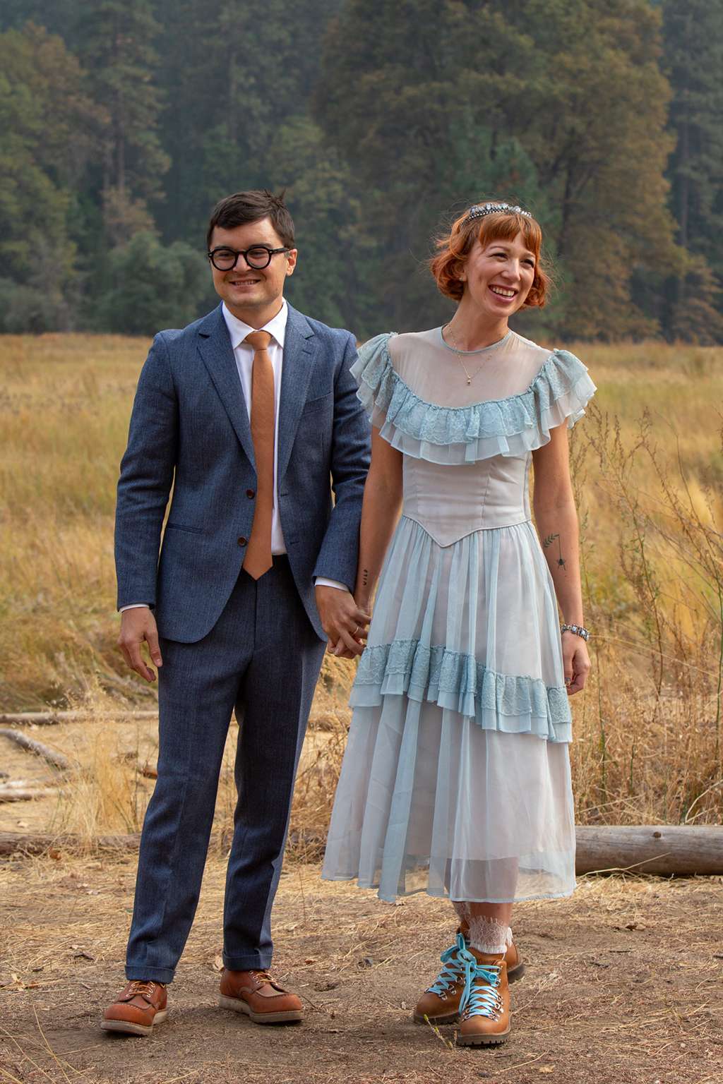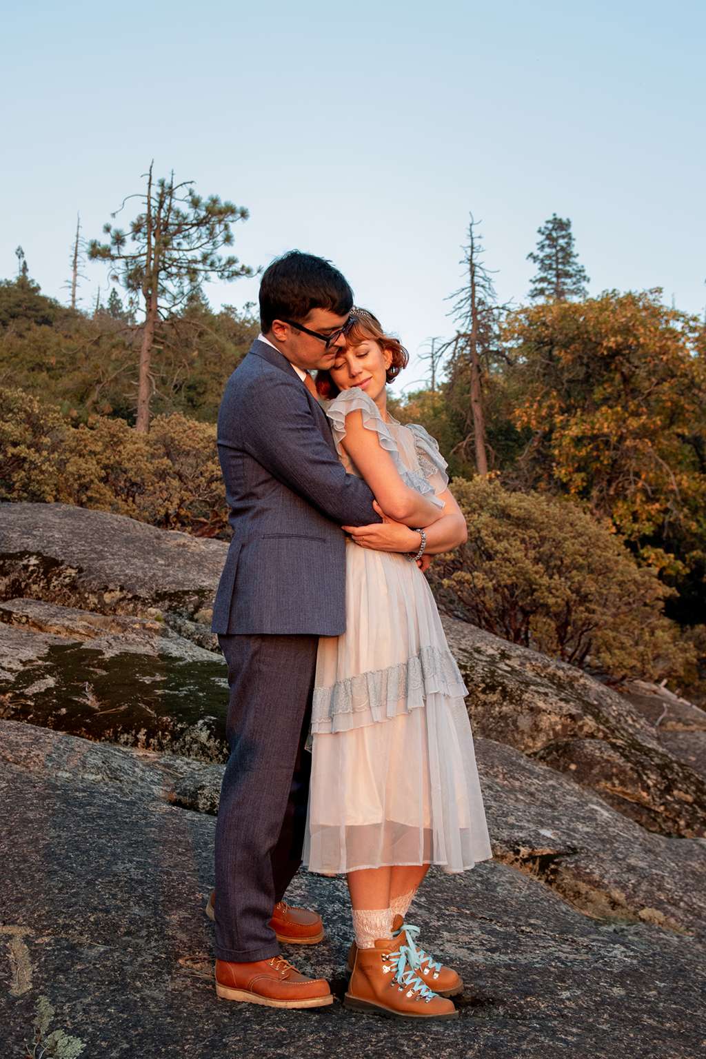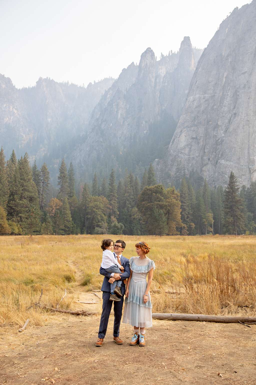 Their ceremony was exactly as they wanted it – intimate and brief! “We all arrived in the El Capitan meadow and found a good place to gather. Both our mums did readings, we wrote our own vows (in cute little notebooks provided by Scenic Vows), and our 5 year old sang All You Need is Love by the Beatles. All in all it was probably about 15 minutes long. My favourite part was being surrounded by nature.” They were even treated to a post-ceremony show of a wild bear climbing a tree above them!