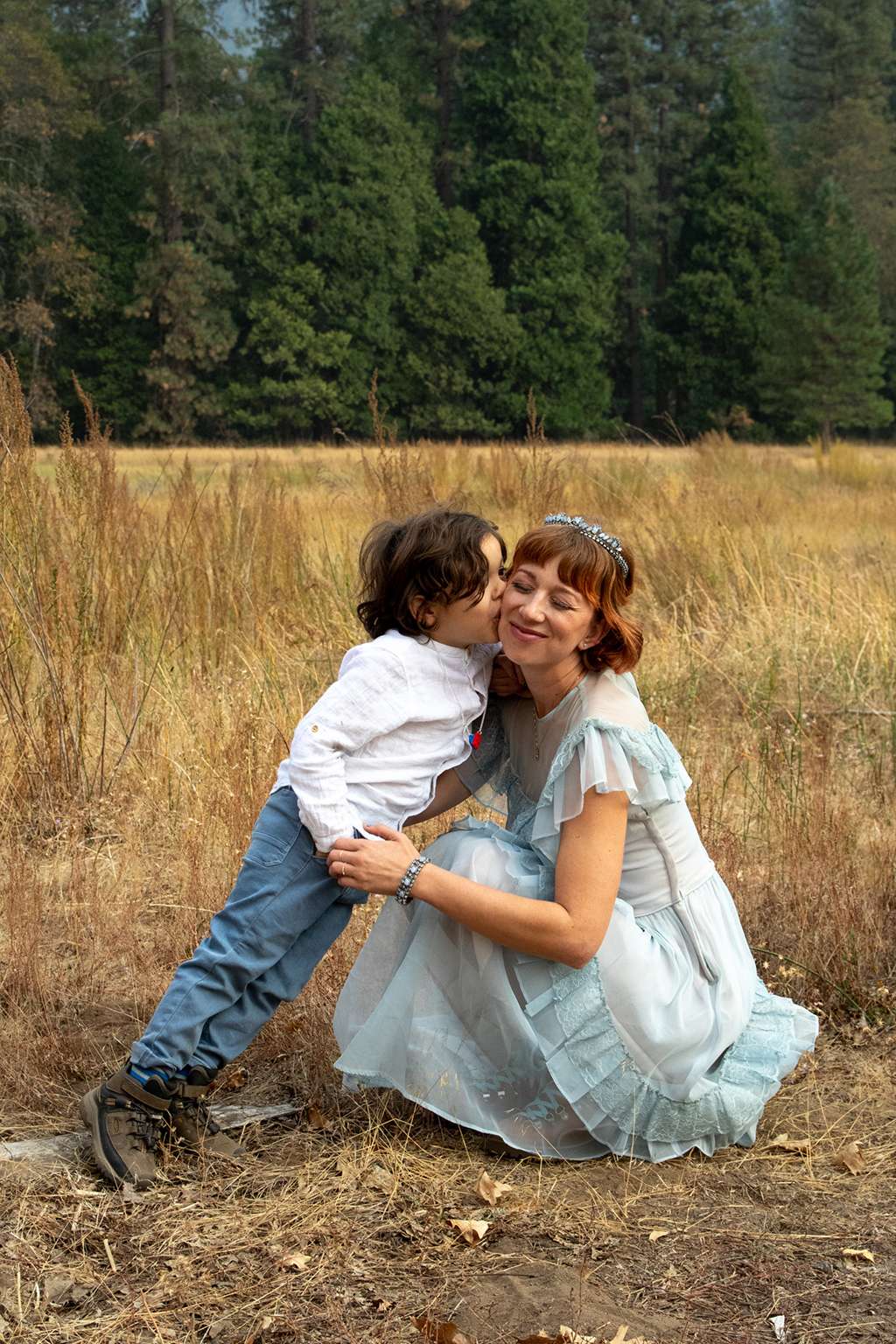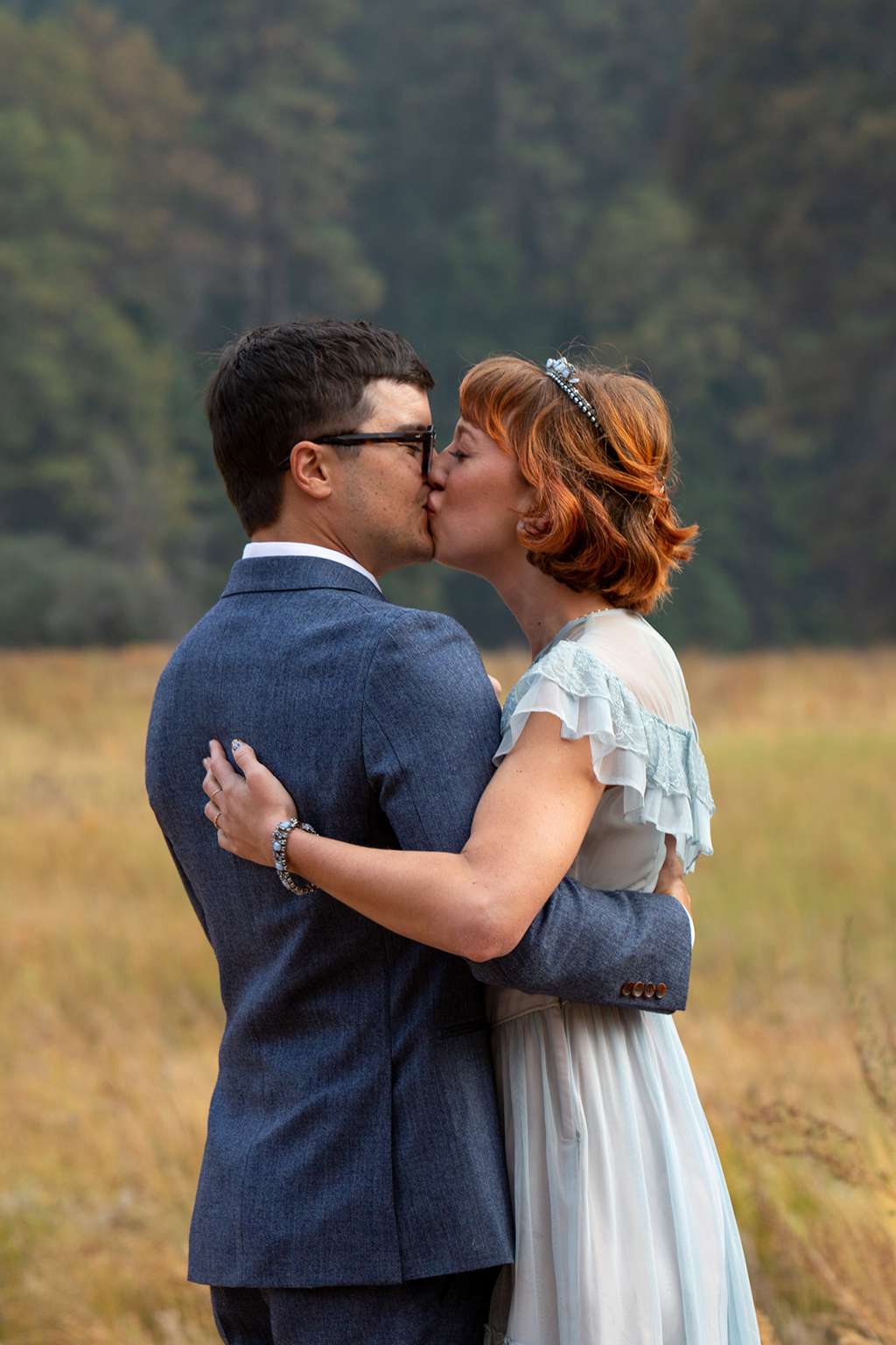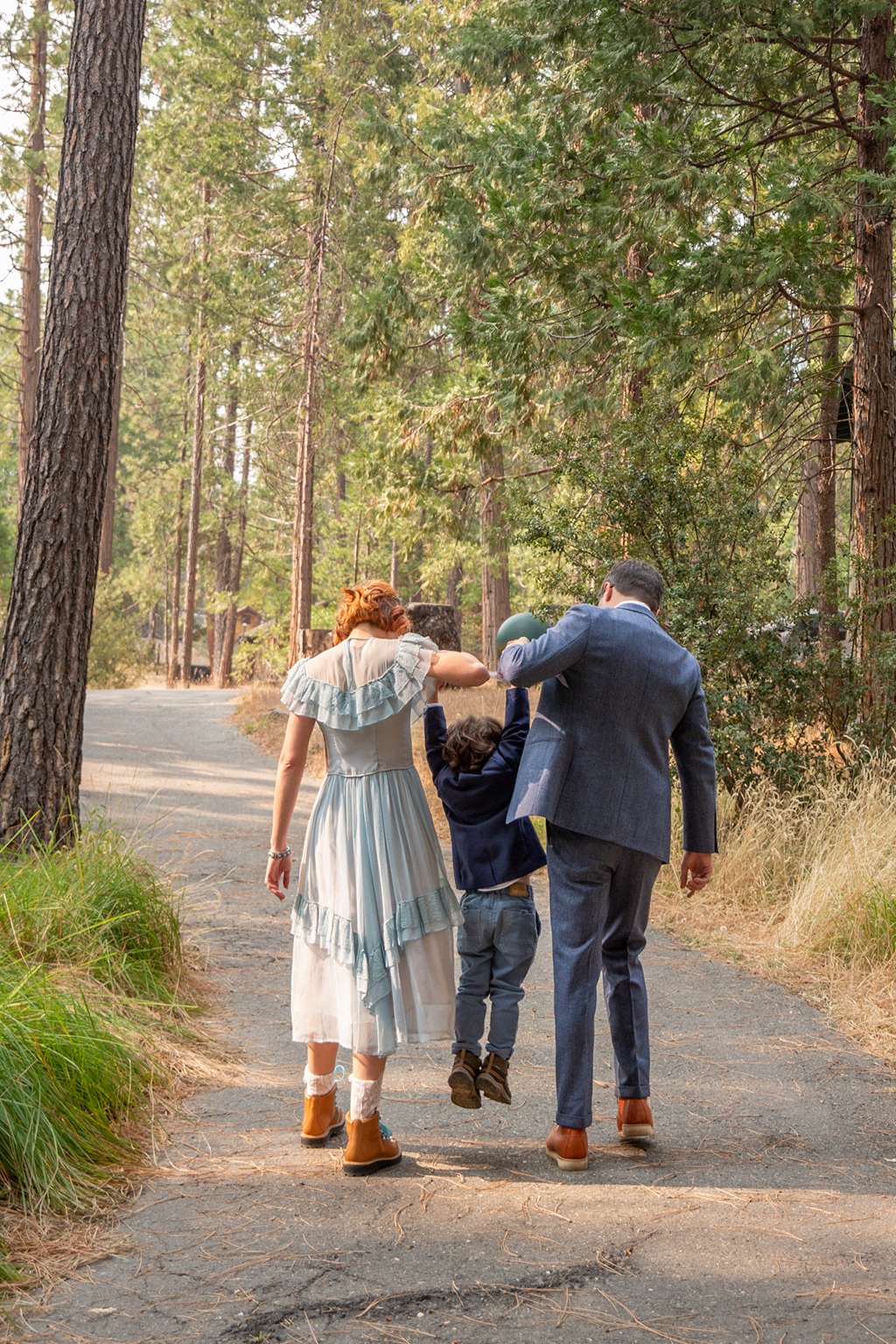 Their ceremony was exactly as they wanted it – intimate and brief! “We all arrived in the El Capitan meadow and found a good place to gather. Both our mums did readings, we wrote our own vows (in cute little notebooks provided by Scenic Vows), and our 5 year old sang All You Need is Love by the Beatles. All in all it was probably about 15 minutes long. My favourite part was being surrounded by nature.” They were even treated to a post-ceremony show of a wild bear climbing a tree above them!