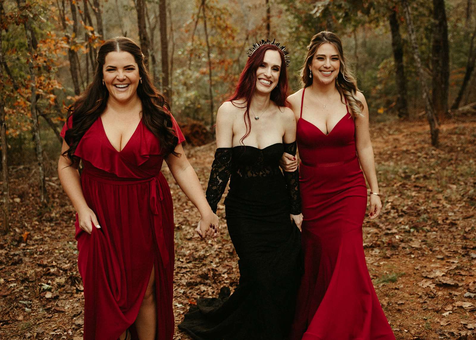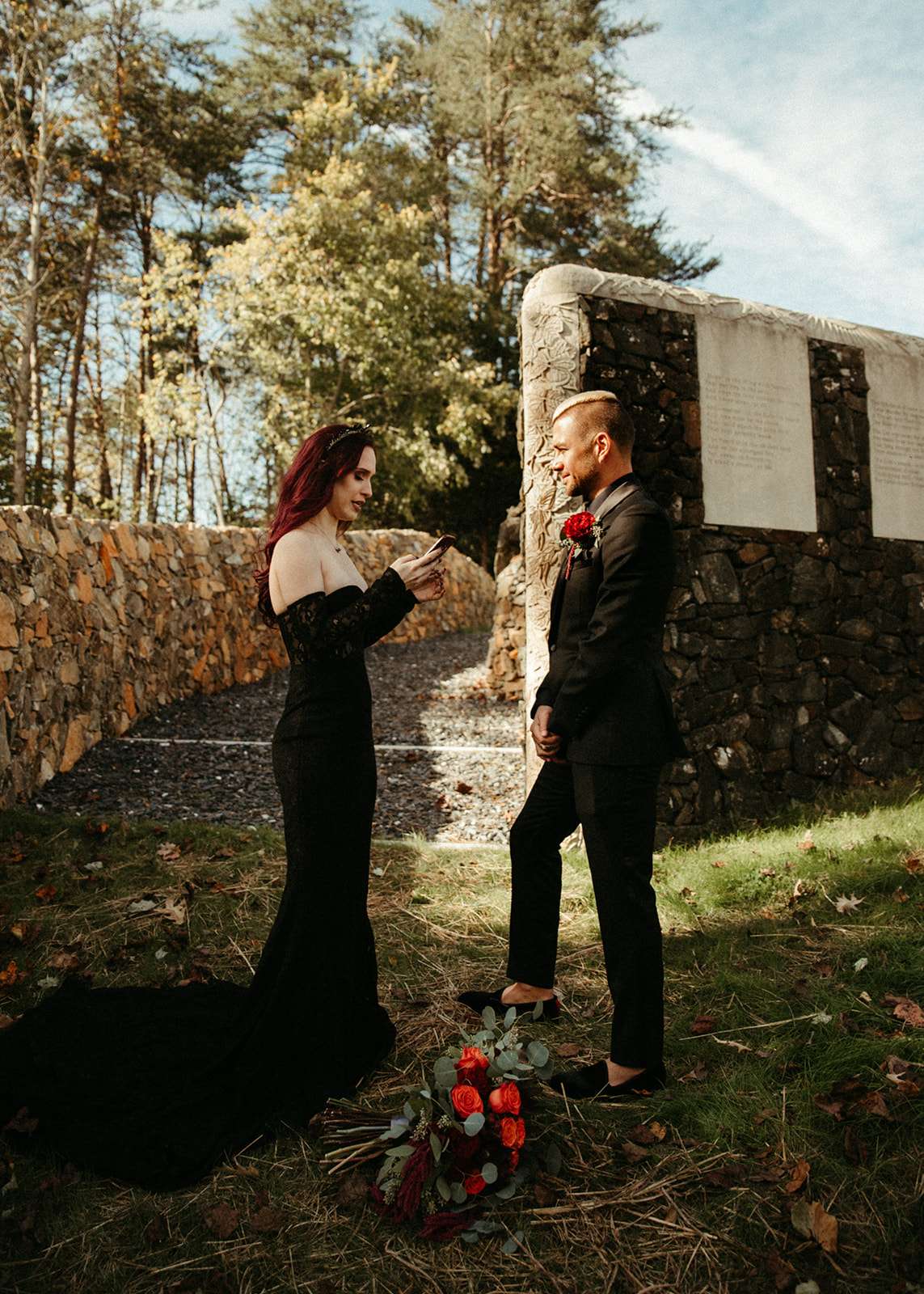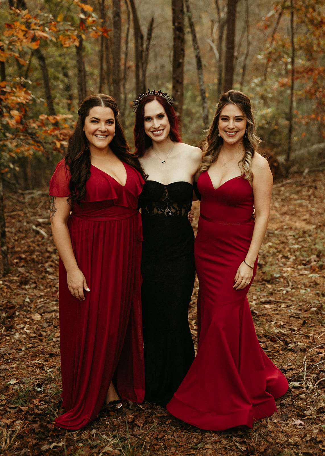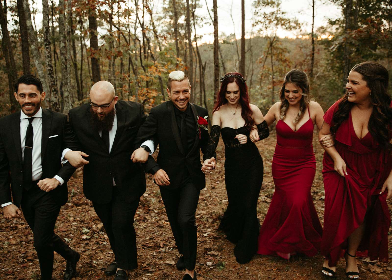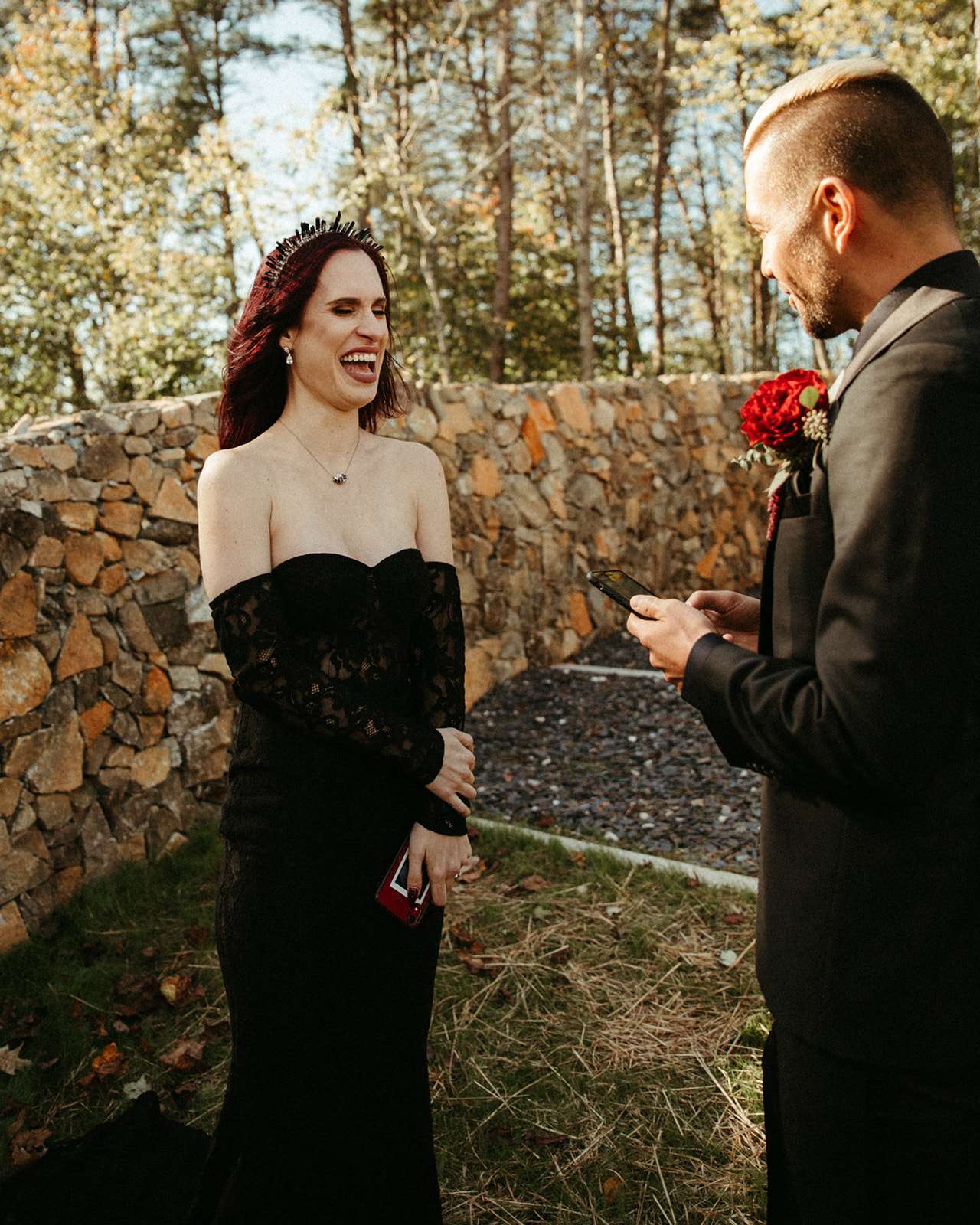 The pair were hitched last October 31st, in Dahlonega, GA at Juliette Chapel & Events Centre. They both love Halloween and the woods so it was the perfect date and setting for them. The bride wore a custom made black wedding dress with jewellery previously owned by her mother and grandmother.