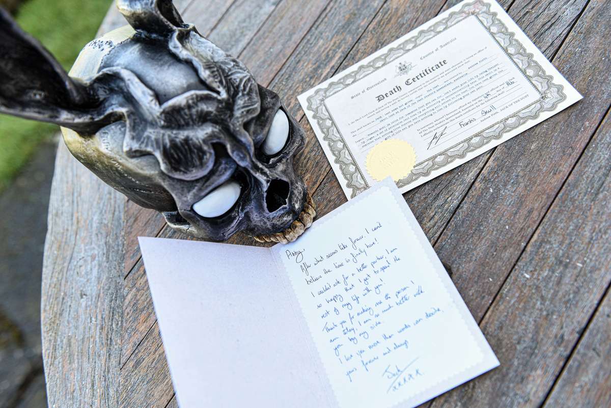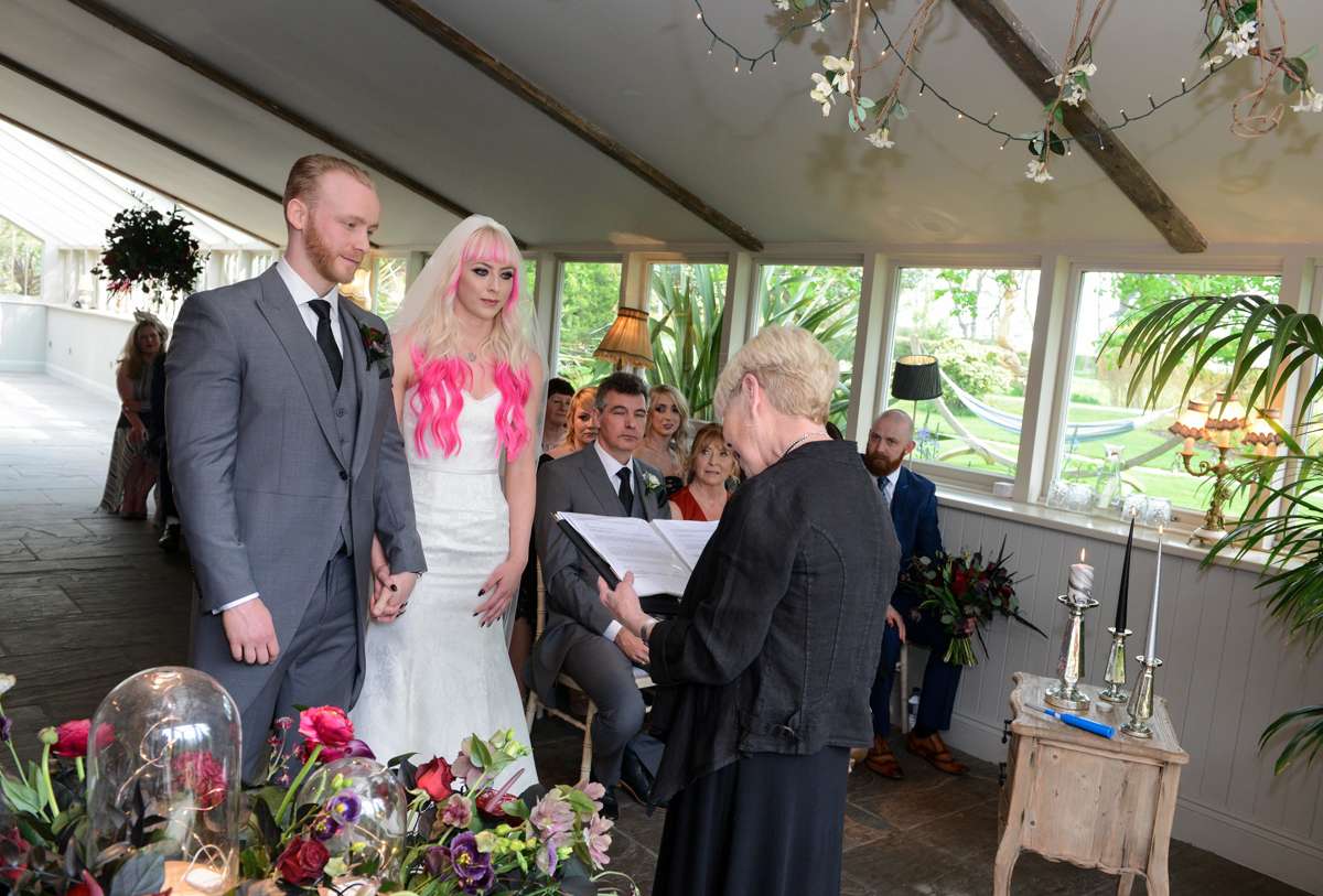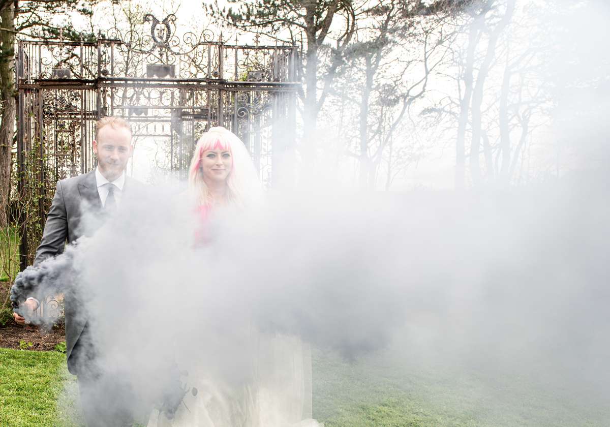 Abby and Jack’s April wedding was influenced by their love of skulls, tequila, music and their favourite films and TV shows – ‘gothic geek’ is how they described it to their friends.