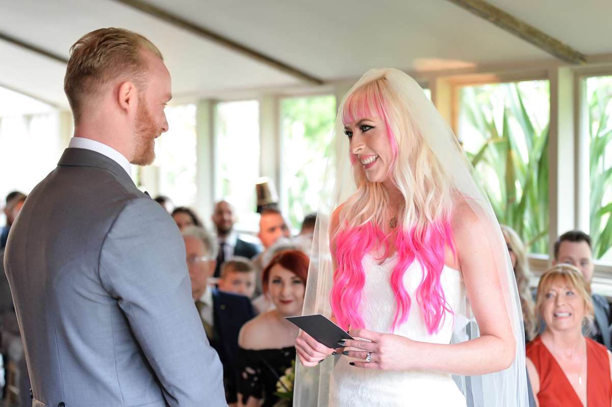 “We wanted the day to reflect us and to not be a completely traditional wedding”, Abby told us. “I was on Pinterest a lot and took bits that I liked to make our own. We’re not the most imaginative couple, but I like to think that we did ourselves proud. We did keep some traditional things though; I wore white (despite friends guesses that I’d be in black or purple!) and we still had the speeches and first dance.”