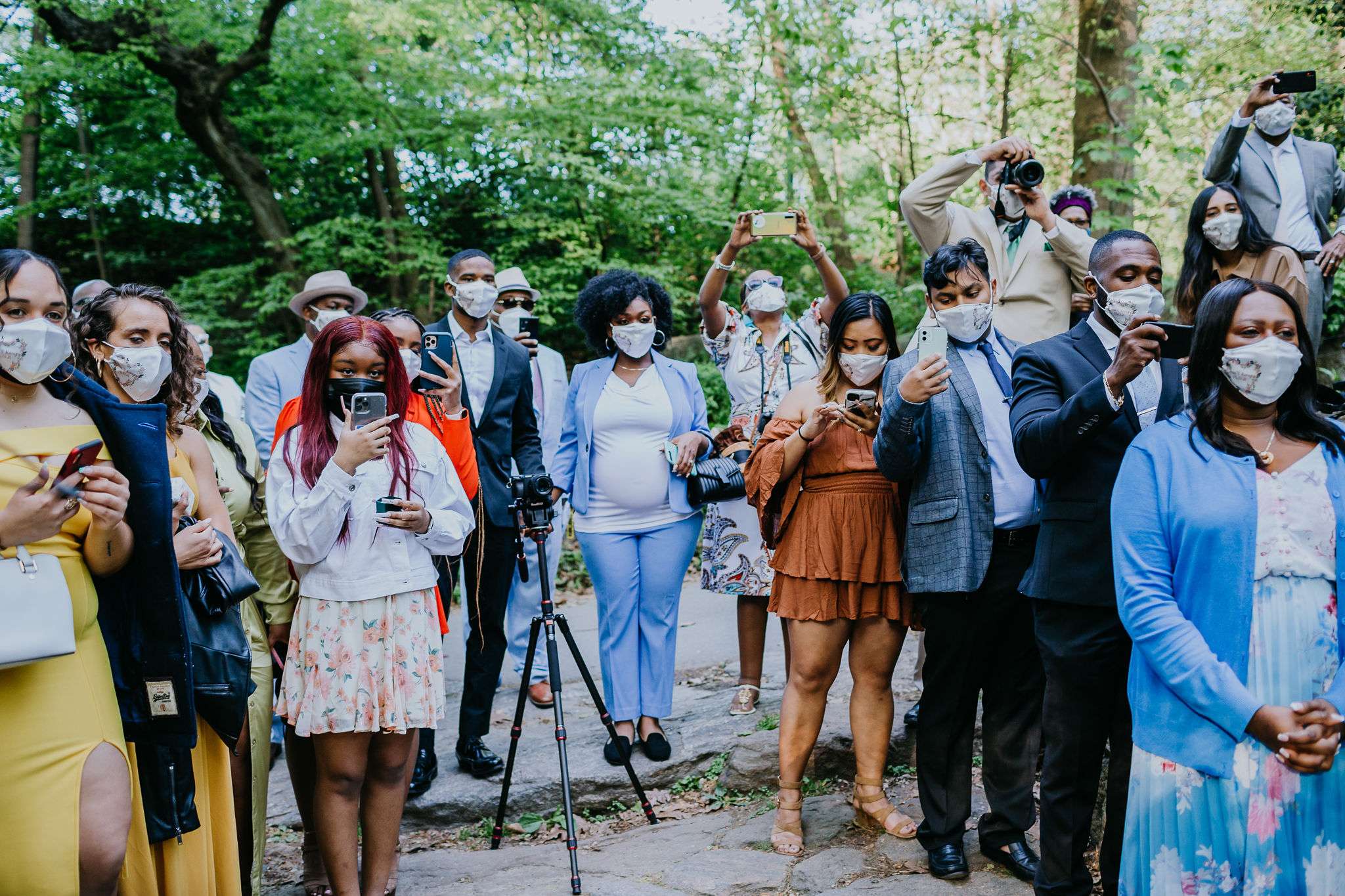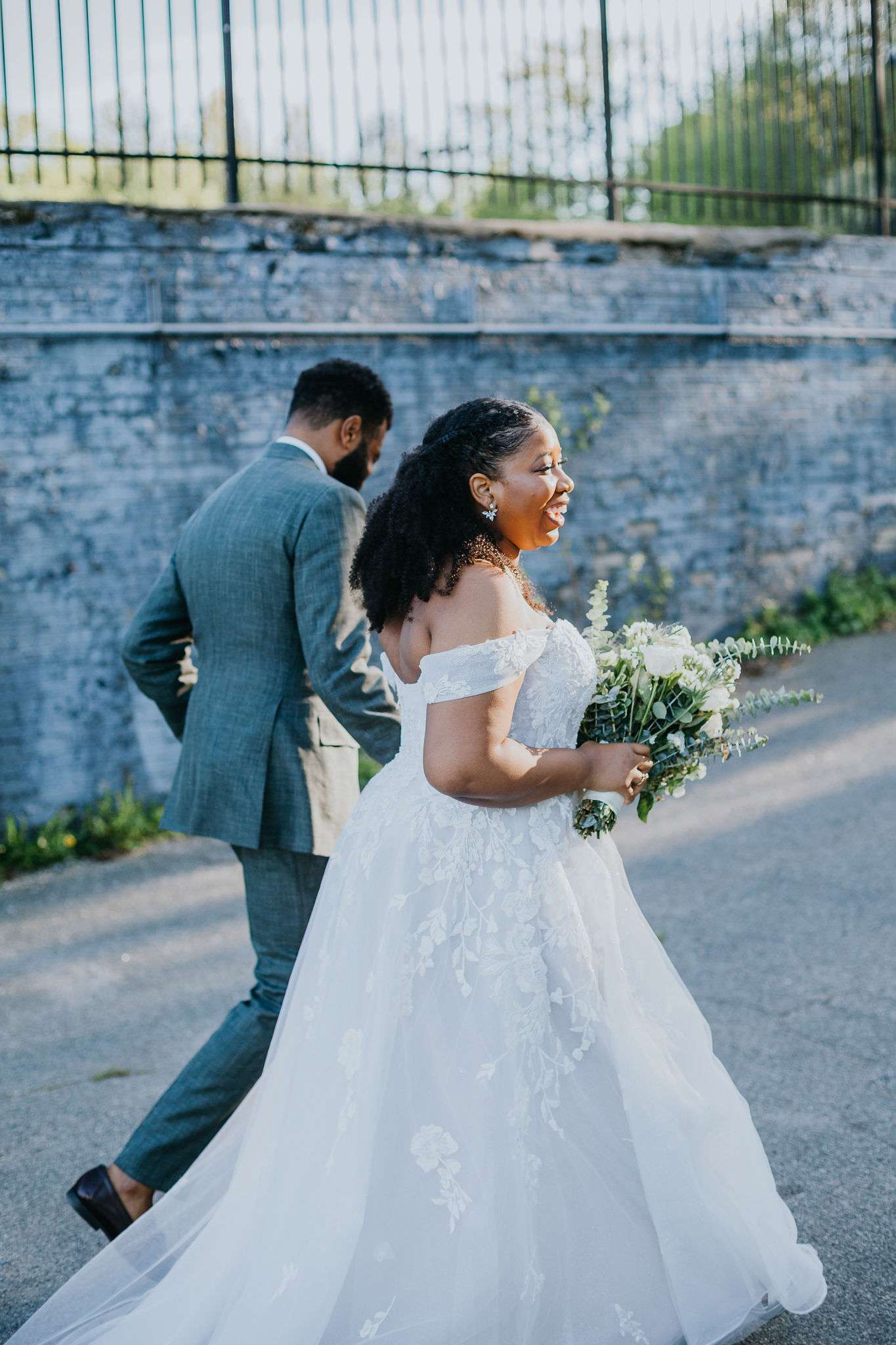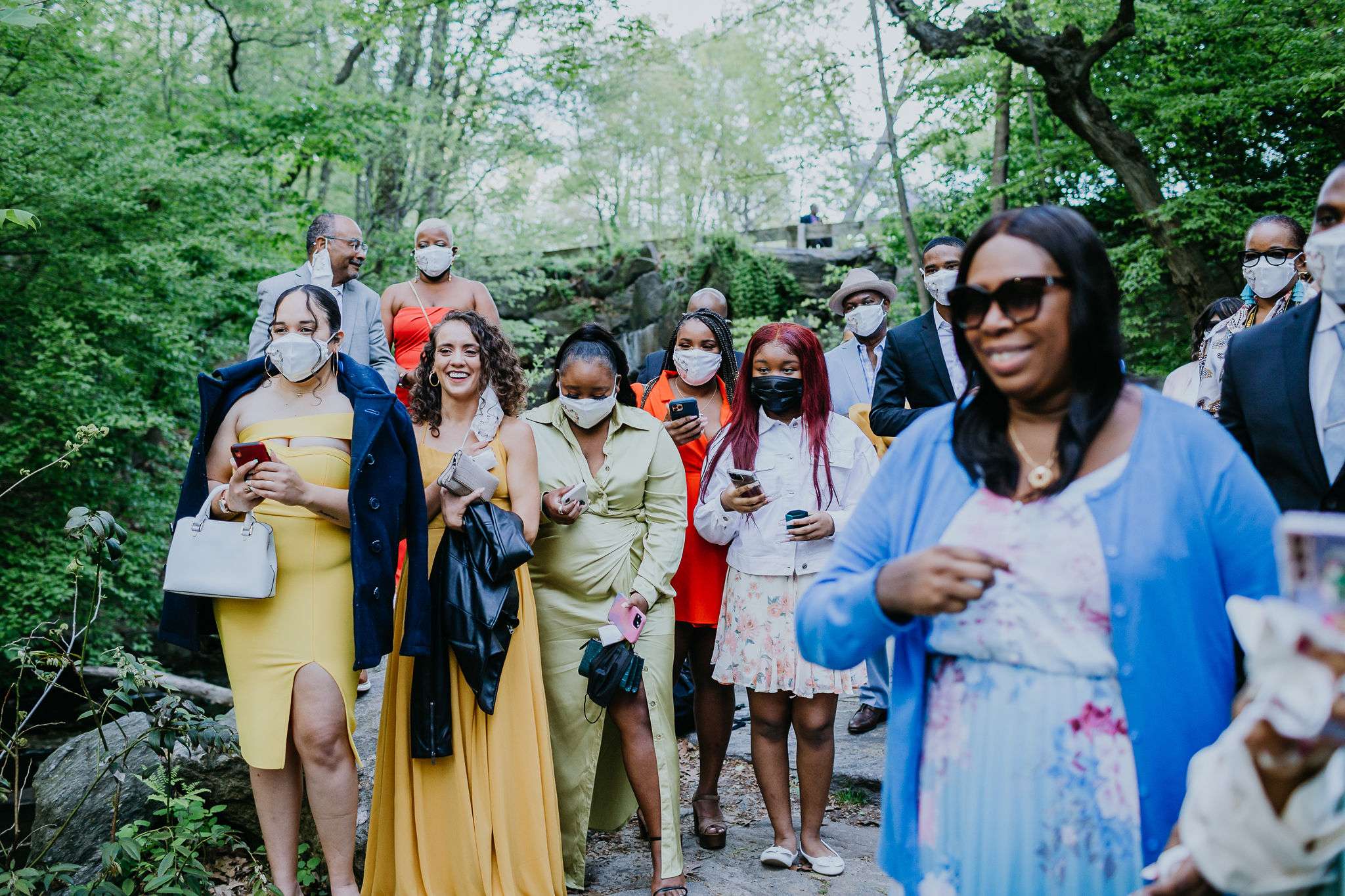 A serene and quiet part of the park in Harlem, when they first visited North Woods it felt as if they had been ‘transported into a fairytale.’ “The spot where we had the ceremony was right in front of a waterfall and everything around us was green. Our ceremony was short and sweet – both of our mothers did a reading (To Love Is Not to Possess and You Came, Too), we welcomed and honoured our ancestors, and we wrote our own vows. We were surrounded by a small group of our loved ones and that intimacy really made a difference. It felt like everyone there was a part of the ceremony and there was a lighthearted vibe with crowd banter and lots of laughs.”