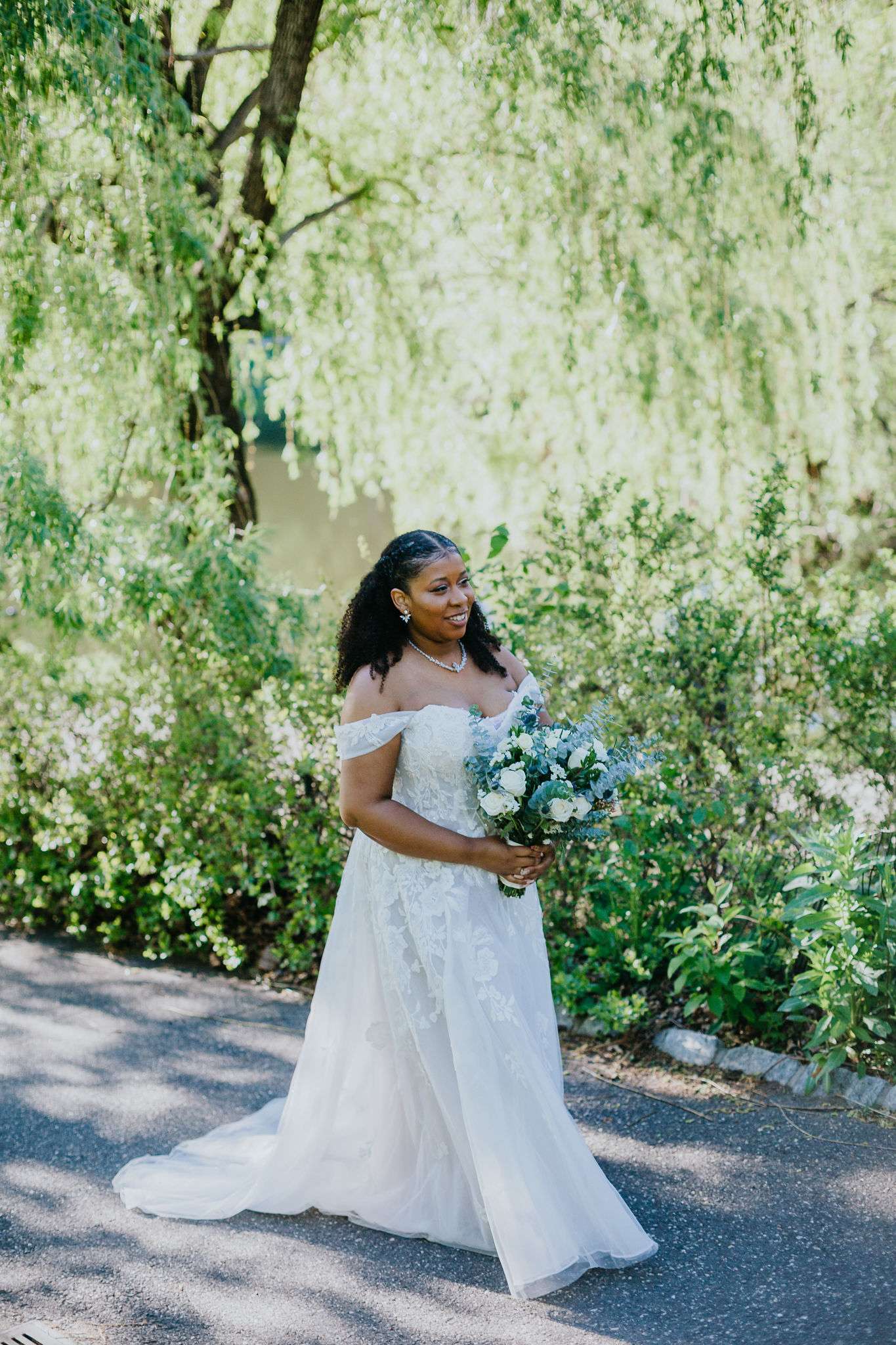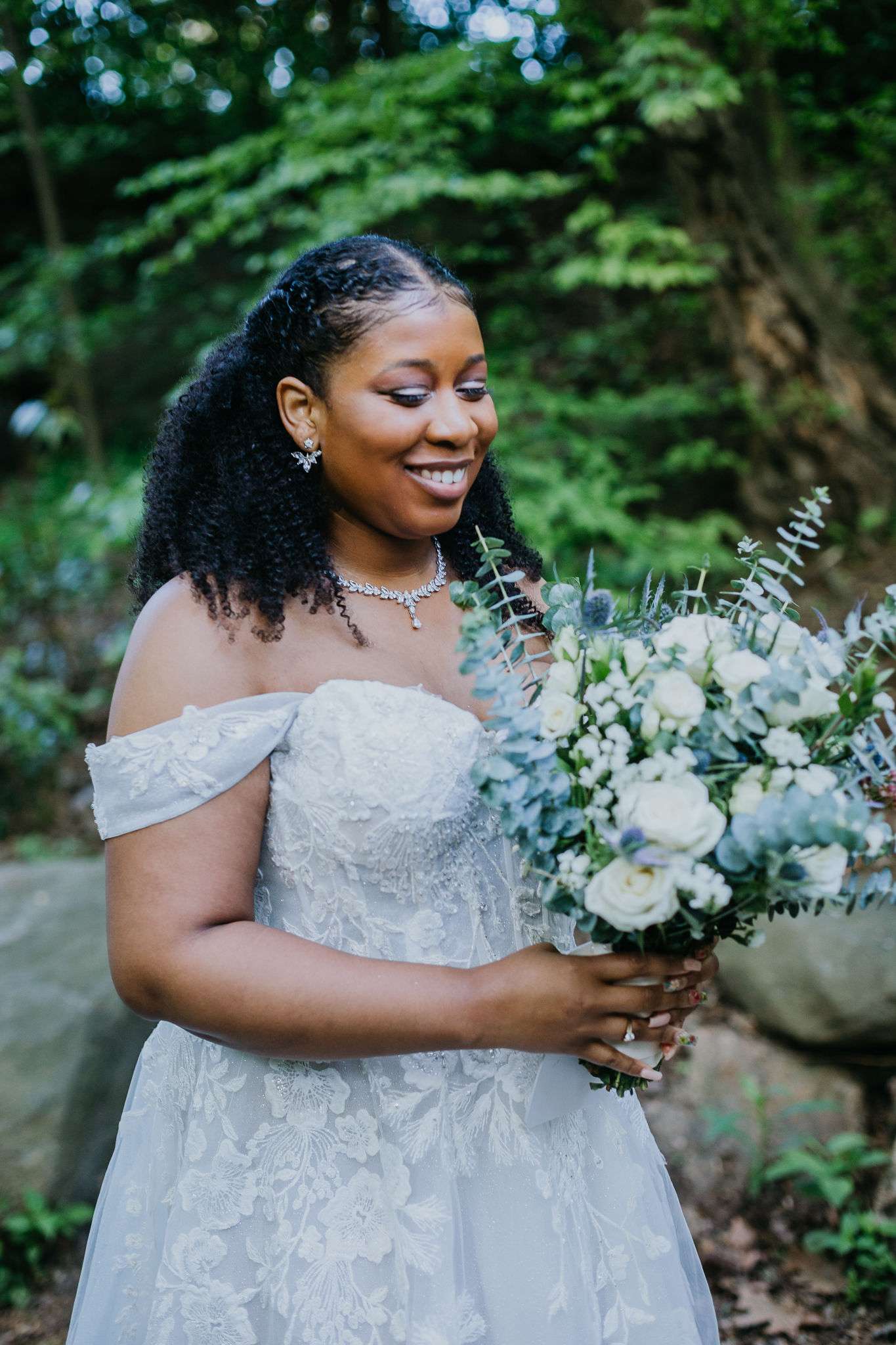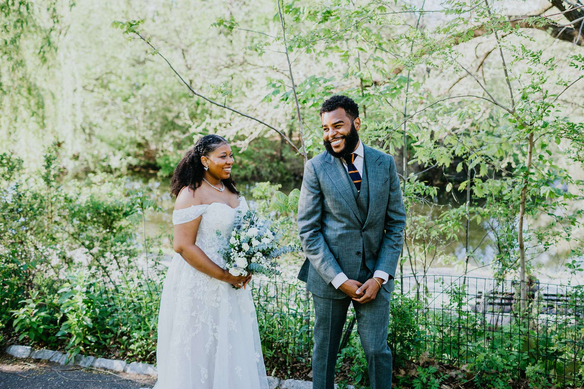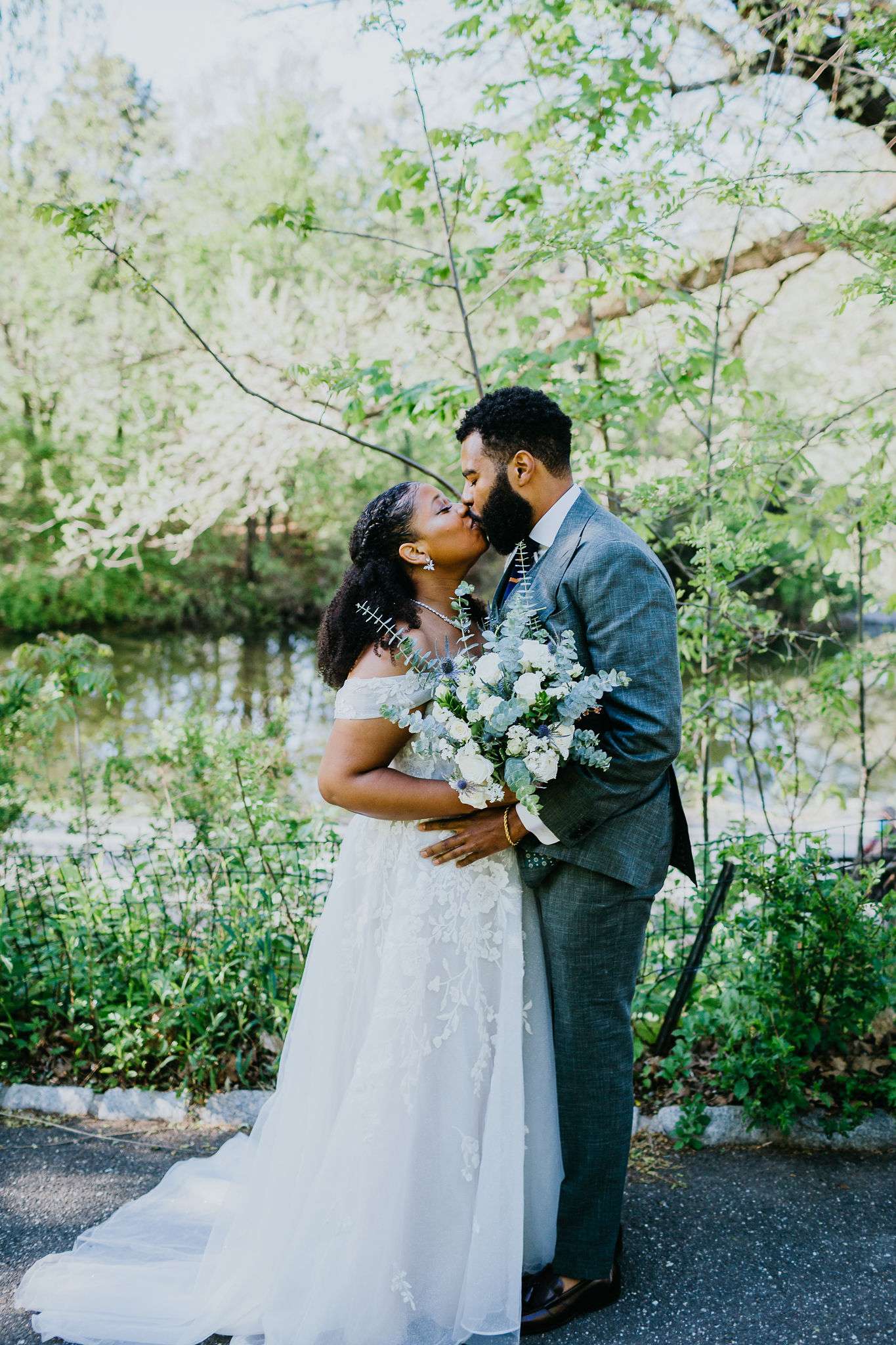 Spring was the biggest inspiration for Chris and Karyn’s Central Park elopement. “We were initially planning on getting married on the Spring Solstice,” she told us, “but it is very cold in March in NYC so we decided against it.” Instead, they focused on creating a serene atmosphere, by choosing to have their ceremony in front of a waterfall in North Woods, Central Park, and kept the details fun and boho.