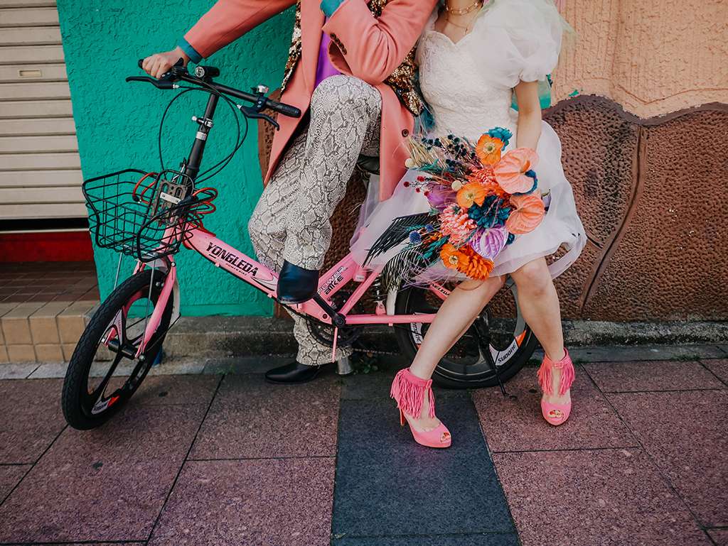Mao also took on styling the couple for the day, using vintage clothes to show people that you can give clothes a new life just by tweaking a few things. “All of my couples get to keep their outfits from the shoot so each outfit it created to reflect their style,” Mao told us. “The bonus is there will never be another couple wearing the same clothes! I styled Peco in a vintage dress and a unicorn-style veil which I handmade especially for her.” We think she rocks it!