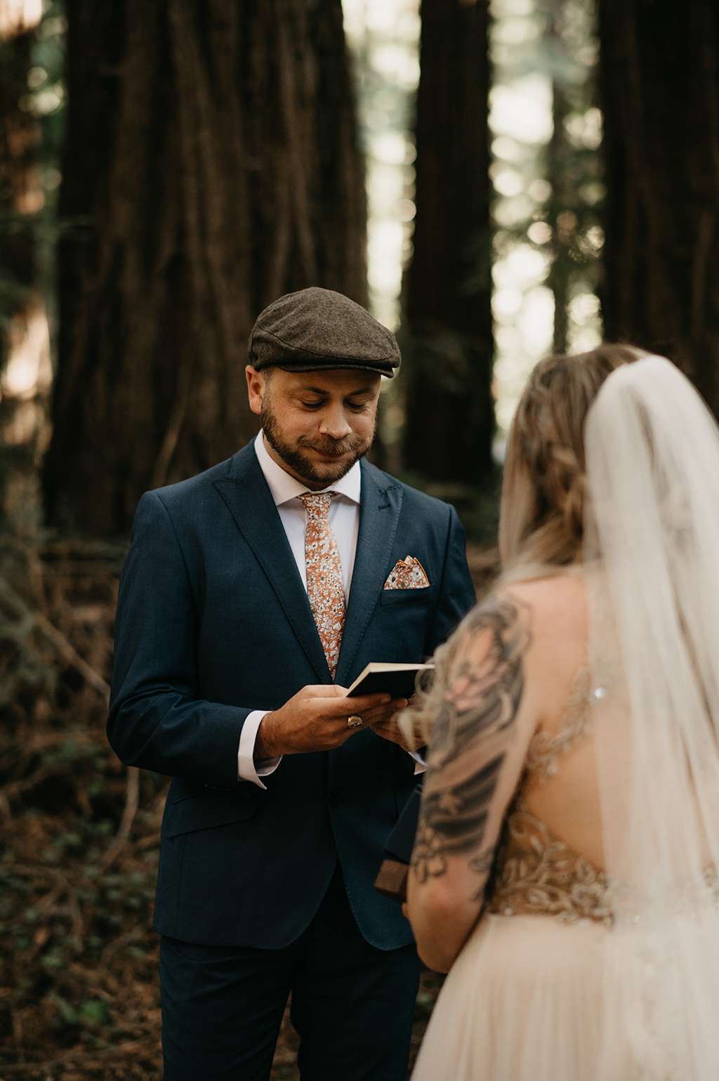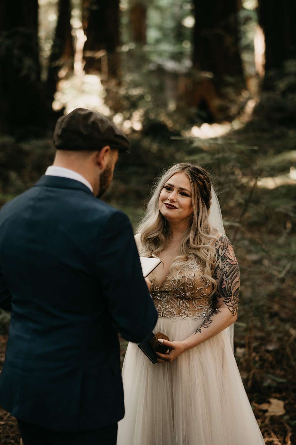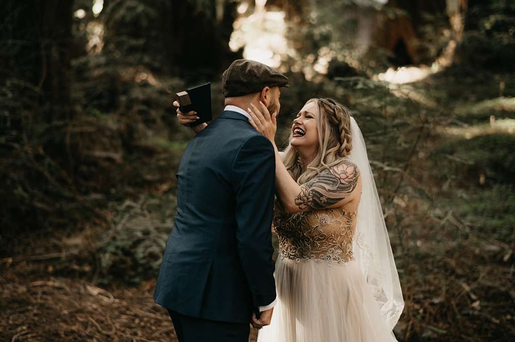 The couple waited until the last minute to write their vows. “We sat on opposite sides of a creek the morning of writing our lifelong promises to one another. We were both worried about doing our vows ‘correctly’ so we checked with each other on how much humour verses sentimental we were including. We both ended up ending our vows almost word for word of an old inside joke we have with each other.”
