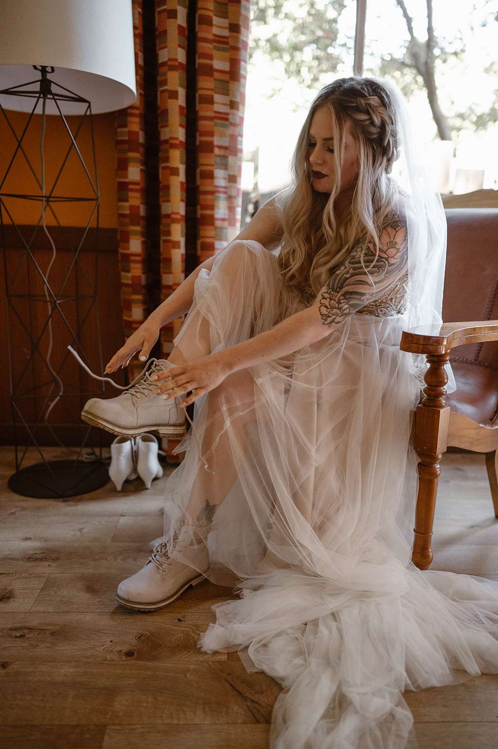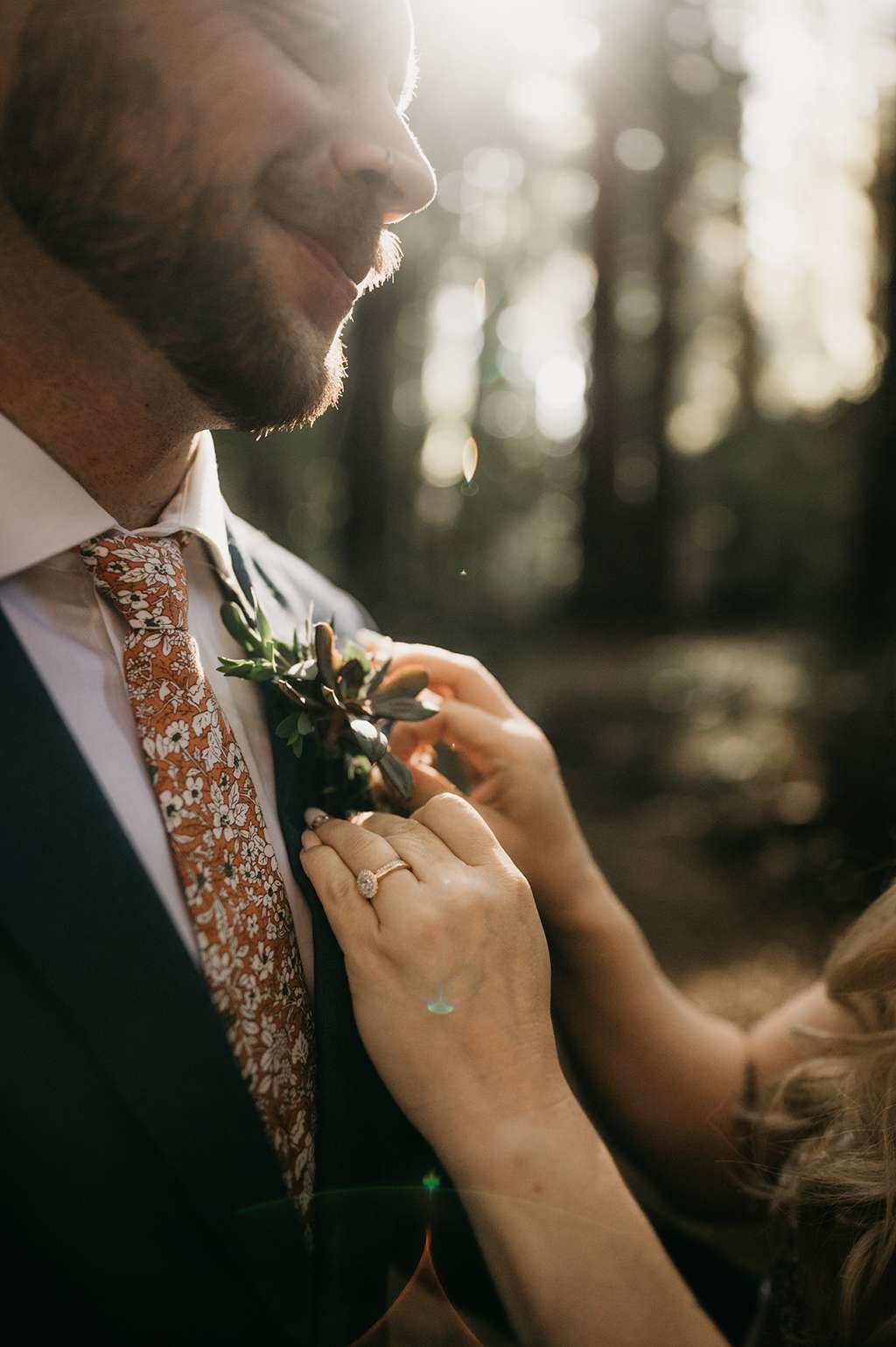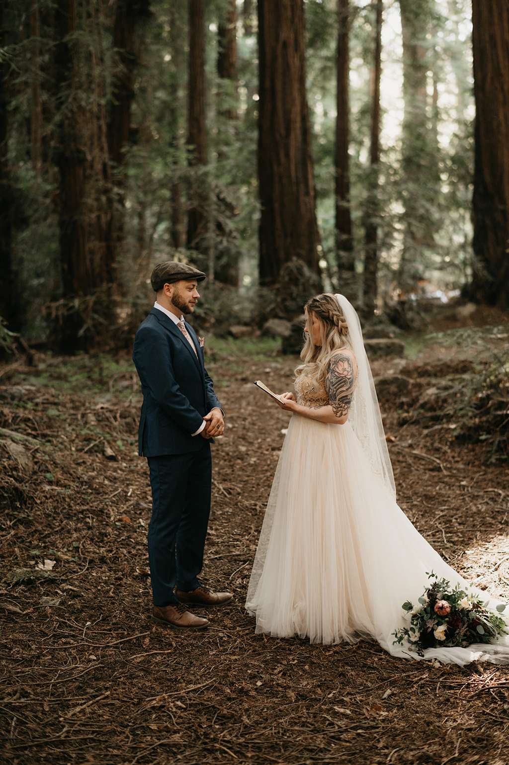 The couple waited until the last minute to write their vows. “We sat on opposite sides of a creek the morning of writing our lifelong promises to one another. We were both worried about doing our vows ‘correctly’ so we checked with each other on how much humour verses sentimental we were including. We both ended up ending our vows almost word for word of an old inside joke we have with each other.”