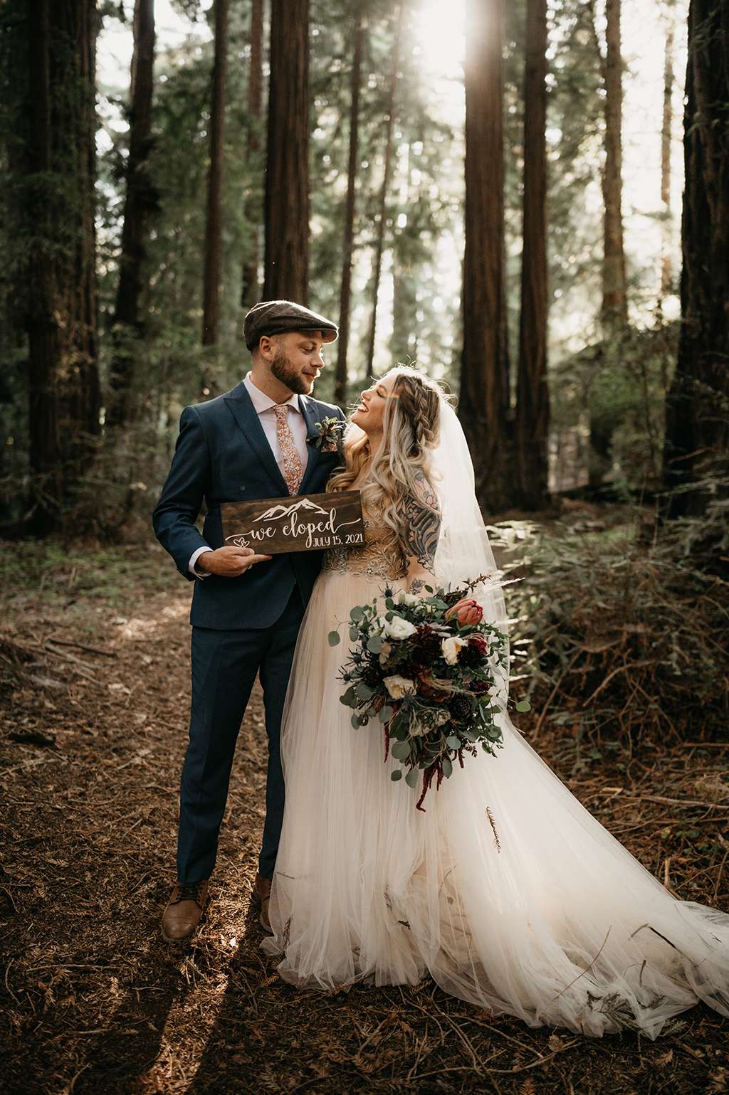 After officially making the decision to elope versus the traditional option of a wedding ceremony, the couple know that they needed to find a way to include family. They decided to host a Zoom meeting where family and friends could join them while they read their vows to one another and had family members write them letters. For this pair, this was the perfect workaround for doing things their way, but also including their families in their big day.