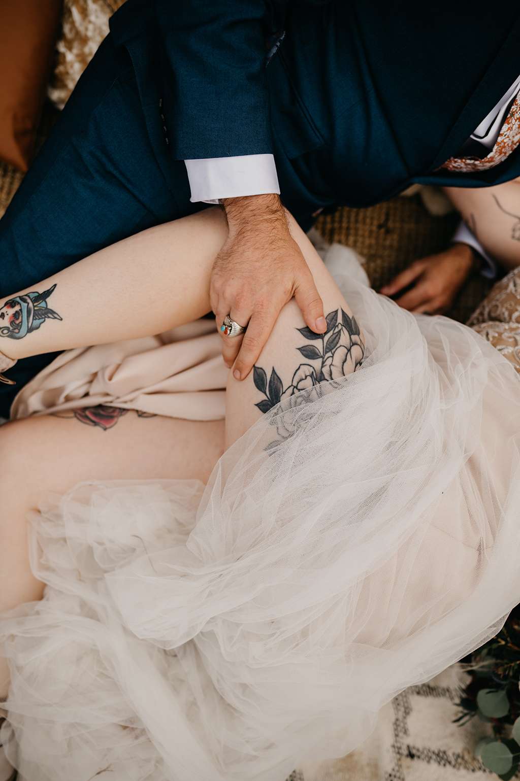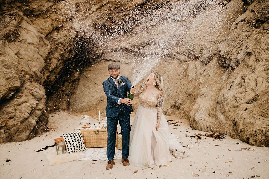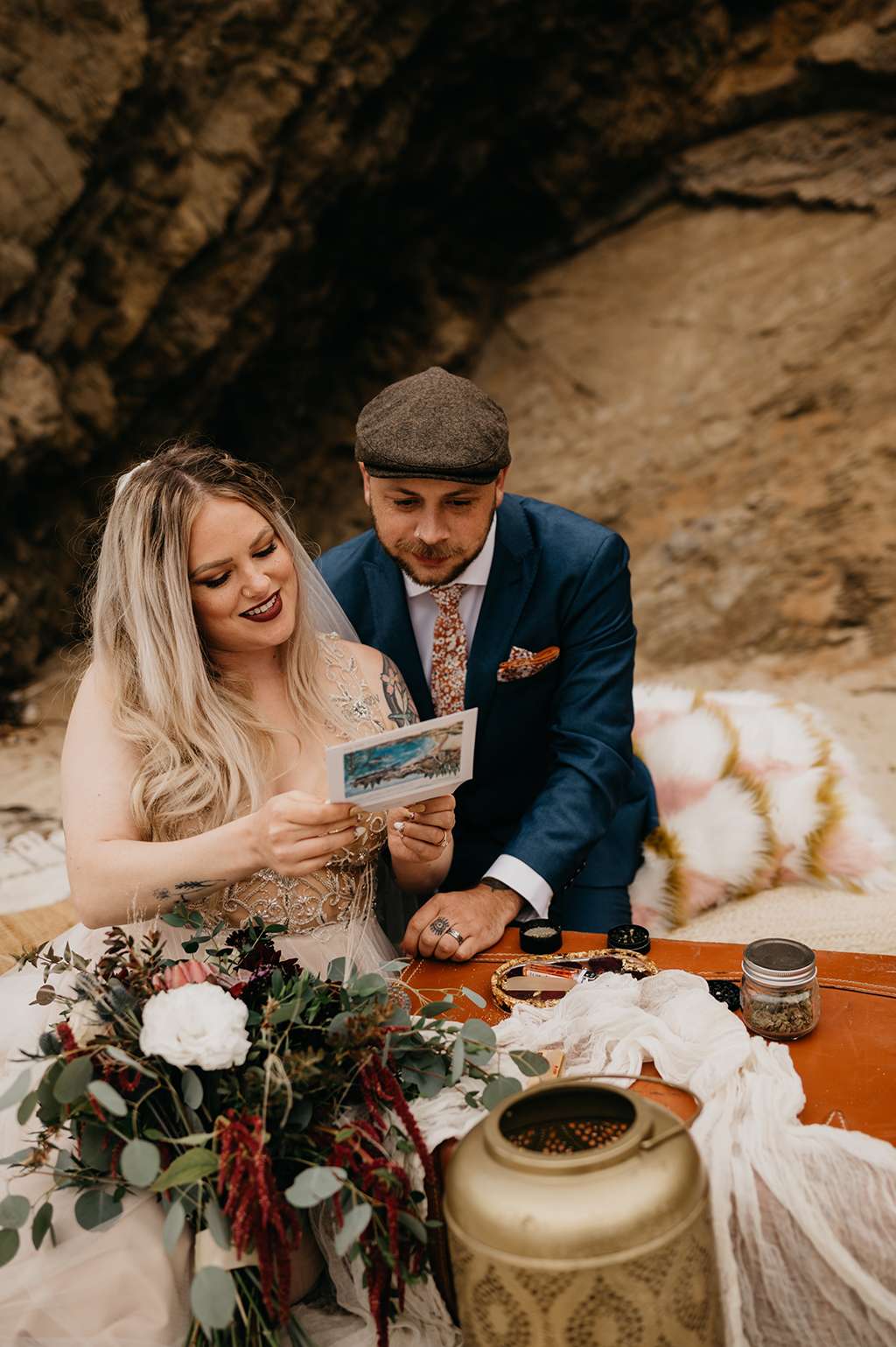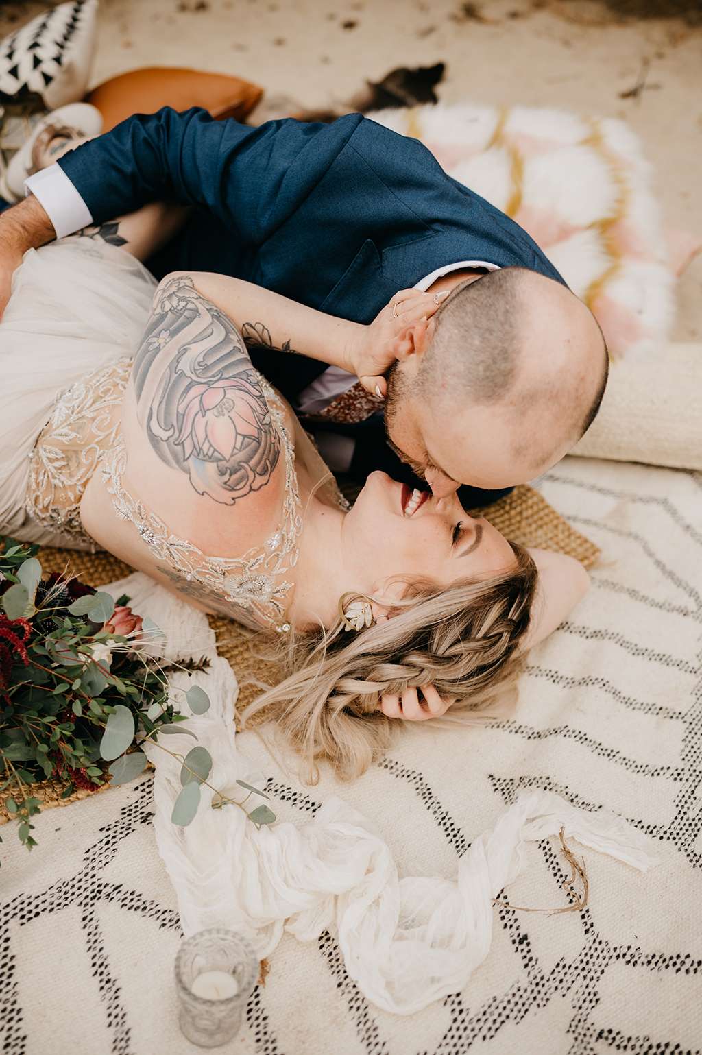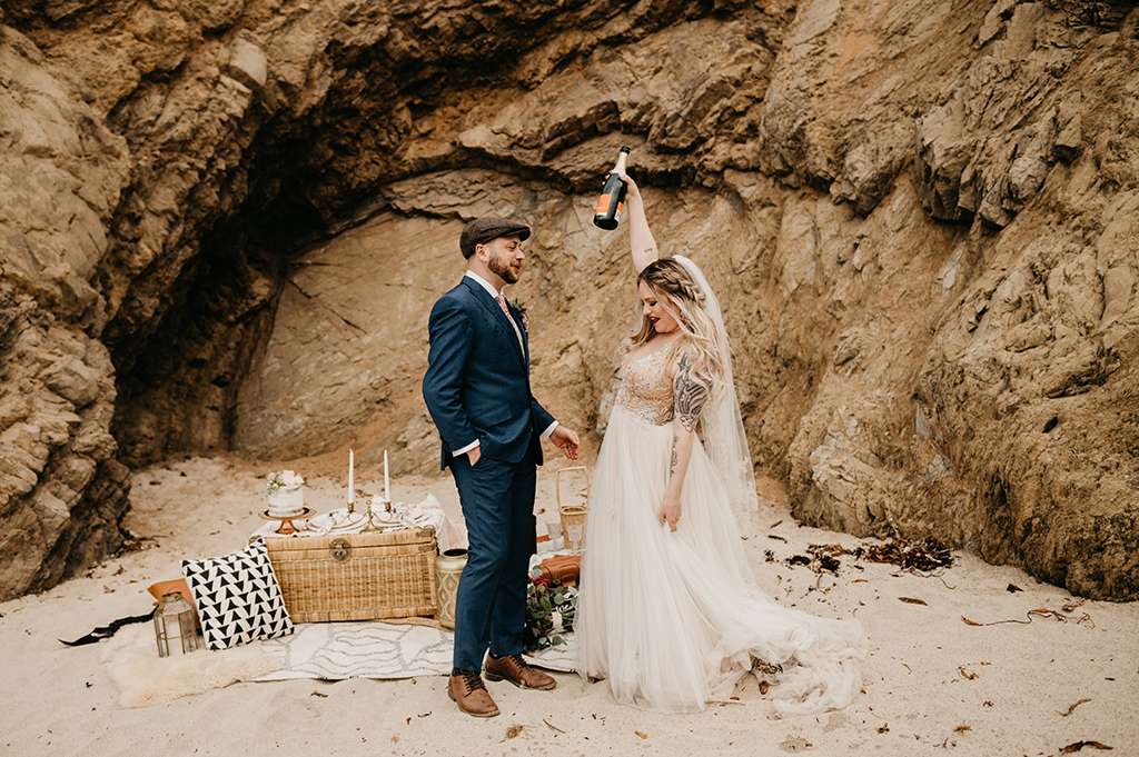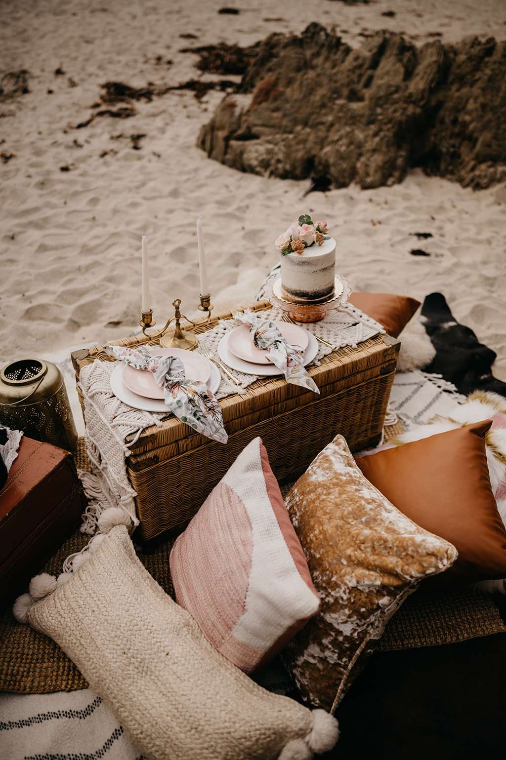 With a $10,000 budget, their photography was their biggest expense, but making sure their wedding day was captured in a way that meant they would be able to treasure the images for years and years to come was of paramount importance. Of course, being an elopement, they saved on location and catering; instead of having to host a reception they were free to enjoy a beautiful, private picnic setup on the beach by Forage Vintage Rentals.