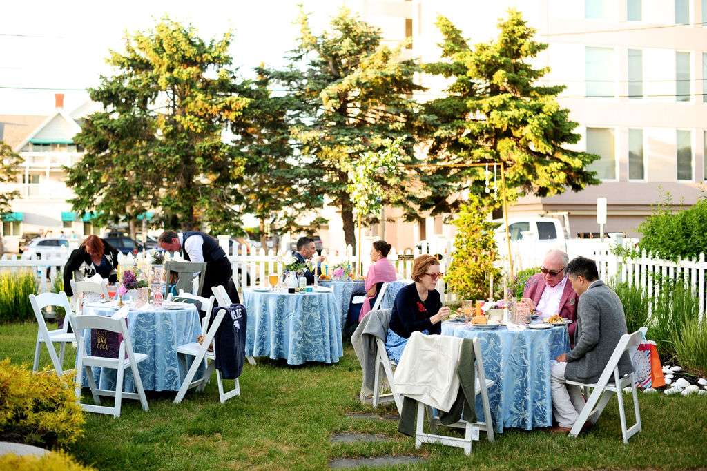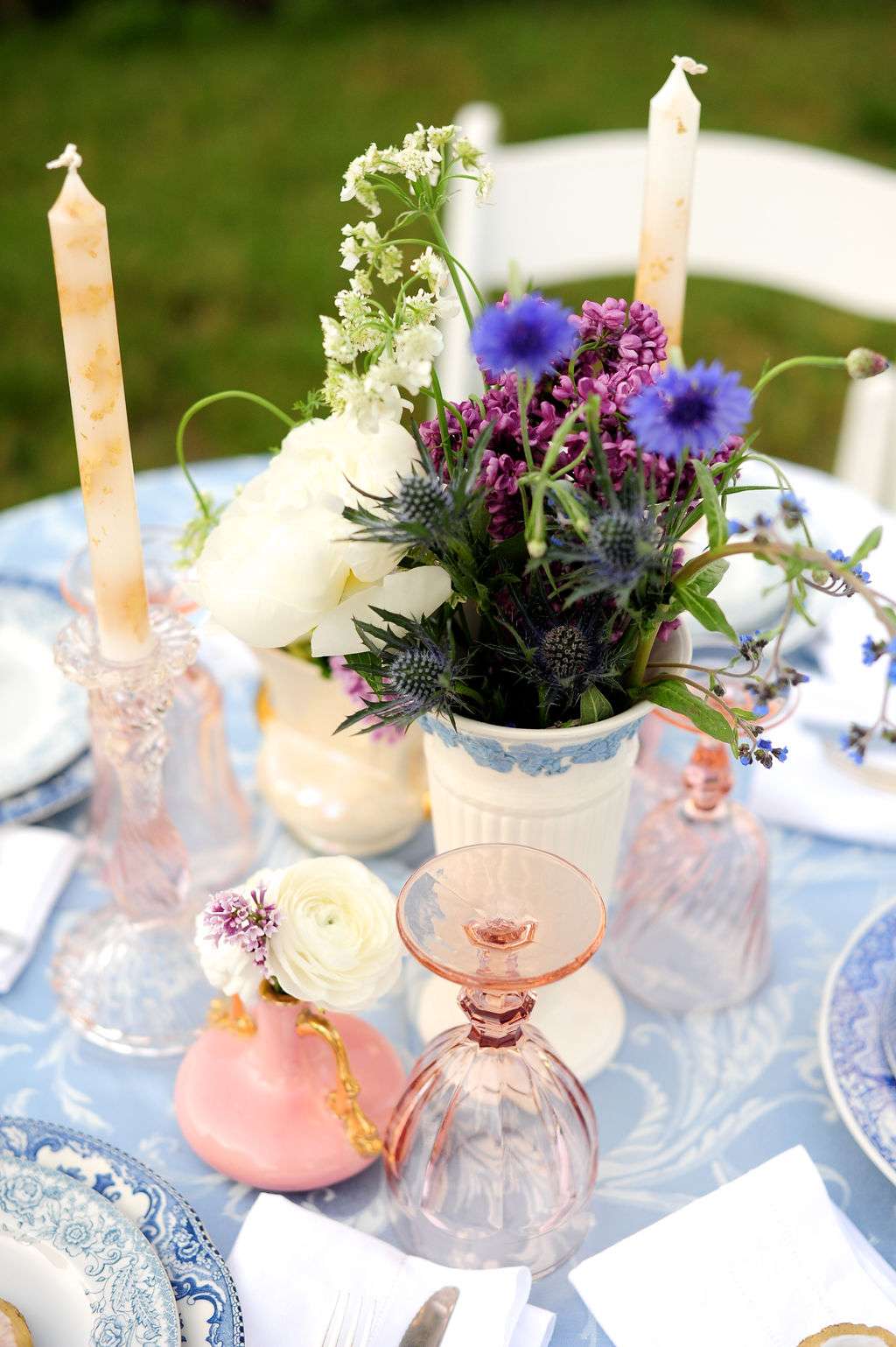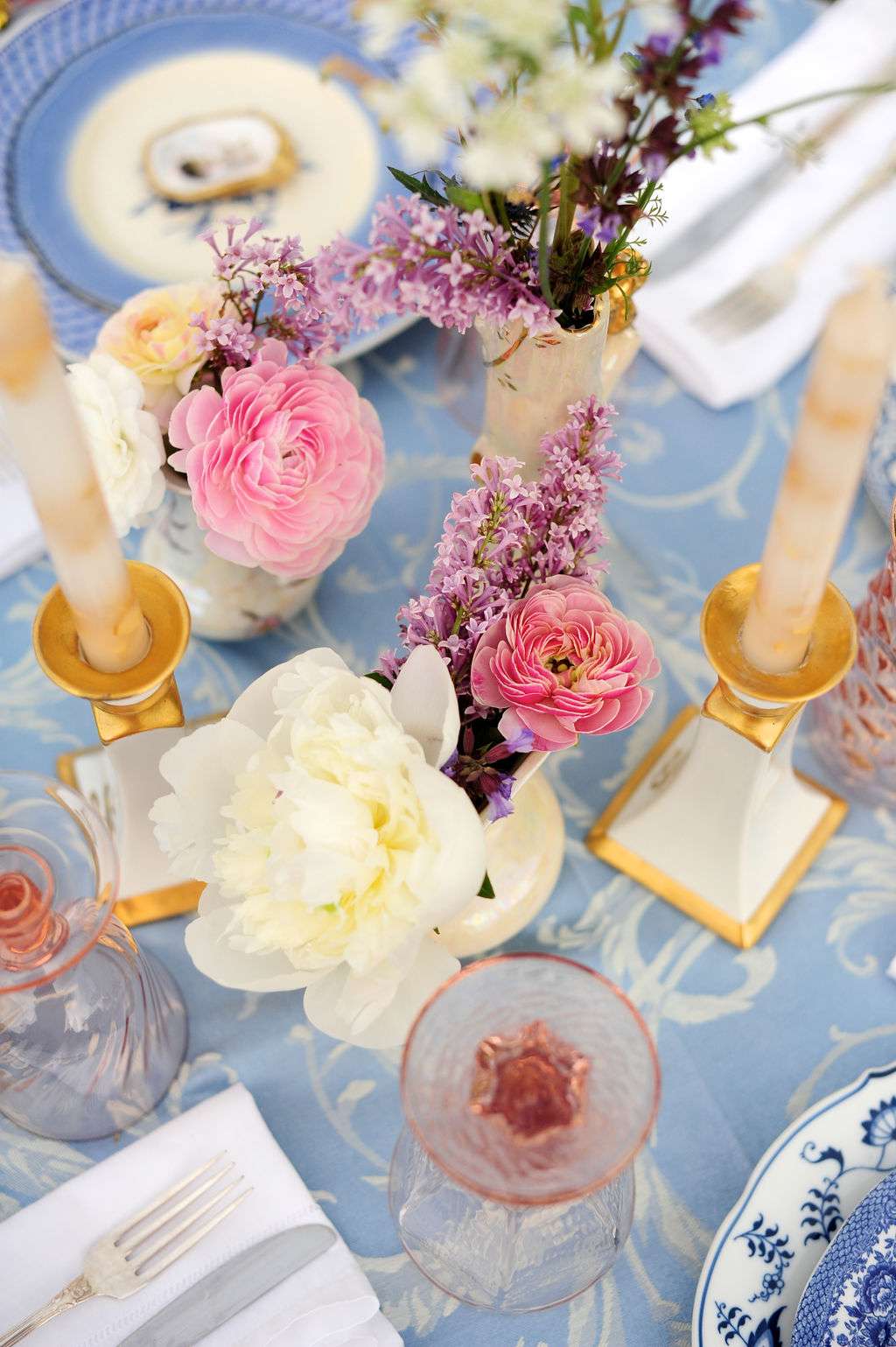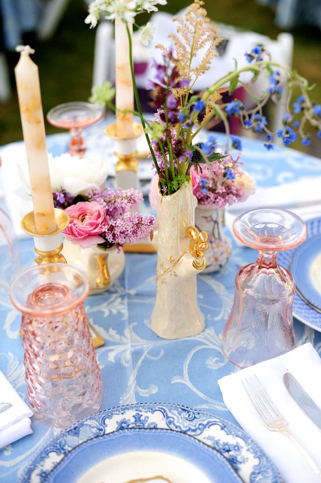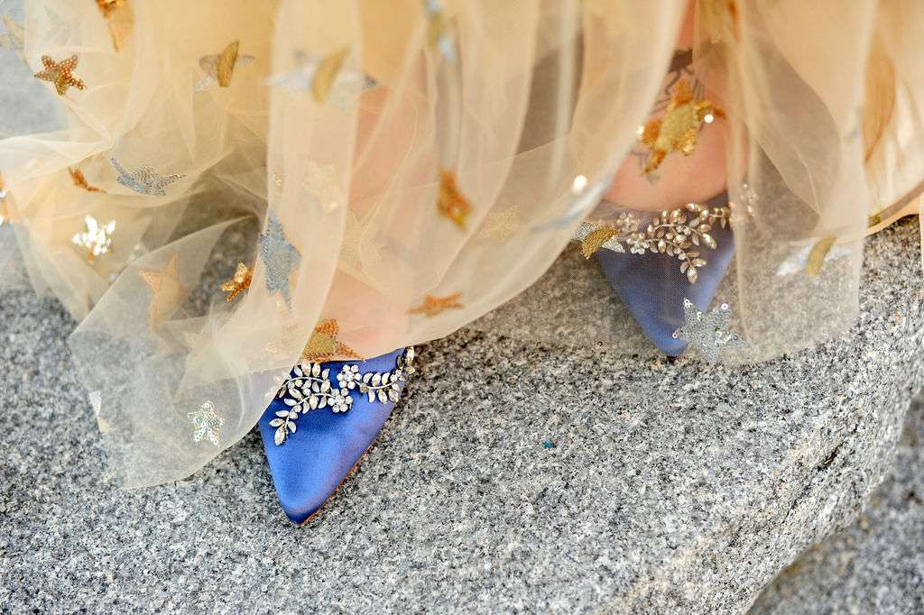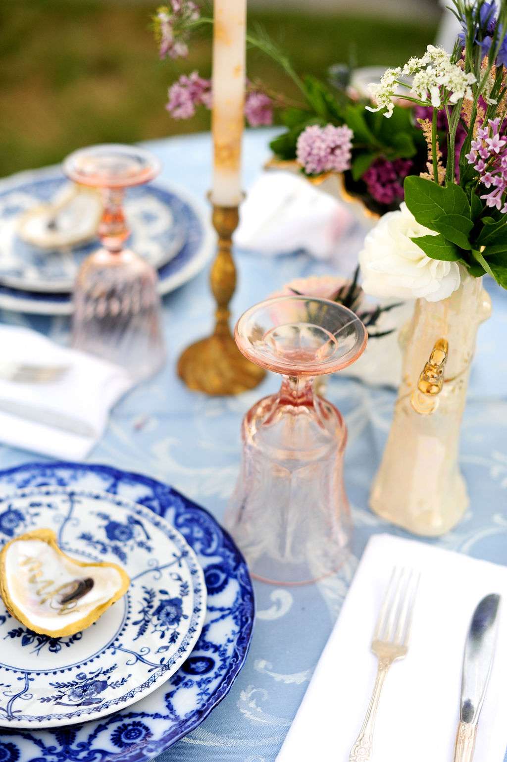 The bride has a deep fascination with French history and style but getting married in French chateau was not an option so they replicated the look in Maine. “The theme started as Marie Antoinette goes on a picnic, so pale pink, French blue and gold”, Emma wrote. “I collected French porcelain and planned out all the details. Over time we added in more details like cherry blossoms that symbolise hope for us, and we incorporated nautical touches with lobster cookies and oyster shell name cards.”