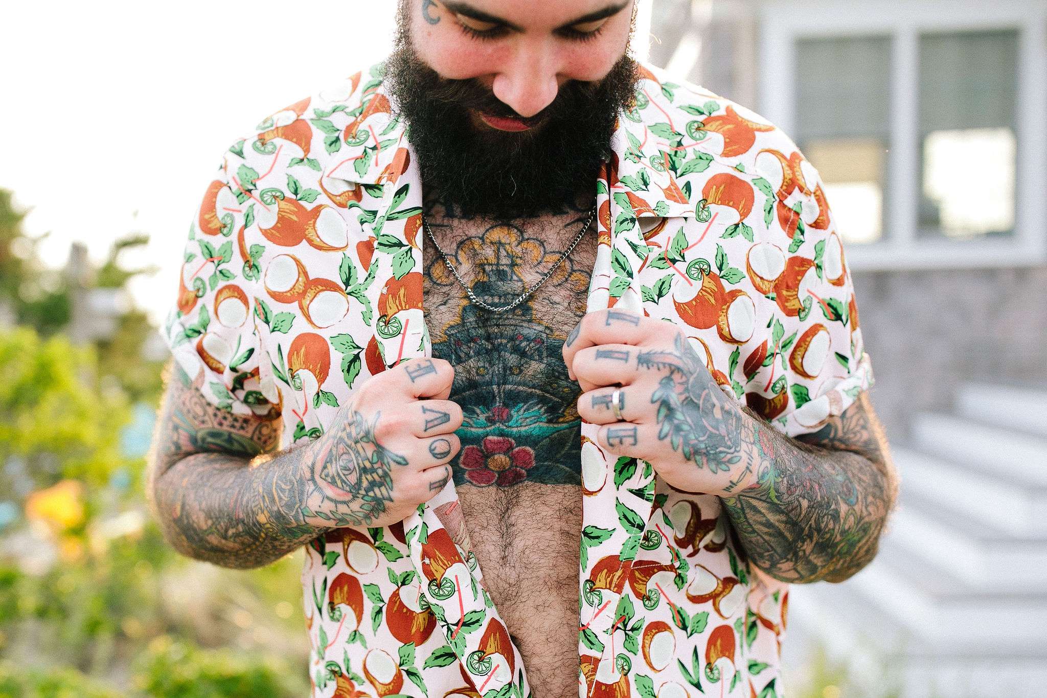 They had a budget of just $1,000 – basically the only thing they spent money on was catering for everyone. Their photography was a trade for Nick’s tattoo services, and Marissa’s dress a gift from her friend at Older Ghosts. Her jewellery was an vintage chain with a ring from each of their four grandmothers strung on it.