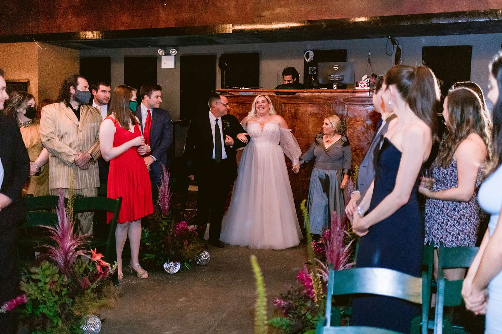 Jeremy and Jamie didn’t set out to have an alternative wedding, but it soon became clear to them when they started their planning journey that actually, they wanted to be able to customise pretty much everything. As they live and work in Brooklyn, it was important to the couple that they use local vendors and a local venue which they had an excuse to go back to afterwards. They settled on The Bell House, a multi-use event space which also hosts regular comedy shows and concerts that they love attending.