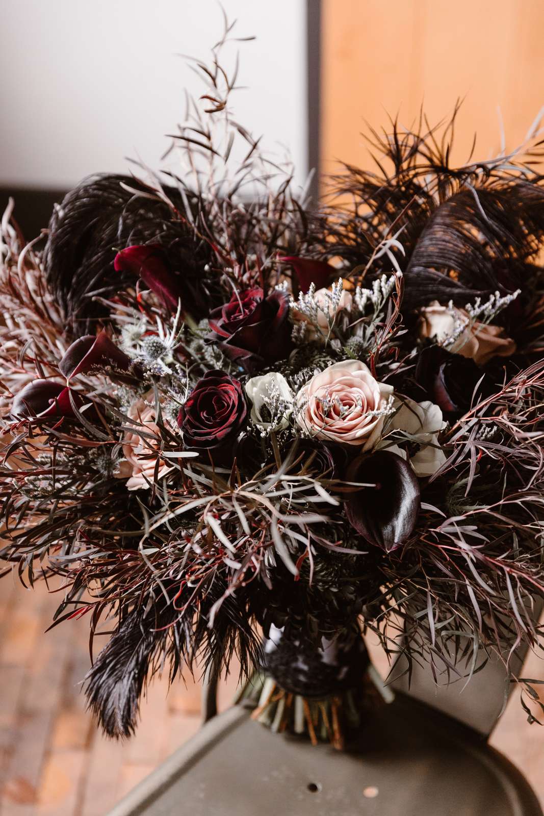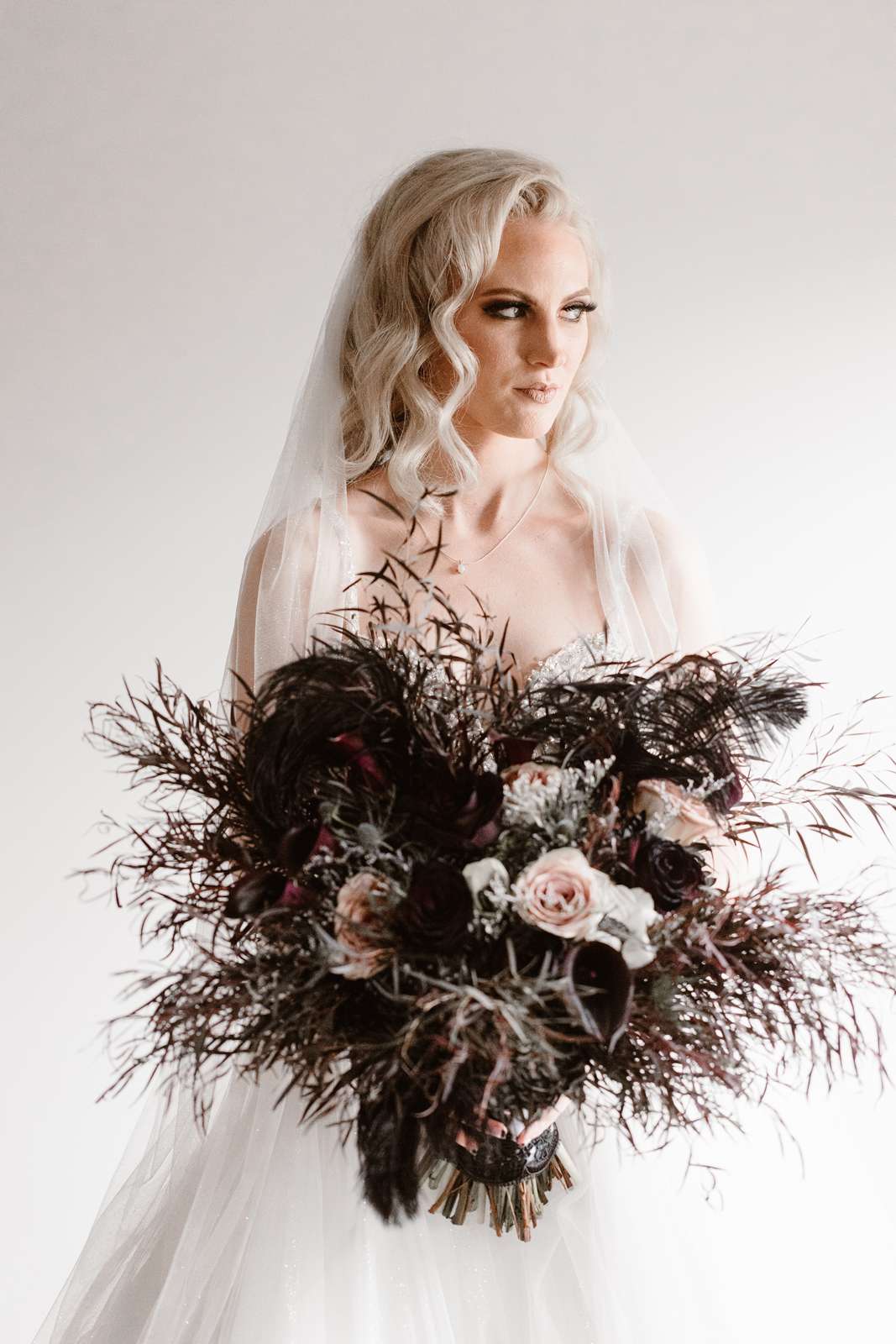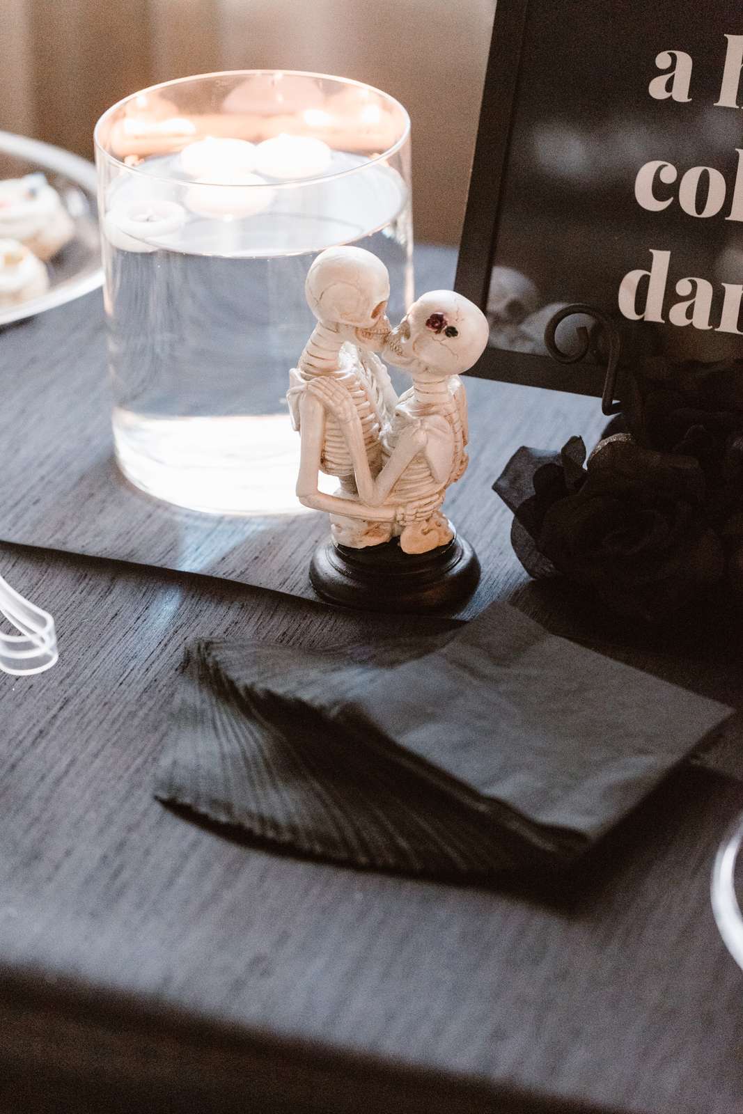 For Kirsten and Avery, every day is Halloween, so when it came to planning their March wedding day they always knew the wanted an alternative and macabre yet beautiful wedding. Specifically, they wanted to incorporate Kristen’s favourite movie, The Nightmare Before Christmas, as well as skeleton everything since Kristen loves forensic work. Kristen read and followed a lot of alternative wedding publications, such as Rock N Roll Bride, to find inspiration and plan their dream wedding.