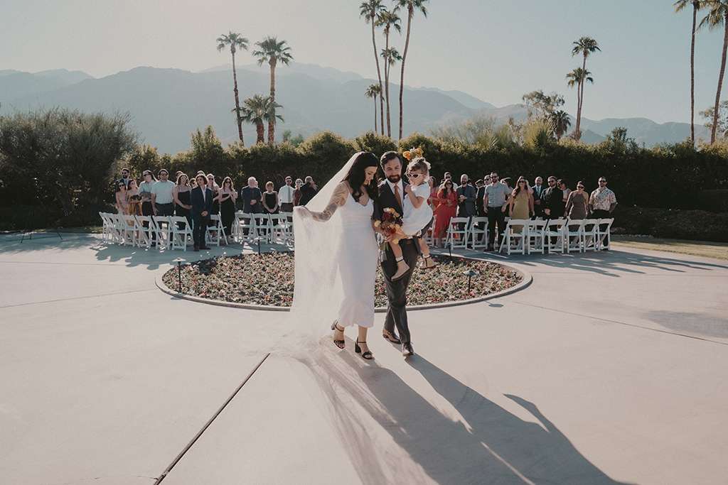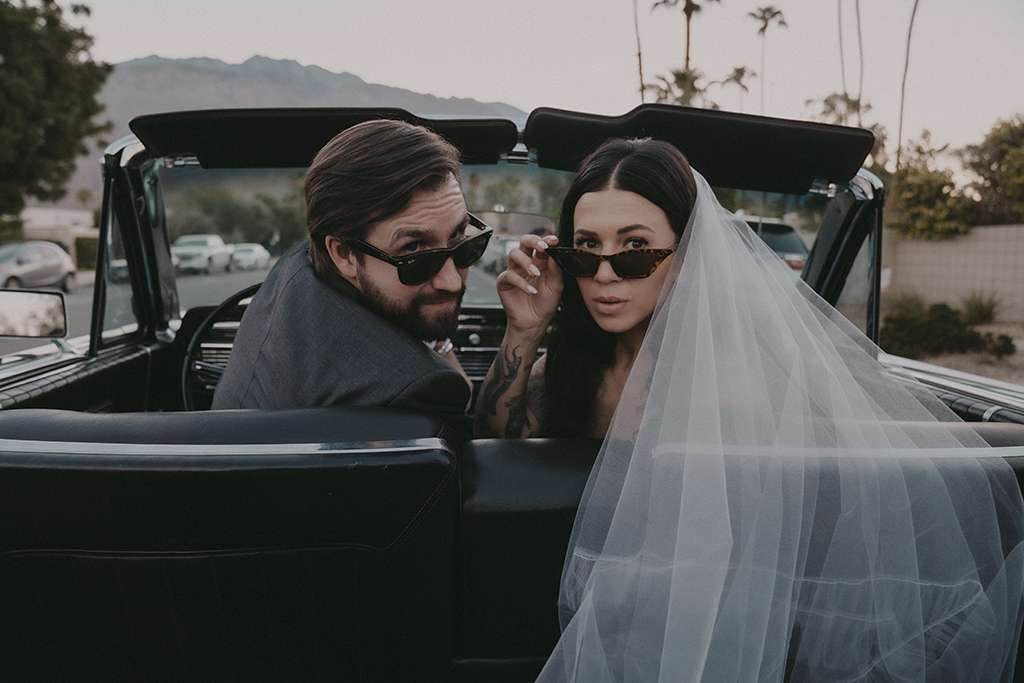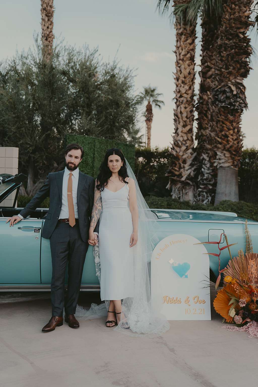 Inspired by the lavish New Year’s Party Frank Sinatra commissioned the estate to be built for in 1947, Nikki and Joe’s February wedding was a stylish and intimate wedding full of romantic and personal touches. “The inspiration was how much I love the laid back but quirky nature of Palm Springs,” Nikki began. “It’s a sort of party town like Las Vegas is but the style is a presence – it’s vibrant and natural at the same time, it’s fun but relaxed, retro but modern. We had a family by the time our wedding came, and we just wanted to throw an epic party and spoil our closest friends with an epic vacation and a party in a sick house. Overall it was a really lush retro house party that happened to have a wedding occur in it!”