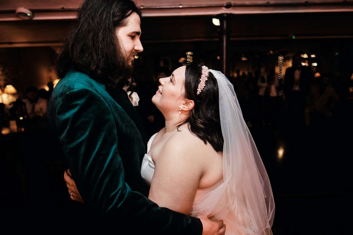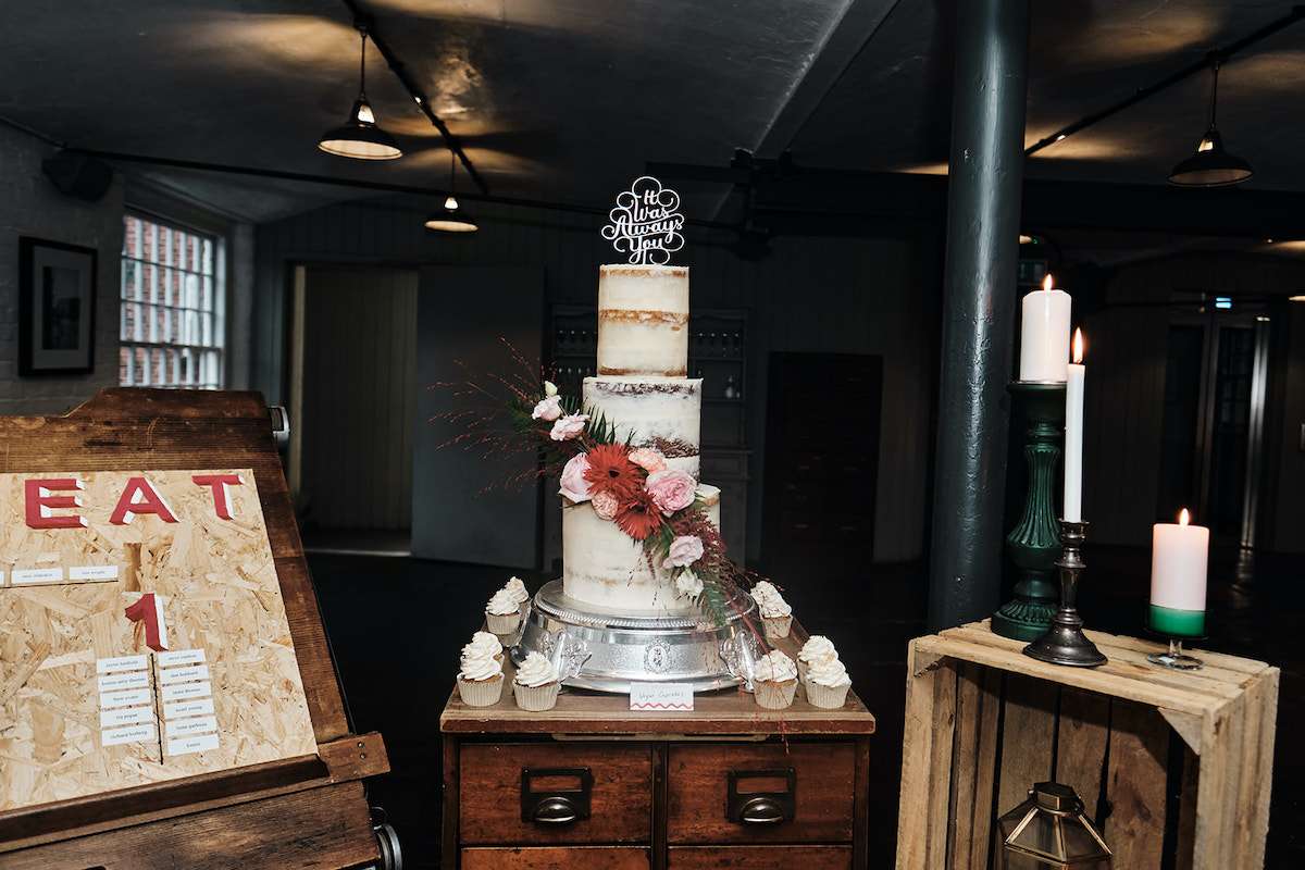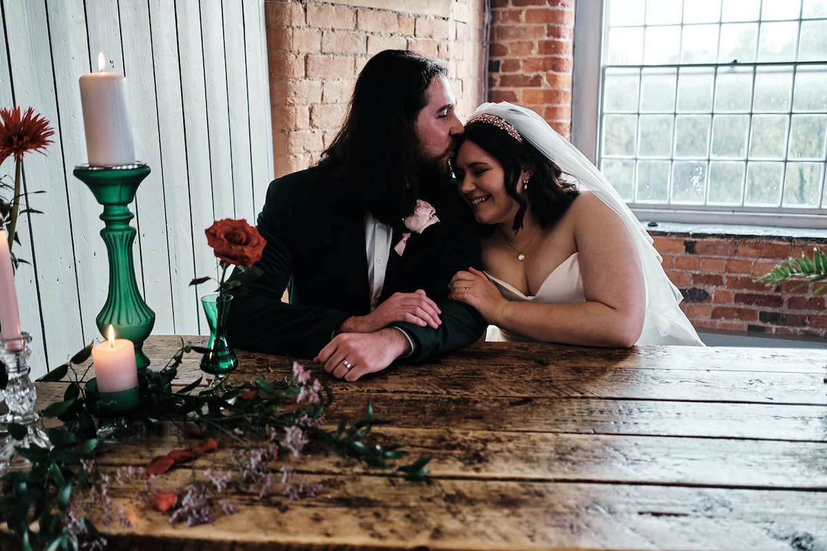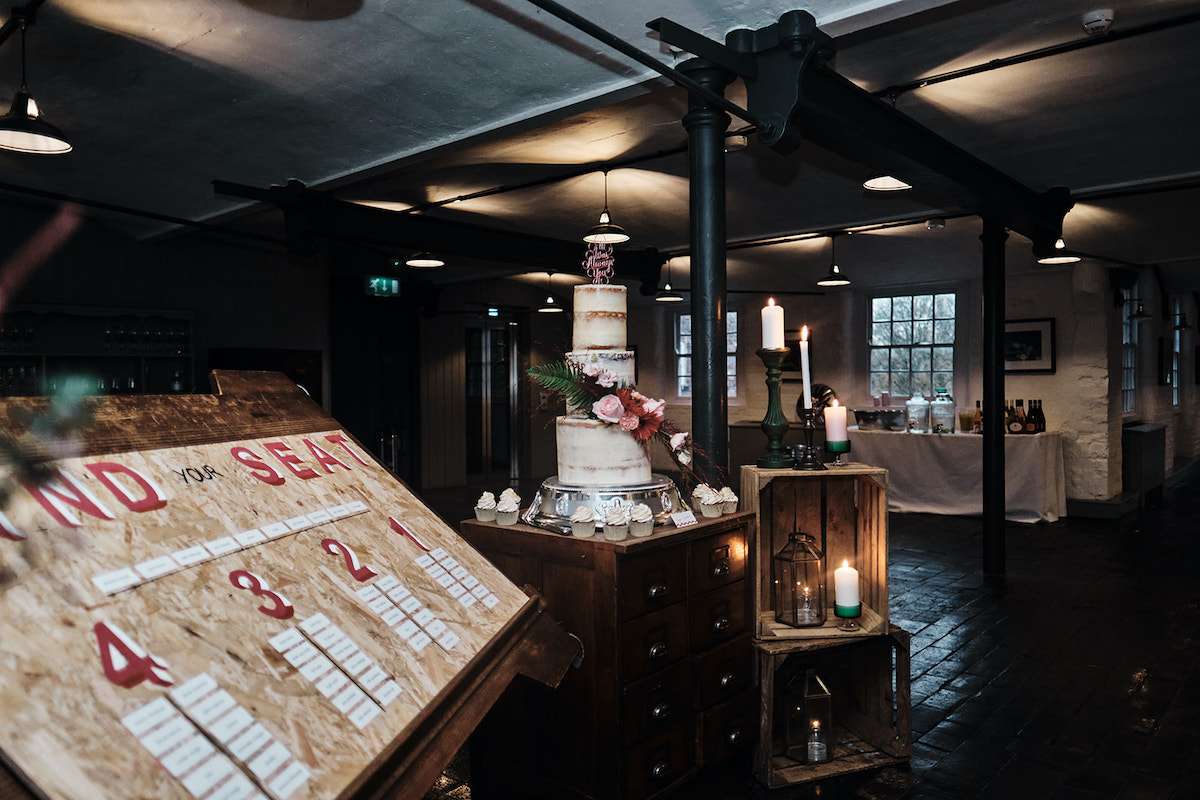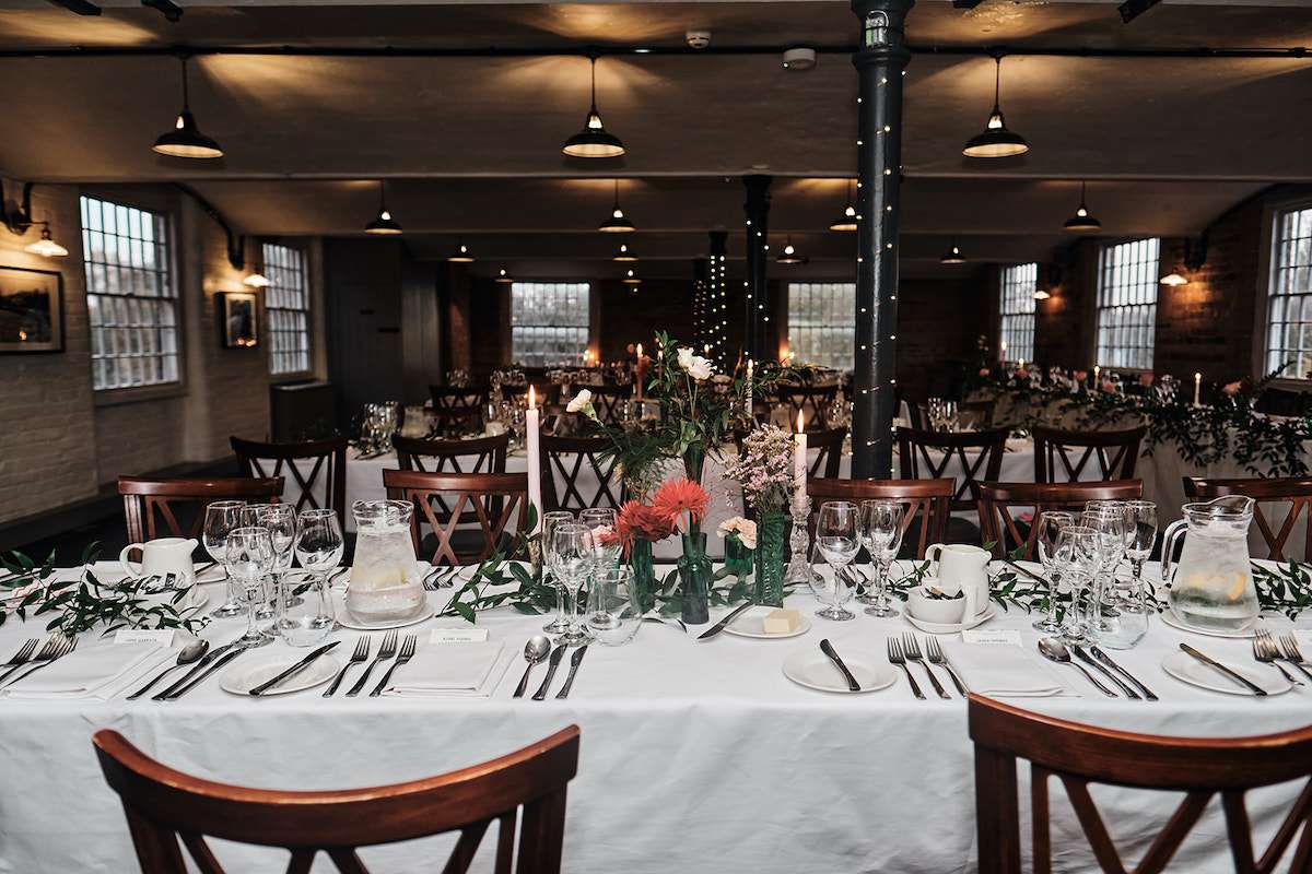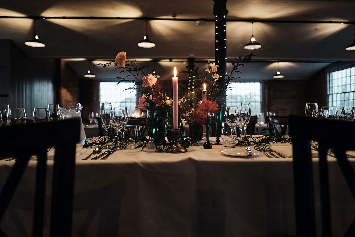 The couple subconsciously styled their day on their favourite pub, telling us, “When we looked back at the pictures, we realised the final look reminded us of one of our favourite pubs where we spent most of our free time when we first lived together – so I guess the theme was subconsciously inspired by that! The venue lent itself really well to a retro/industrial theme.”