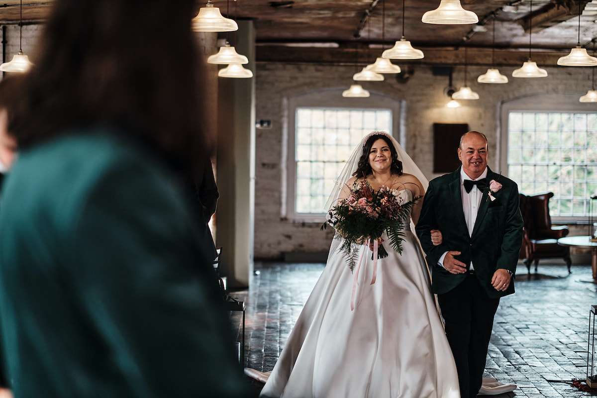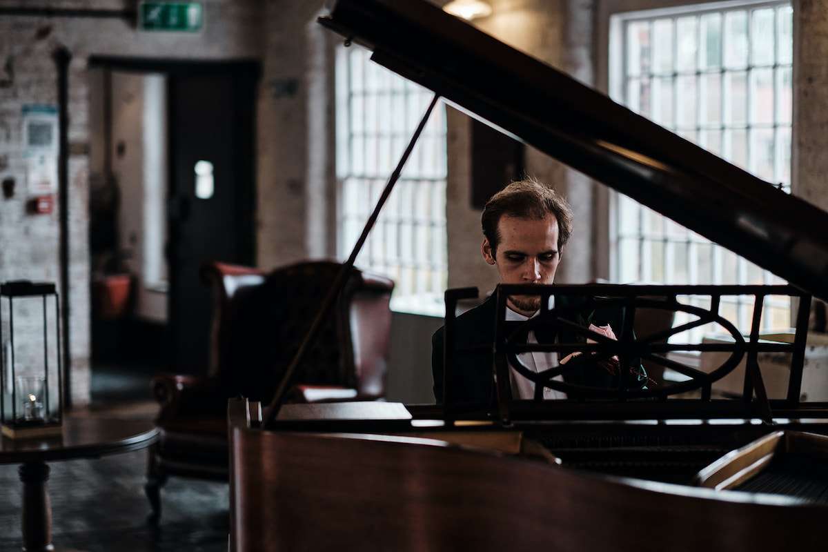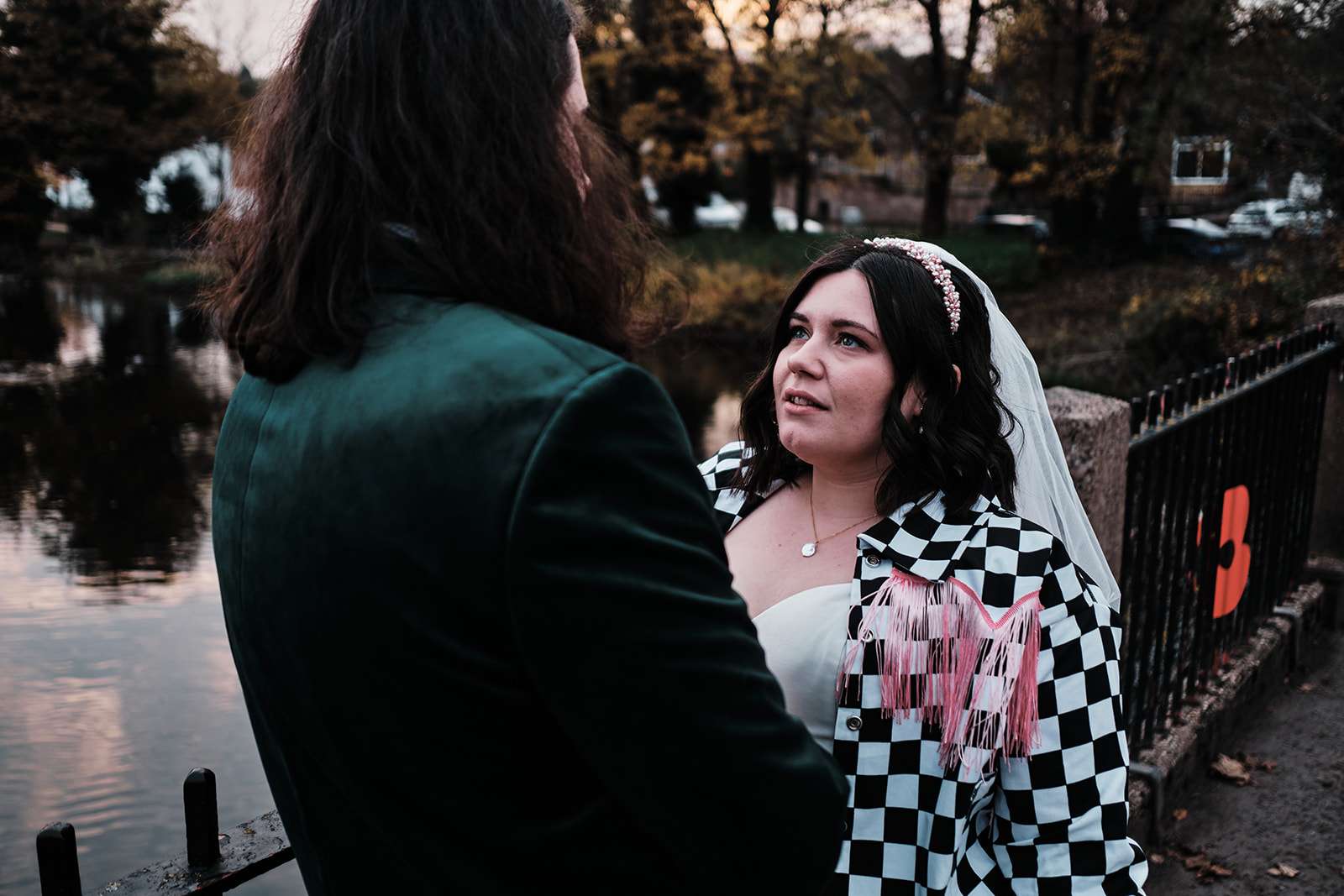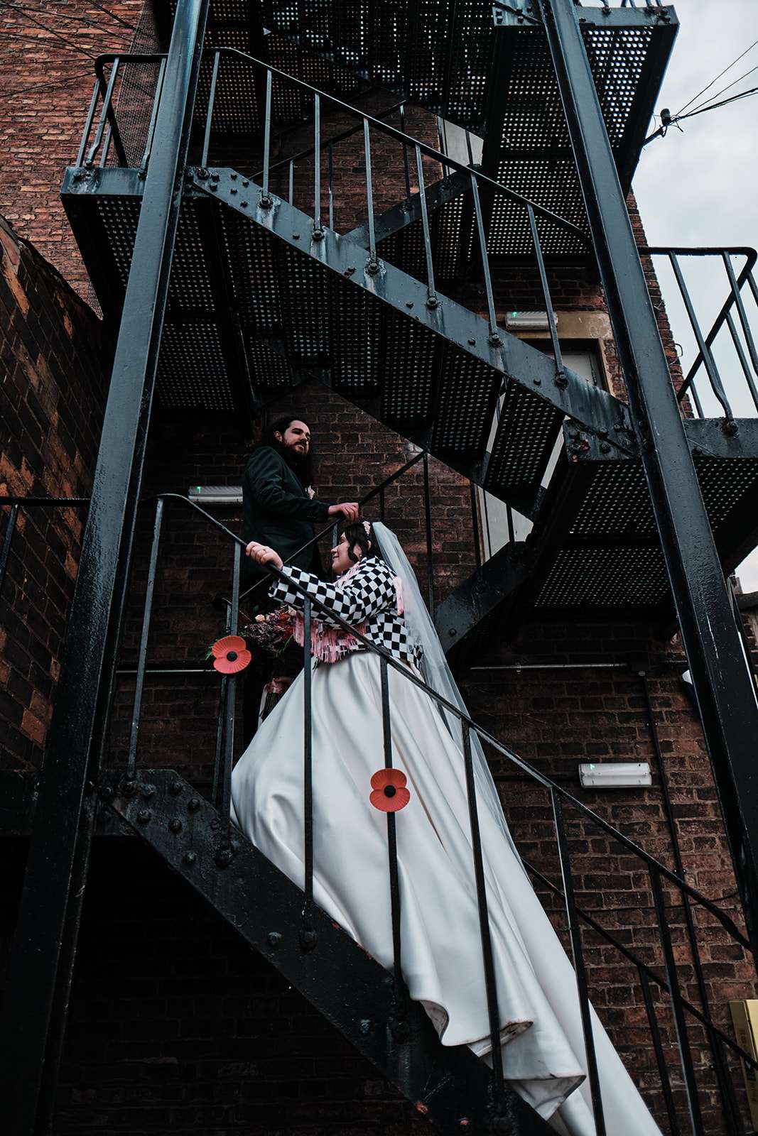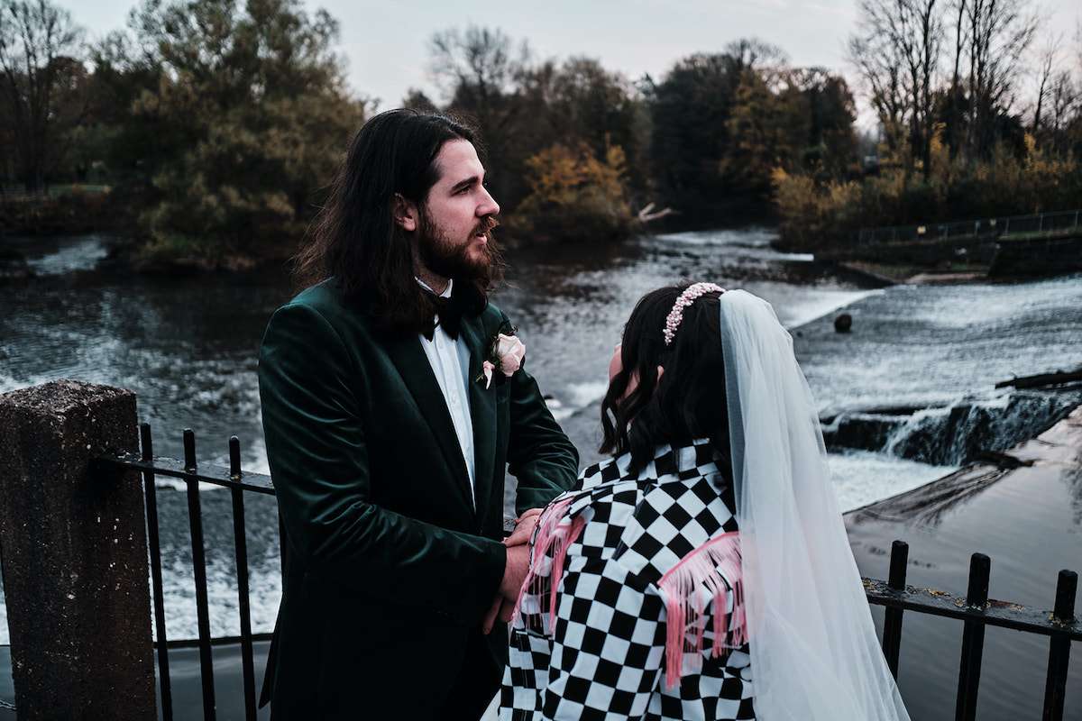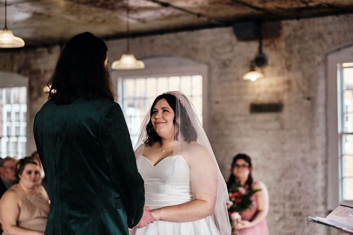 The couple subconsciously styled their day on their favourite pub, telling us, “When we looked back at the pictures, we realised the final look reminded us of one of our favourite pubs where we spent most of our free time when we first lived together – so I guess the theme was subconsciously inspired by that! The venue lent itself really well to a retro/industrial theme.”