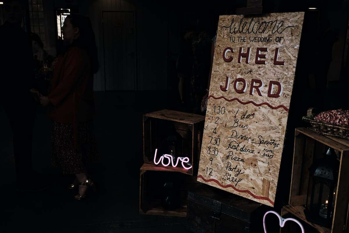 Chelsea and Jordan also added a lot of DIY elements, helping save on their £15,000 budget. Using stencils, paint tester pots and spray paint, Chelsea added some creativity to the day, with a welcome sign, table plan and photobooth sign, as well as a steel bin for beers.