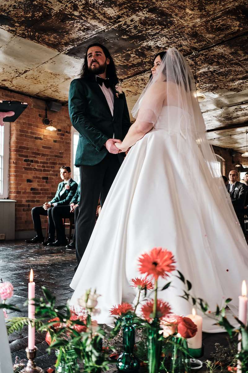 Meeting at a house party at the age of 16, Jordan and Chelsea celebrated their tenth anniversary just a few months before they got married. They wanted to be themselves as much as possible at their wedding, so filled their venue with everything they loved, from the bright pink flowers to the neon signs and vintage vases, and just went with a totally relaxed day.