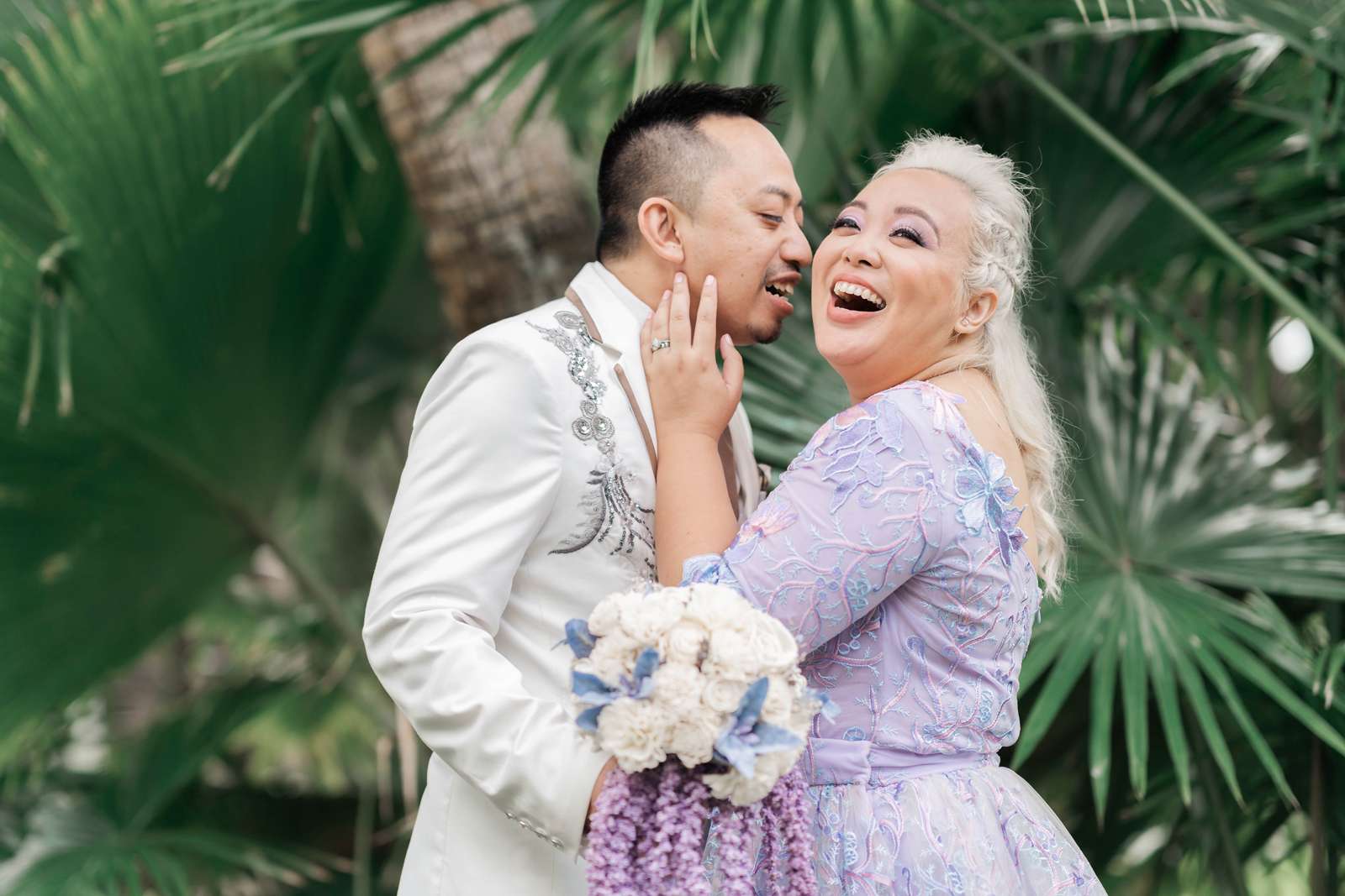 There were so many highlights of the day for this pair, but having their whole family and closest friends with the in Hawaii for the a four-day weekend was really special. “Little moments like the mums and aunts enjoying the amazing kitchen, our vendors enjoying the food we’d prepared, all the laughter and meals shared, everyone enjoying the amenities – it added to the ambiance we wanted to achieve.”