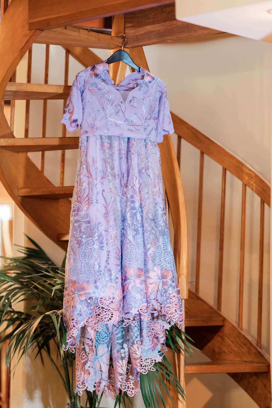 The bride was inspired by Cinderella’s ball gown for her self-made lilac dress which she wore with glitter Dr Marten’s, and the groom wanted to wear something unique too. Originally looking for a cape, he found his floral patterned, sequin jacket on AliExpress. Ten continues, “Jesse’s jacket set the bar for the fashion and styling of the whole affair. He didn’t want a traditional tux, so he started browsing for something unique online almost as soon as we got engaged. He found a dinner jacket with sequin details that he really loved. Though there were some concerns if it would look the same in real life, he decided to just get it because it was only $50, and he would have enough time to get something else if it was no good when it arrived. When it showed up a few months later it was exactly what he was looking for.”