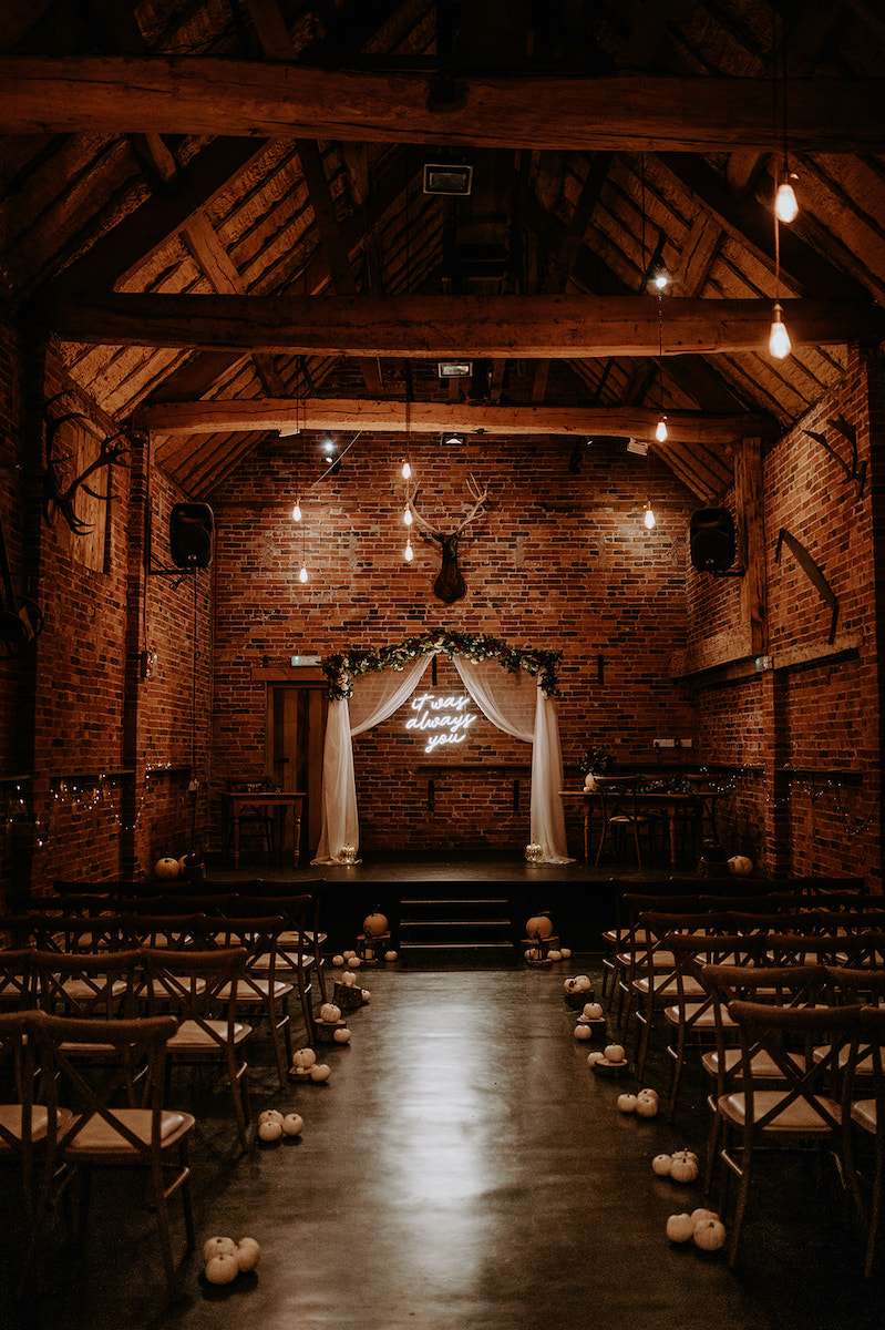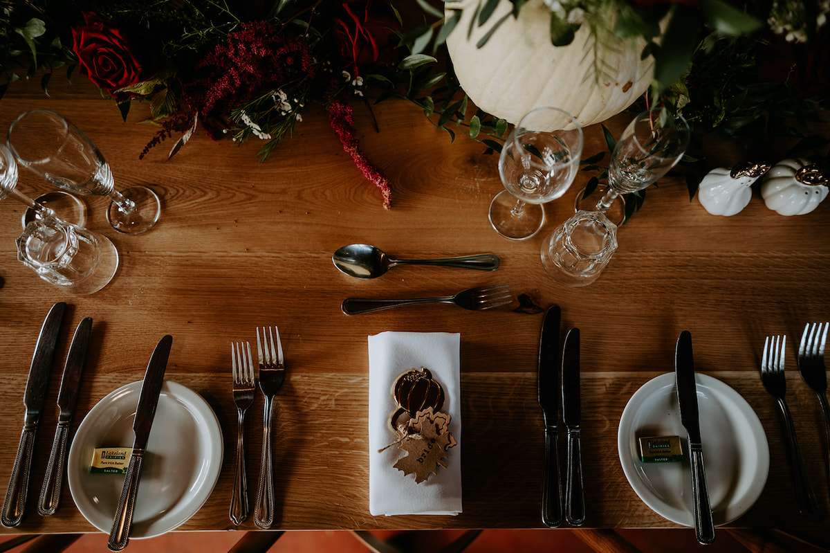 Just because you’re a huge fan of something, doesn’t mean it has to take centre stage, and Kerrie blended subtle nods to her passions throughout the day. She told us, “I didn’t want to overdo it but I just wanted to add subtle touches here and there throughout our theme. White pumpkins were our centrepieces for the tables and were scattered all over the venue providing hints of Cinderella, Halloween and one of my favourite films; The Nightmare Before Christmas. There must have been over 100 pumpkins overall that were collected during the lead up to our wedding!”