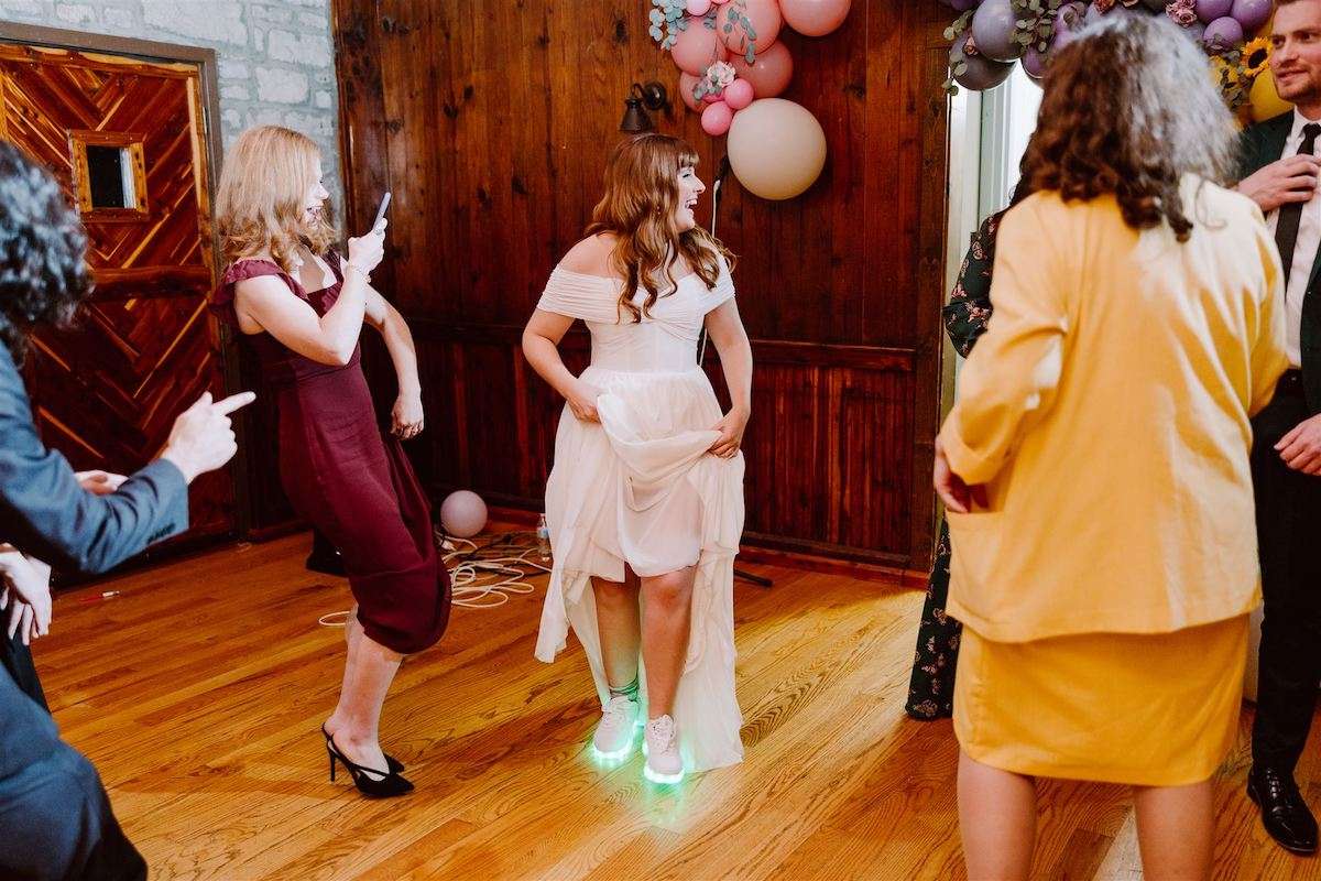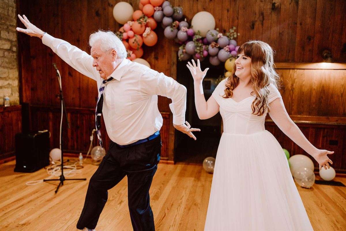 In fact, Maddie’s dad was the officiant, witnessing the couple’s vows and reading a poem. He even took to the dancefloor later on with his daughter, both sporting light up sneakers and recreating the ‘Tequila’ dance from ‘Pee Wee’s Big Adventure’!