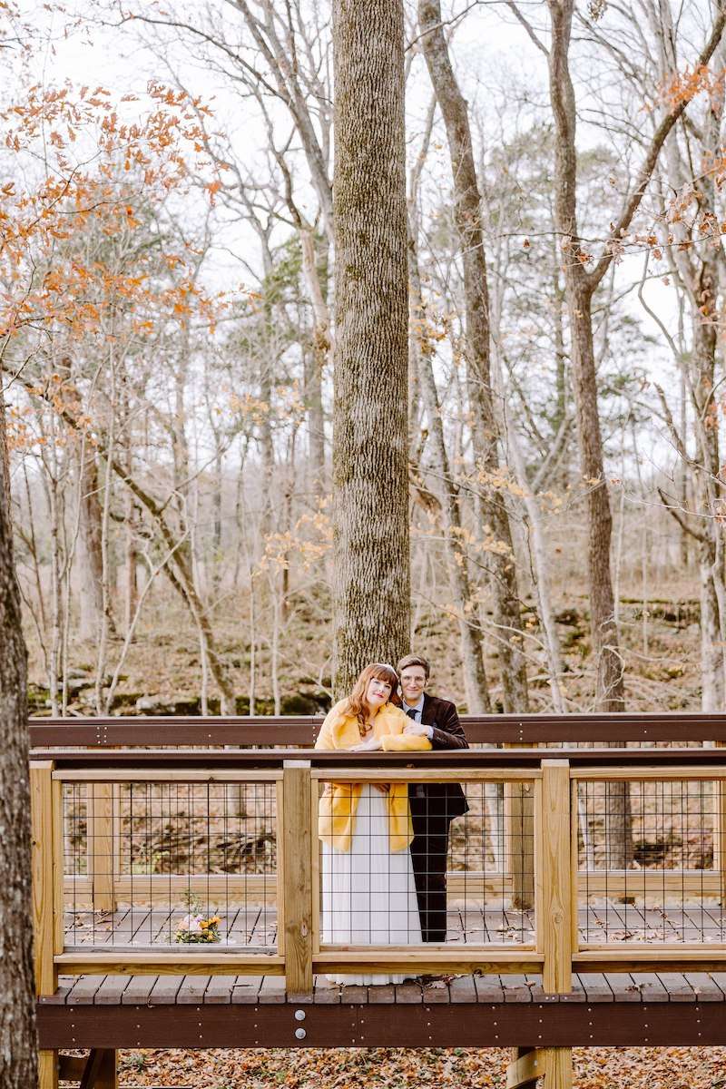 Taking place just a few days after their tenth anniversary, Madeleine and Paul escaped to Cedar Forest Lodge at Cedars of Lebanon State Park in Tennessee with their friends and family. They wanted the day to be a celebration not only of their new marriage, but of their lives together so far. With pizza, balloons and plenty of trees, they spent the day doing exactly what they wanted.