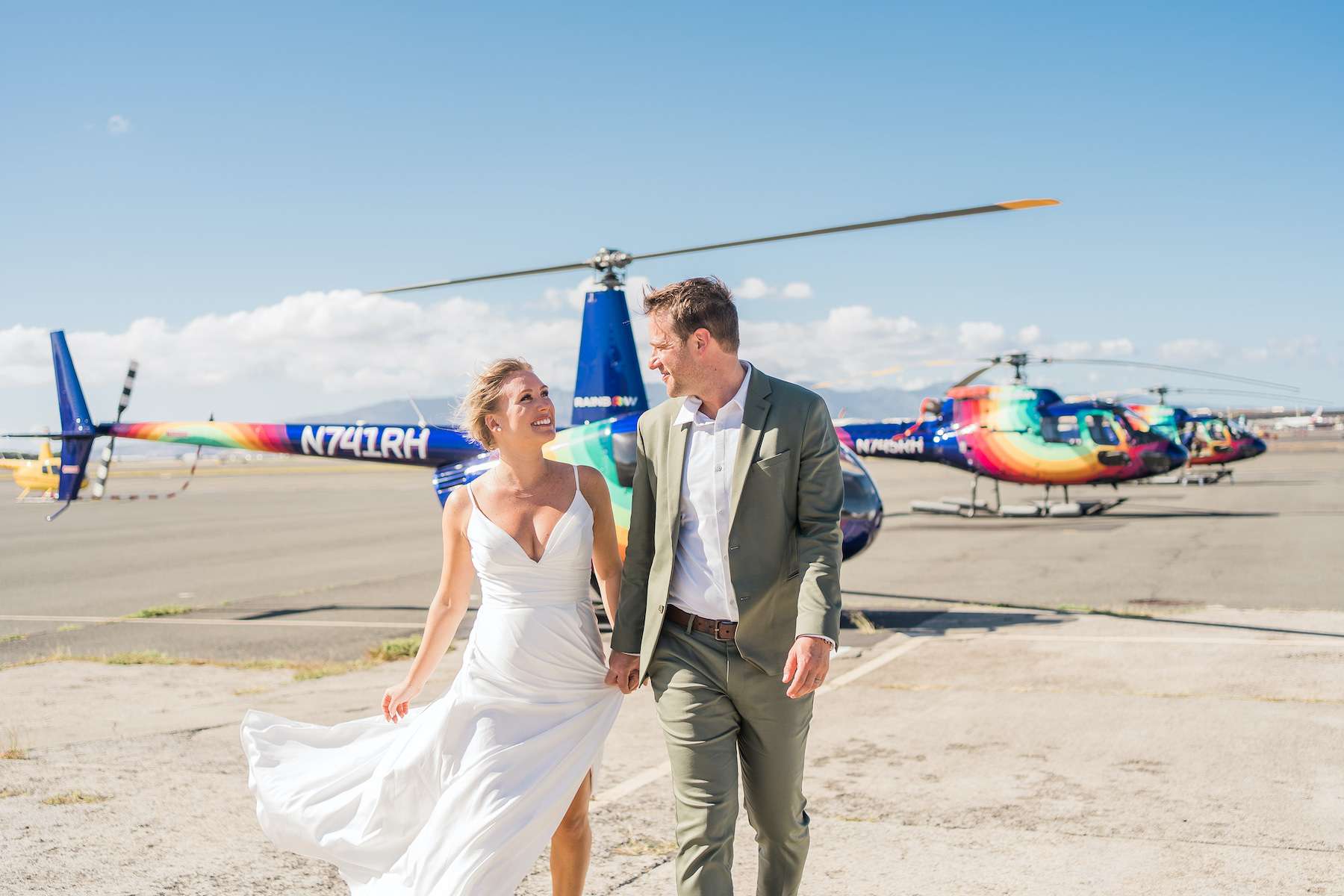 With Covid scuppering their wedding plans, Andrea and Jason just weren’t feeling the ‘big-wedding-day’ vibes. They thought a helicopter ride and a champagne toast would be a unique way to adventure together and celebrate. With no friends or family present, they still found a way of incorporating them into their day.