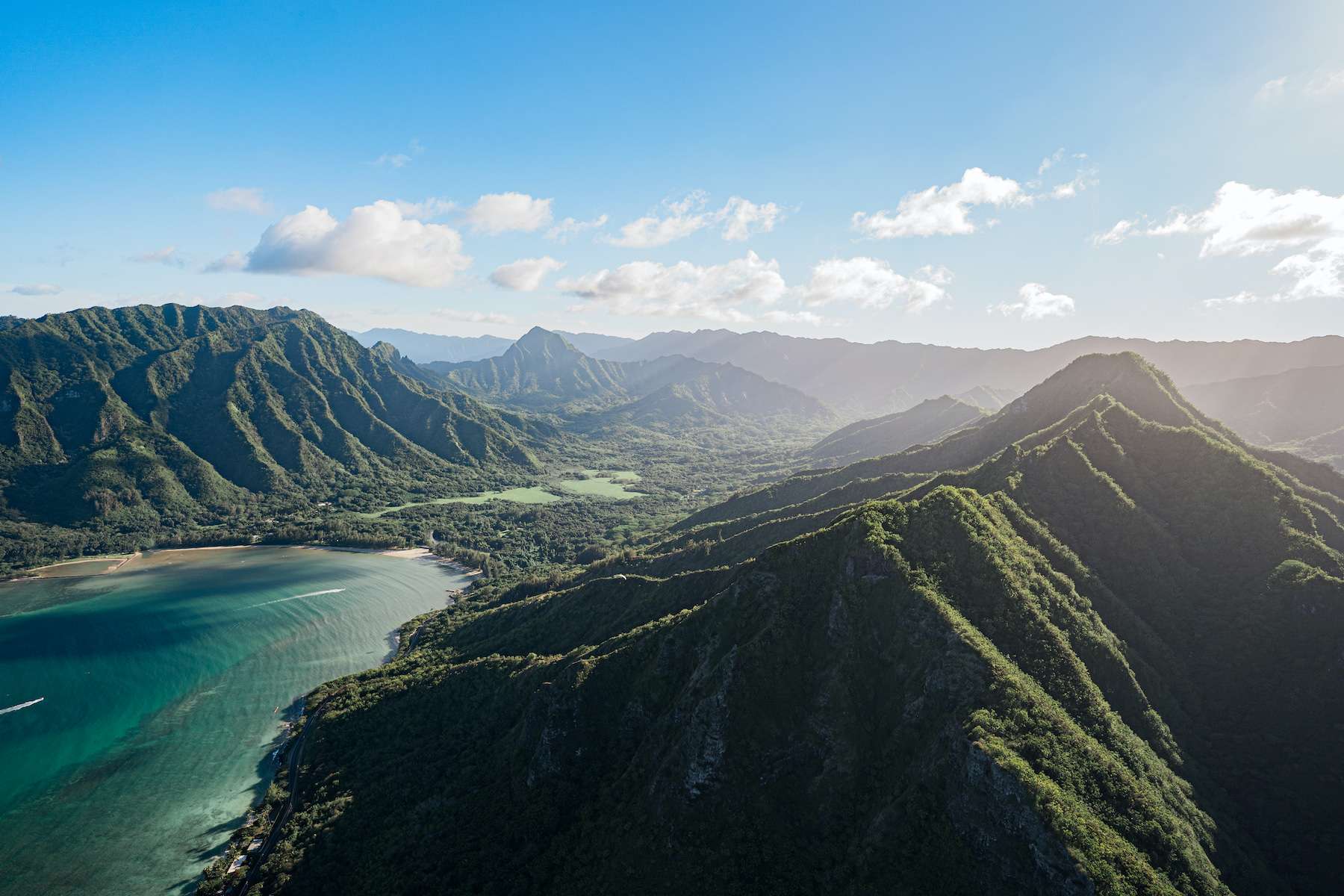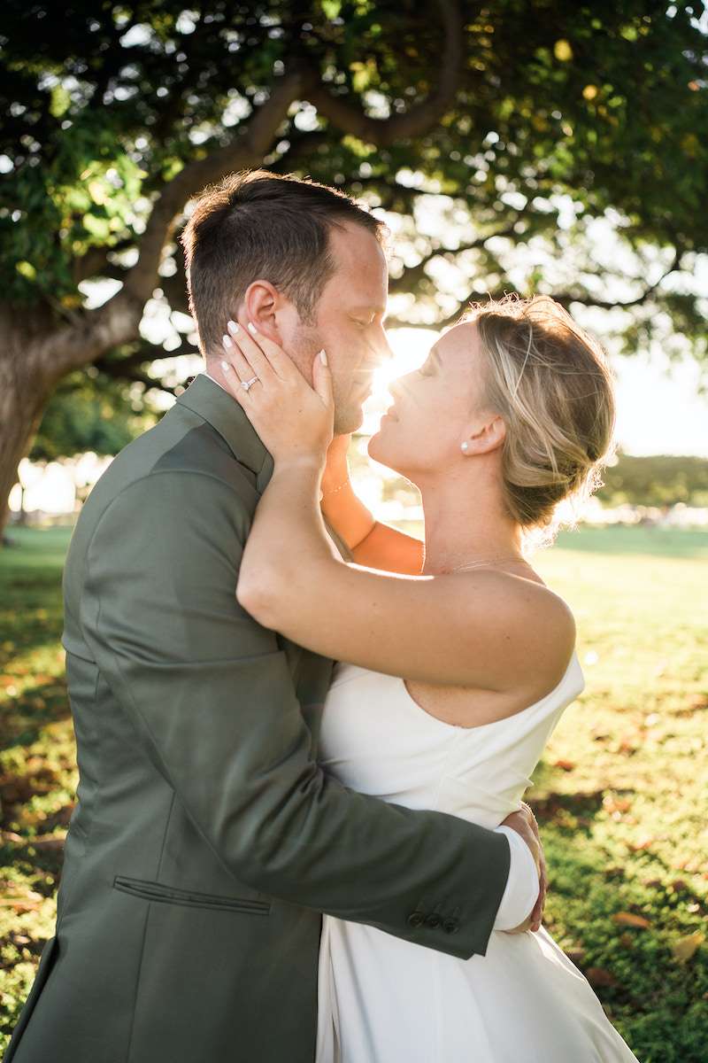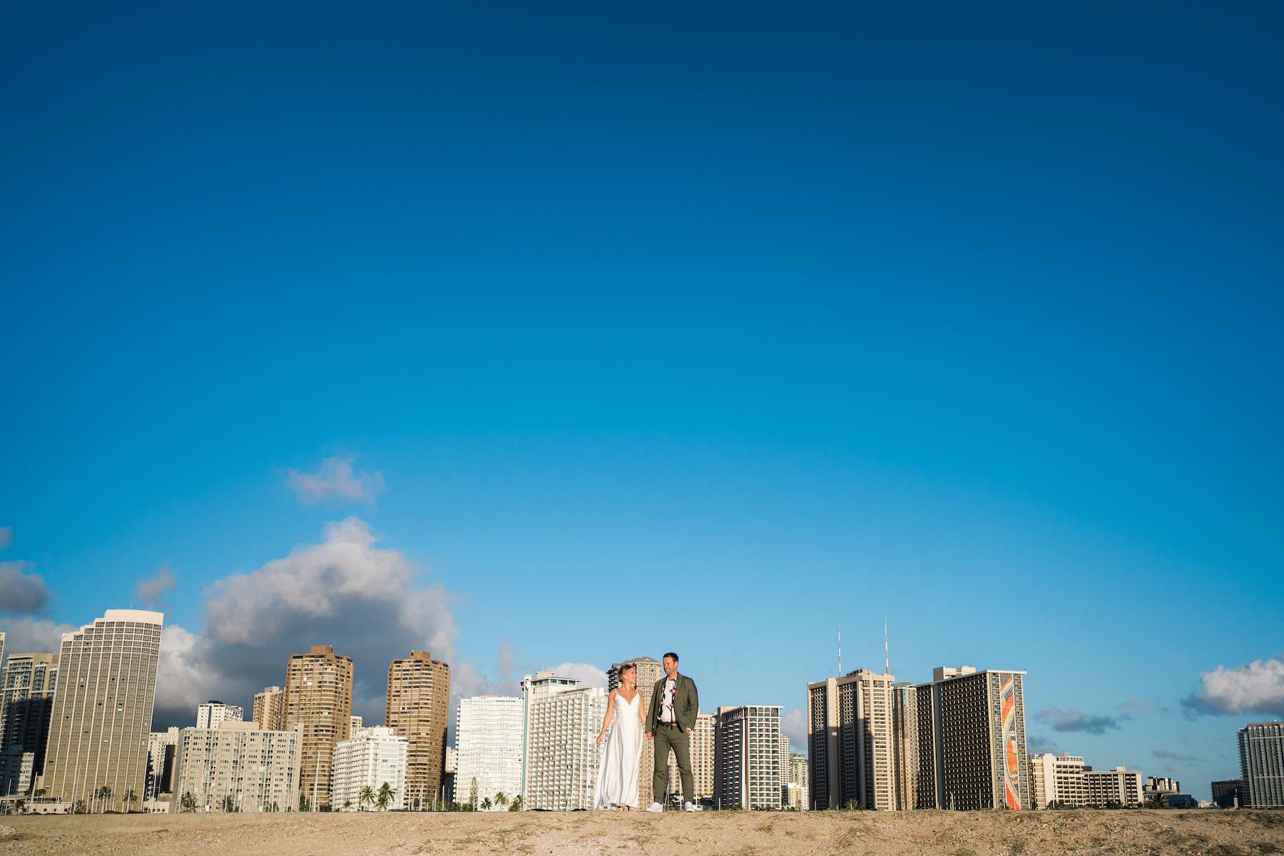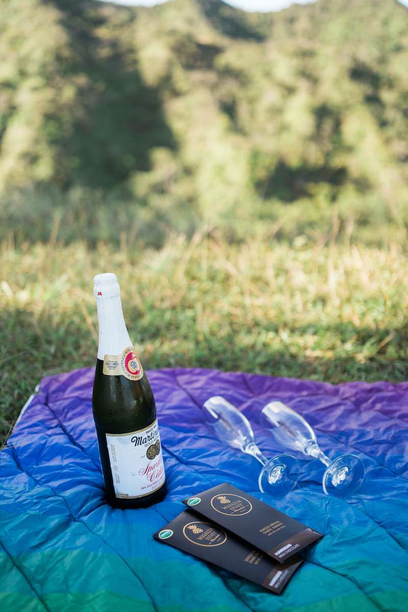 A photographer was an essential part of the day, and Rae Marshall captured the beautiful adventure which included a romantic champagne interlude to toast their love. Rae told us, “There is no better way to see the island of Oahu than by helicopter, seeing a waterfall you can’t normally see from the ground, incredible mountain ranges and the view of the city of Honolulu. The pilot told us what we were seeing as well, giving a little more insight. Photos on the ledge of the Ko’olau Mountain range were some of the coolest and most challenging I’ve done yet, but when our pilot headed toward the landing spot, I did question whether it was too small to land on!”